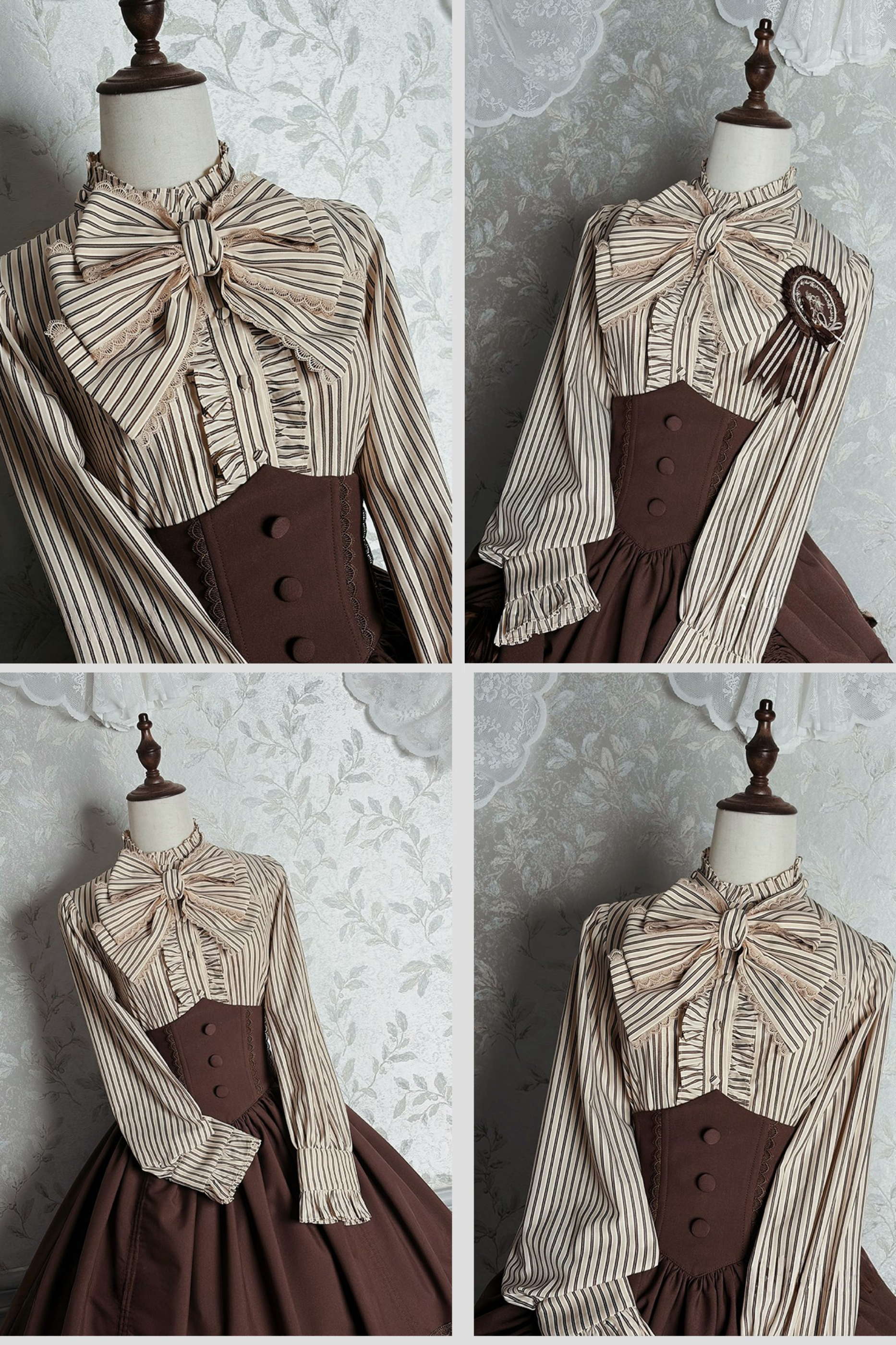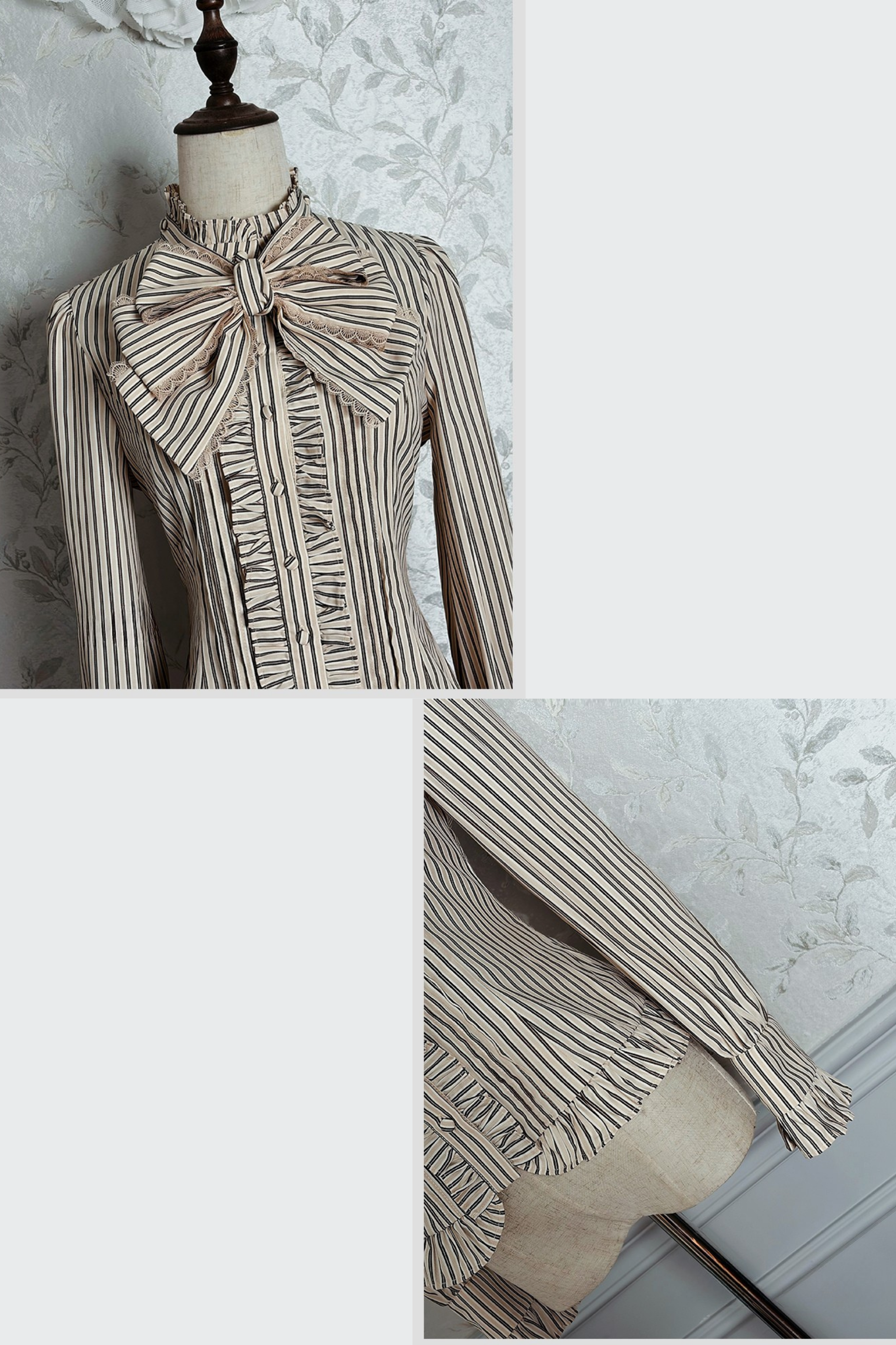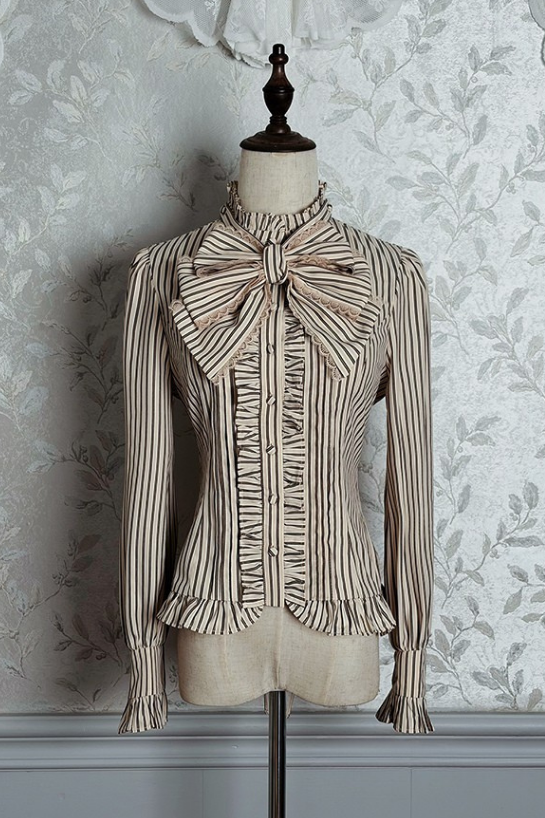 ❤︎【12月23日予約締切】ビクトリアデュークエレガントクラシックフリルスタンドカラーリボンシャツ❤︎ ⚠️人気商品のためお届けに5-6ヶ月ほどかかってしまう場合がございます