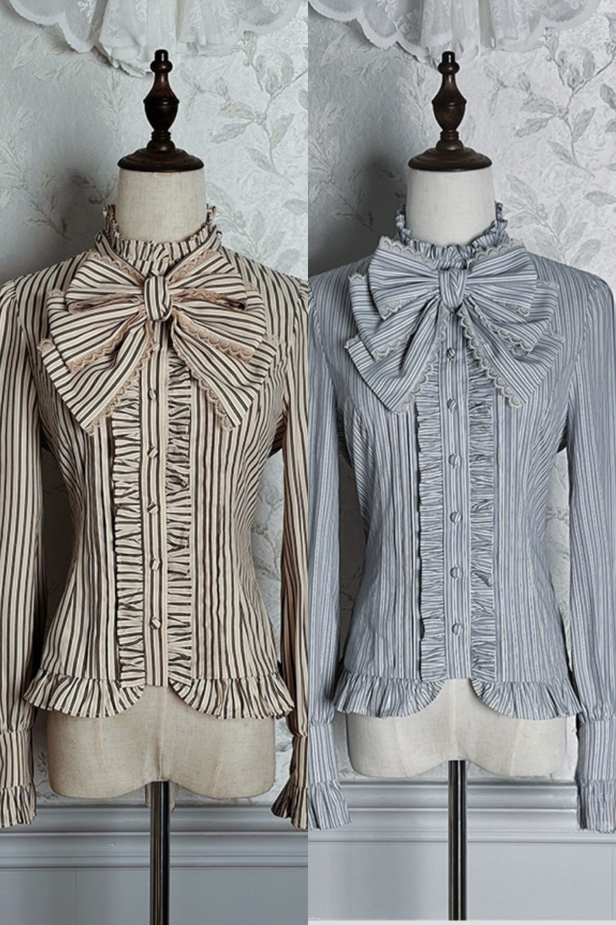 ❤︎【2月26日予約締切】ビクトリアデュークエレガントクラシックフリルスタンドカラーリボンシャツ❤︎ ⚠️人気商品のためお届けに5-6ヶ月ほどかかってしまう場合がございます