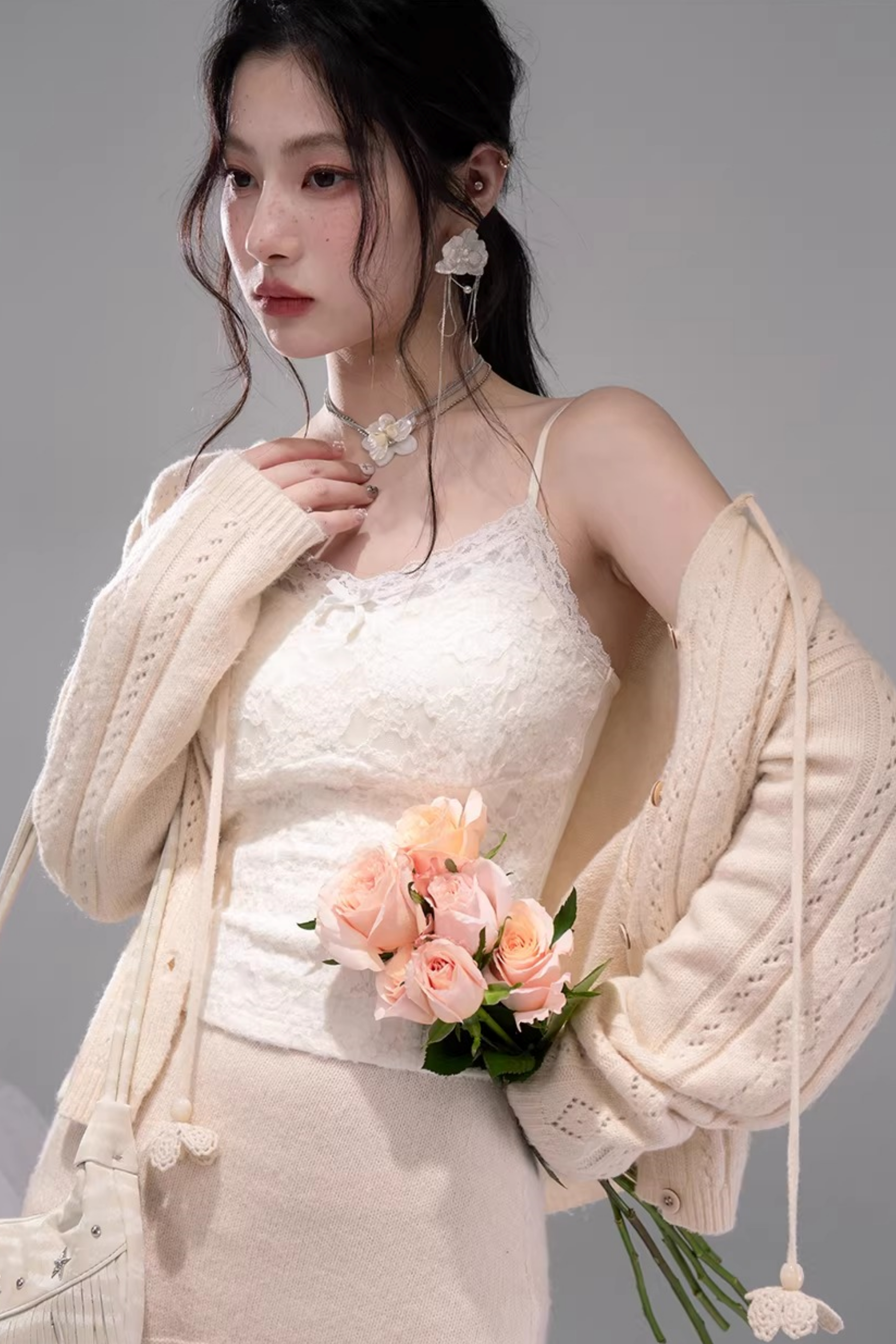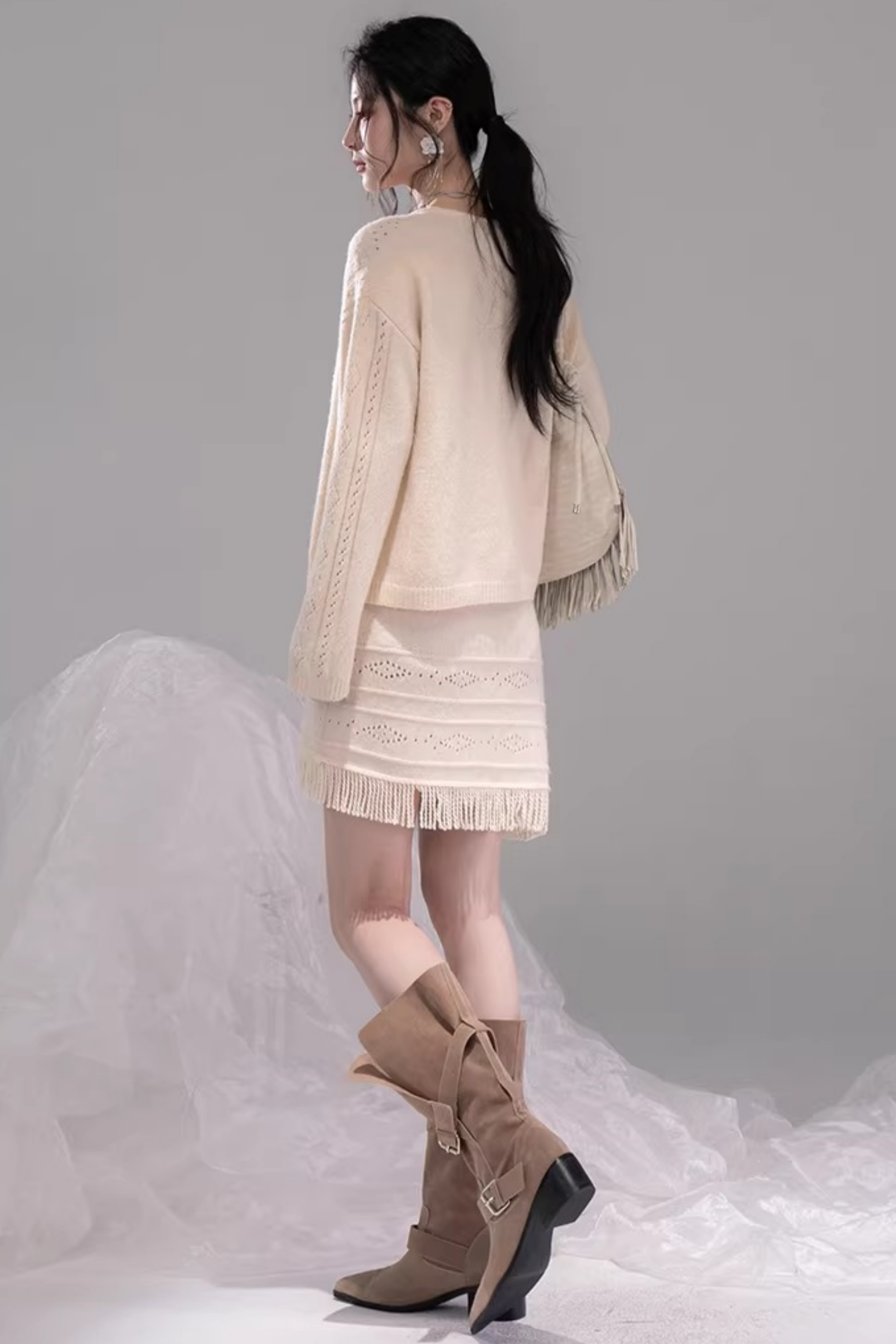 クロシェカーディガン+スカート