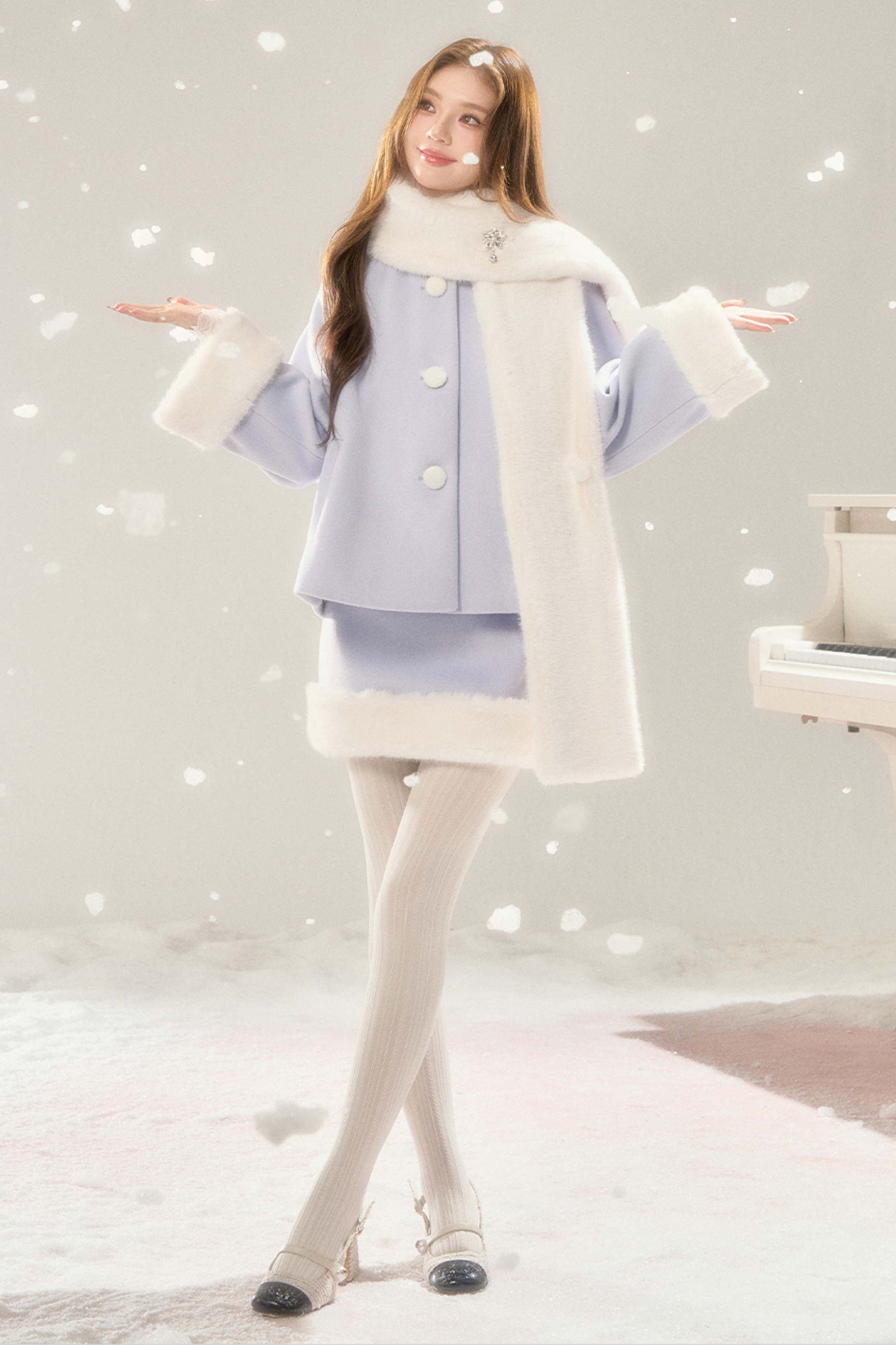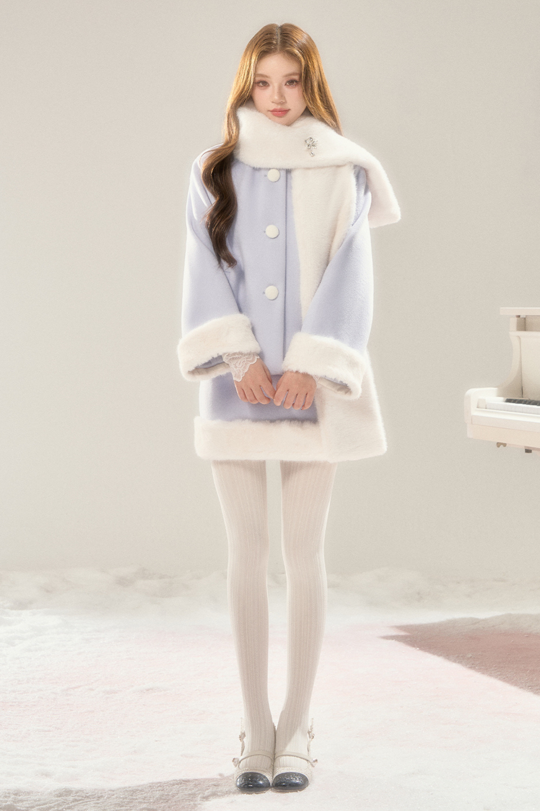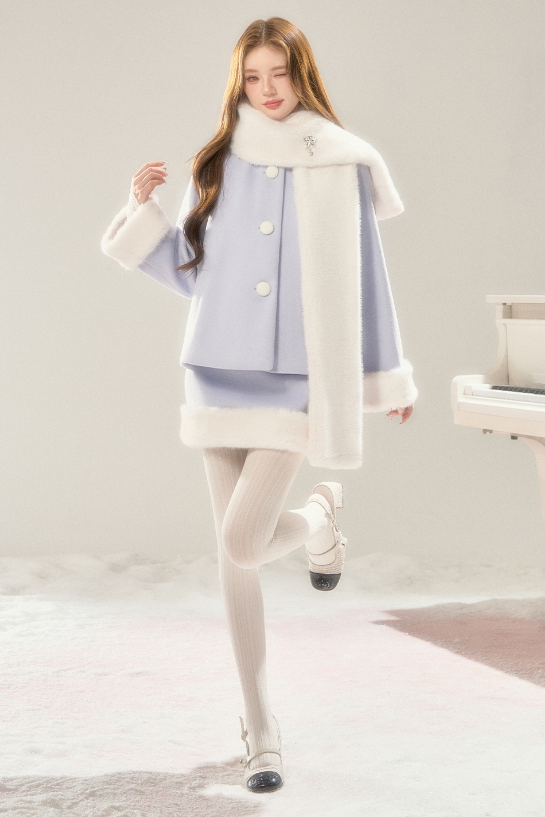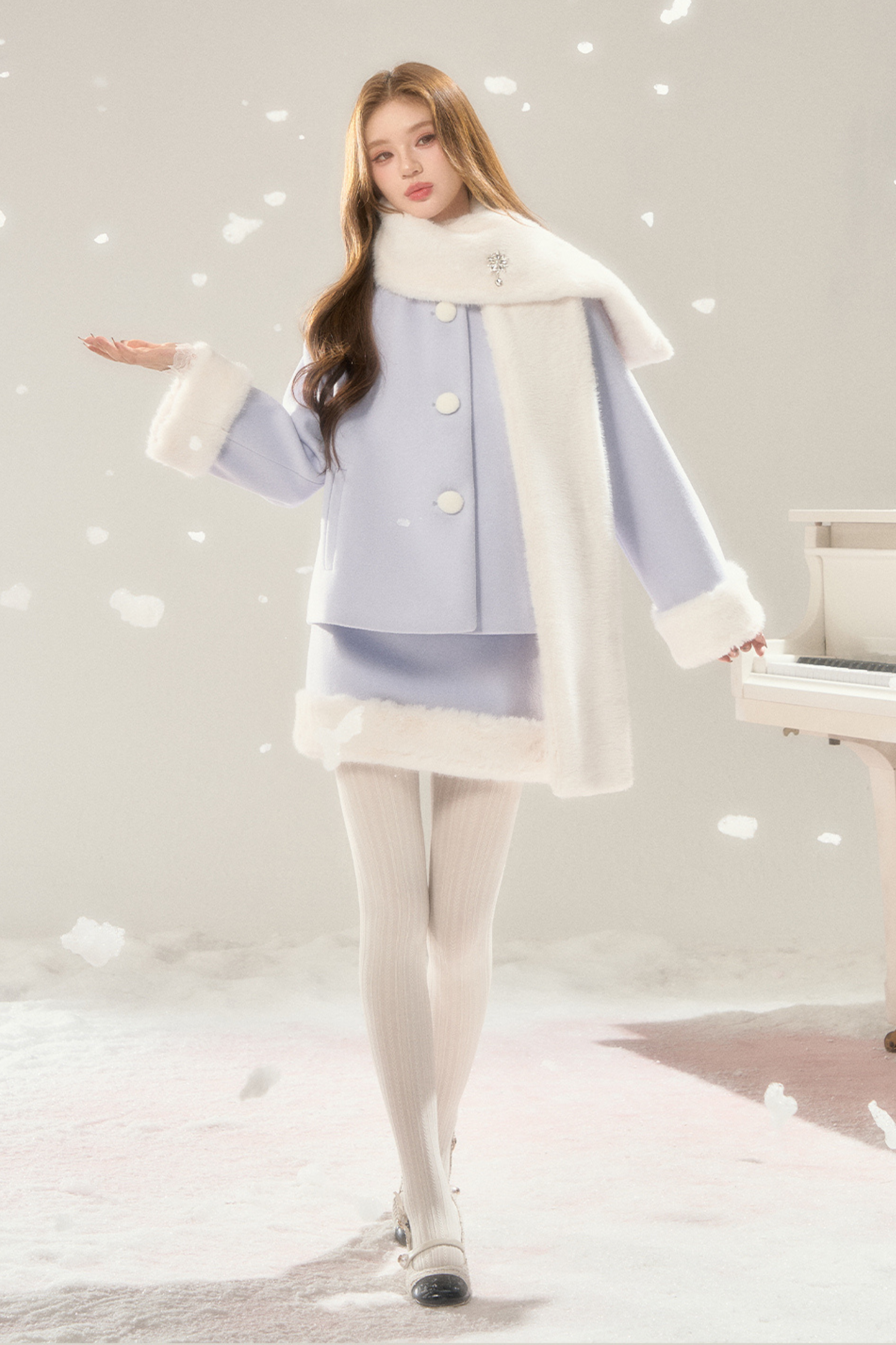 マフラー付きスイートファーコート+ファースカート