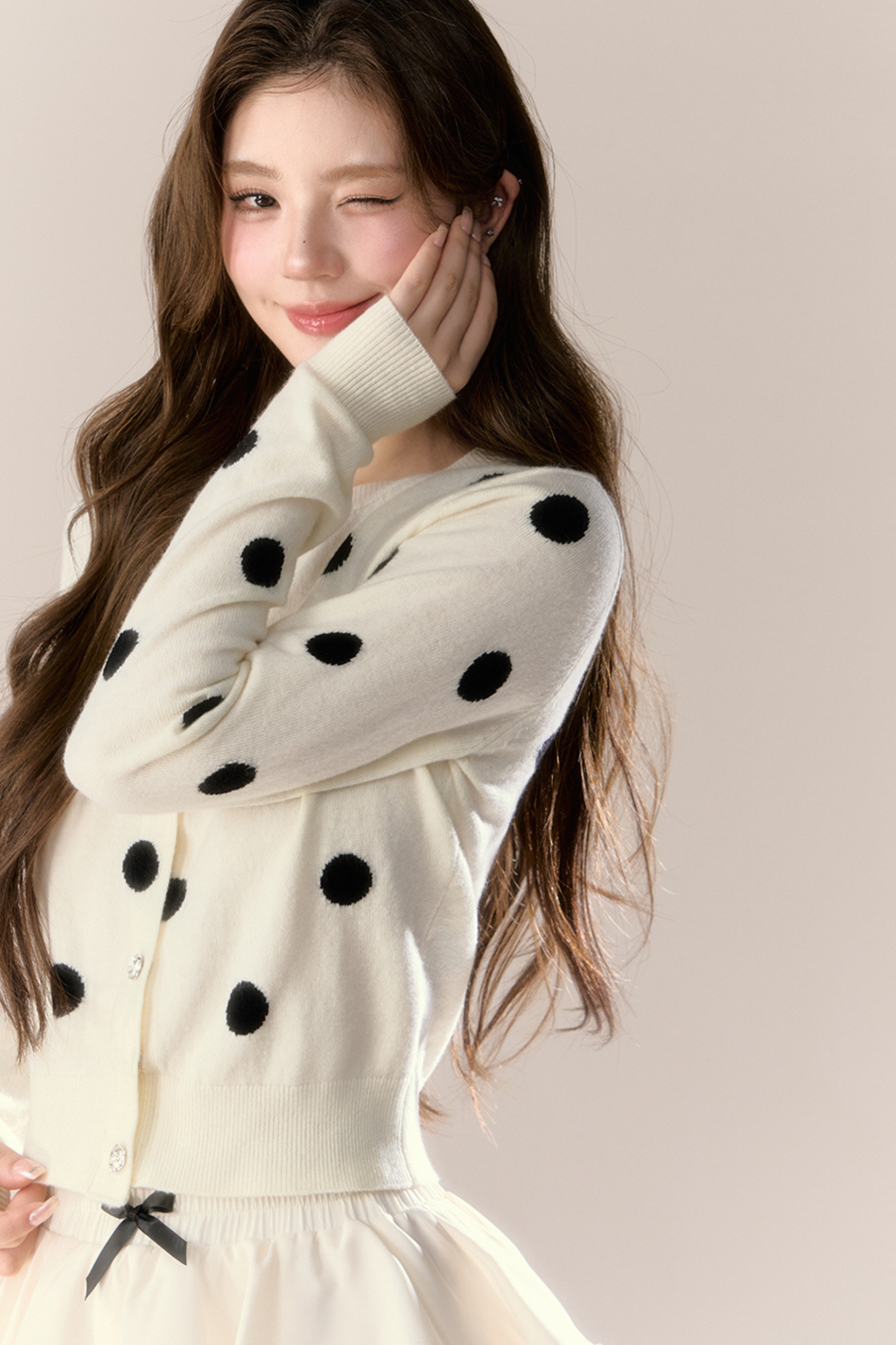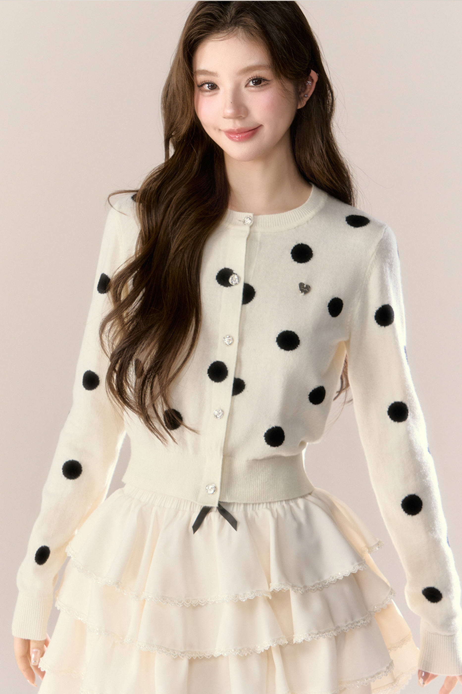 ❤ベルベットドットデザインニットカーディガン❤