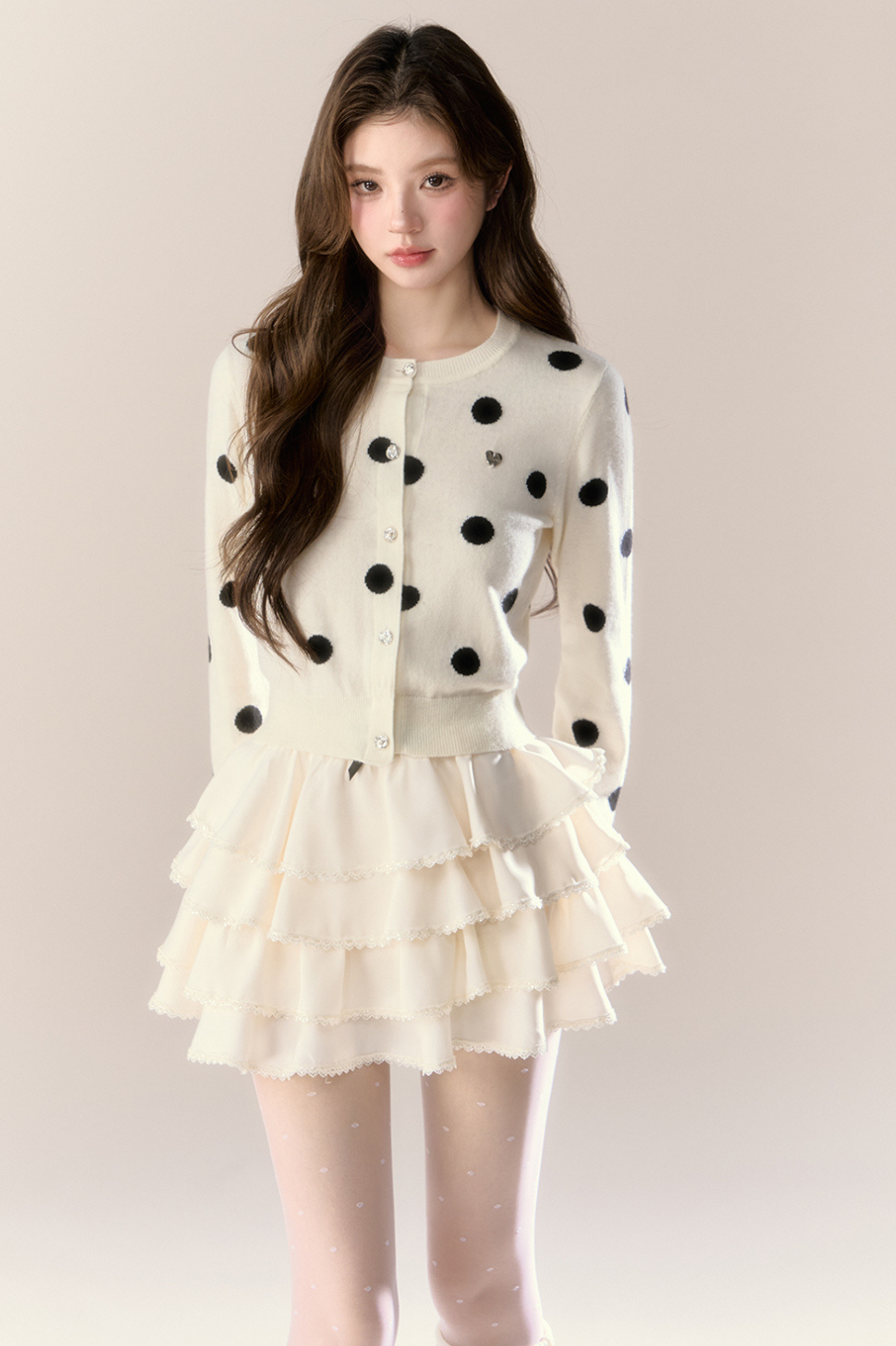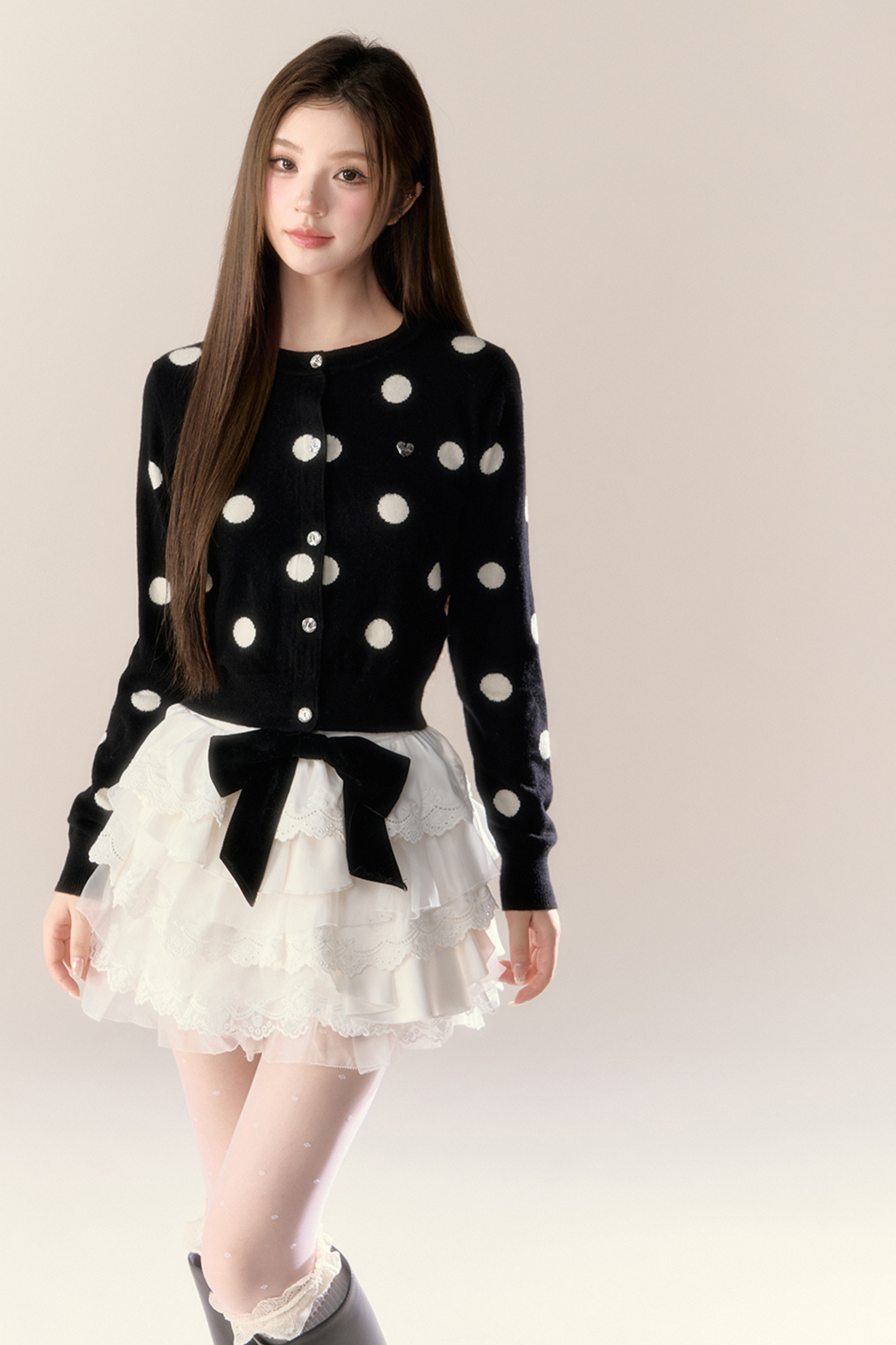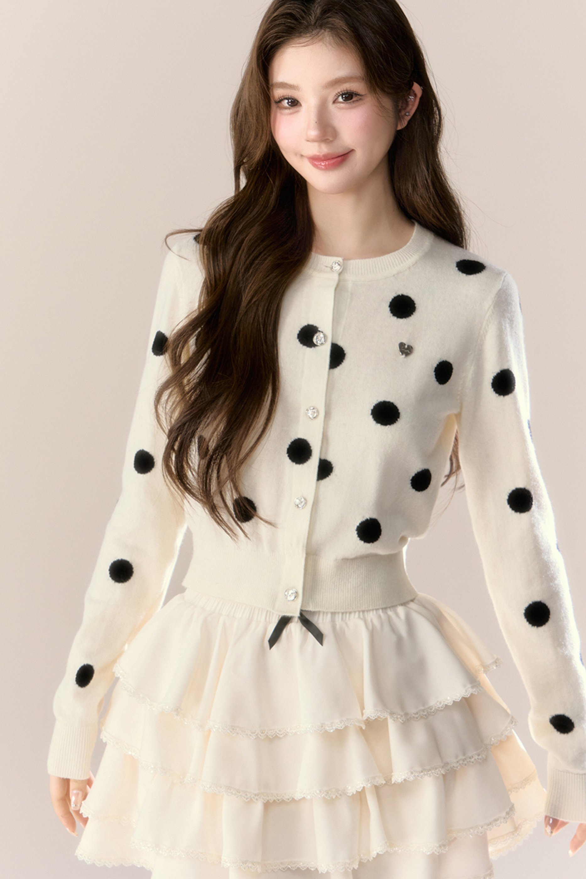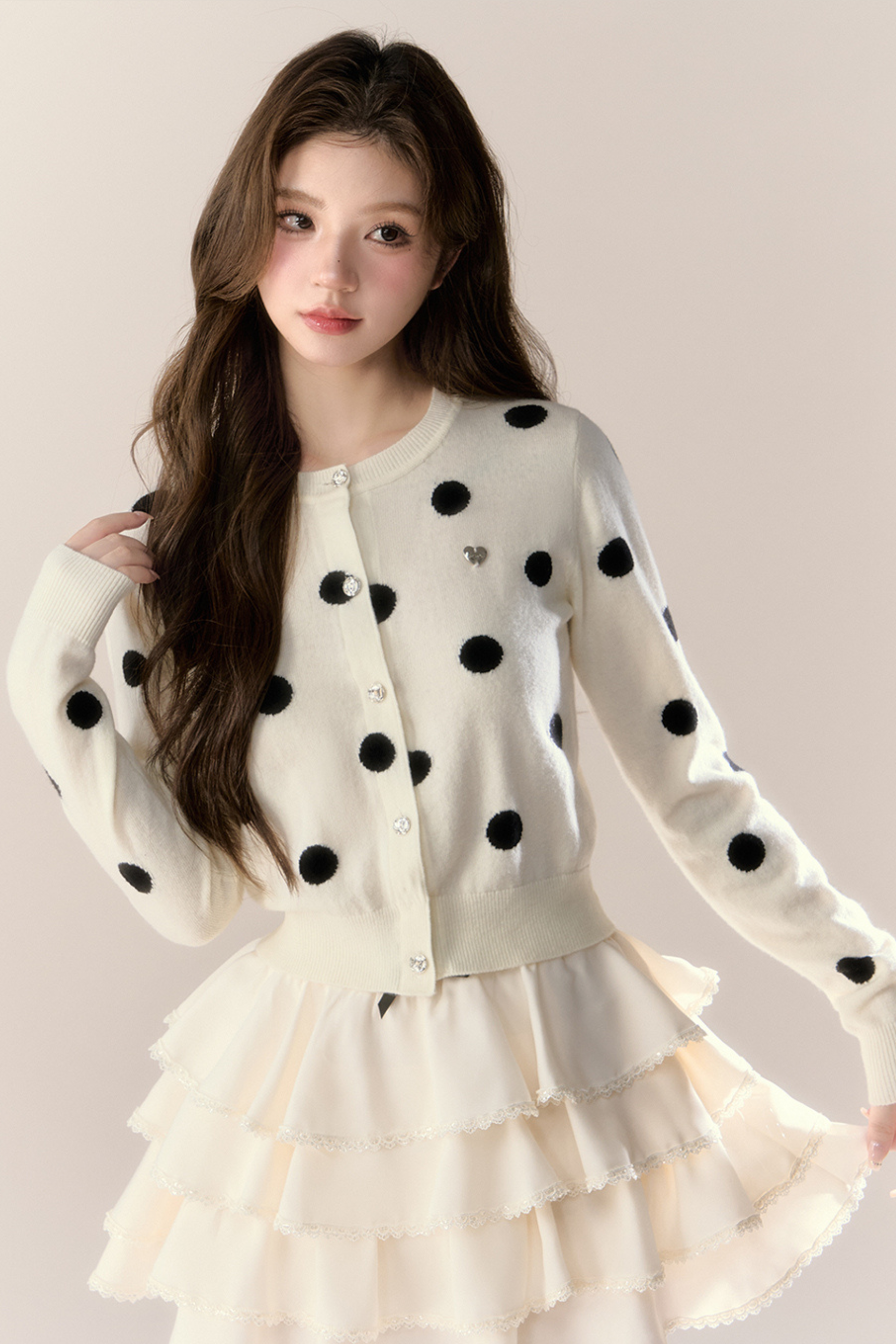 ベルベットドットデザインニットカーディガン
