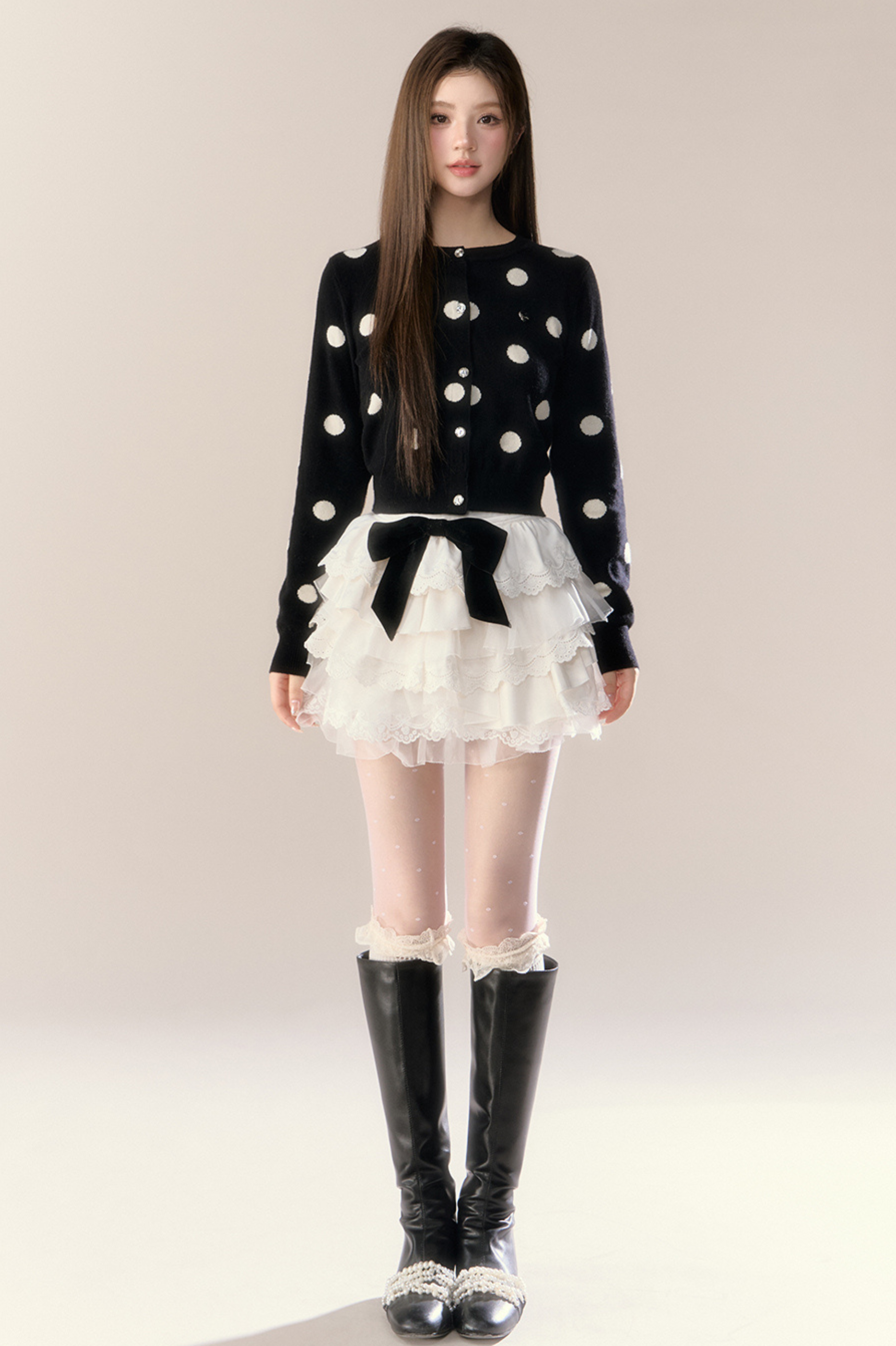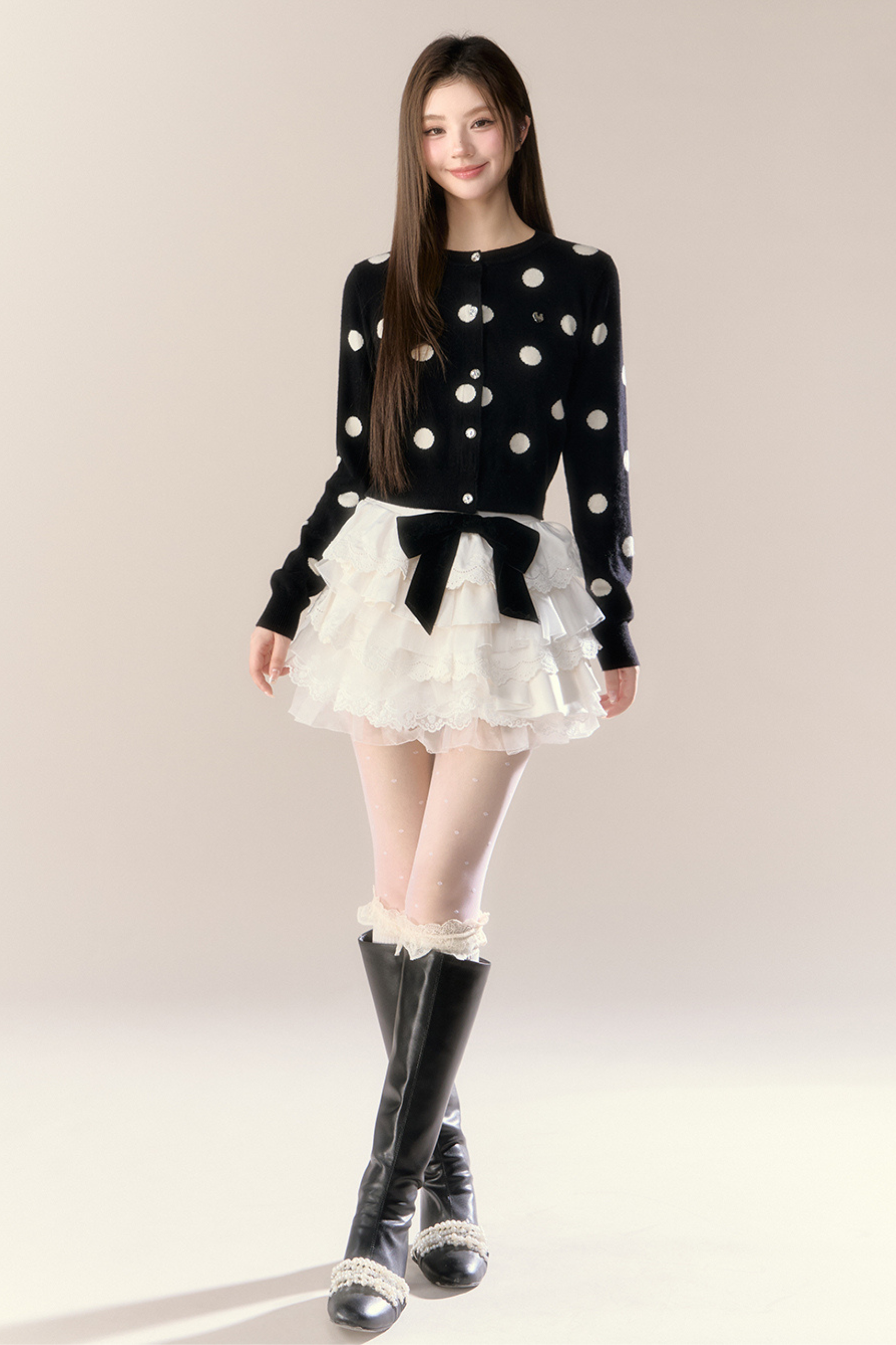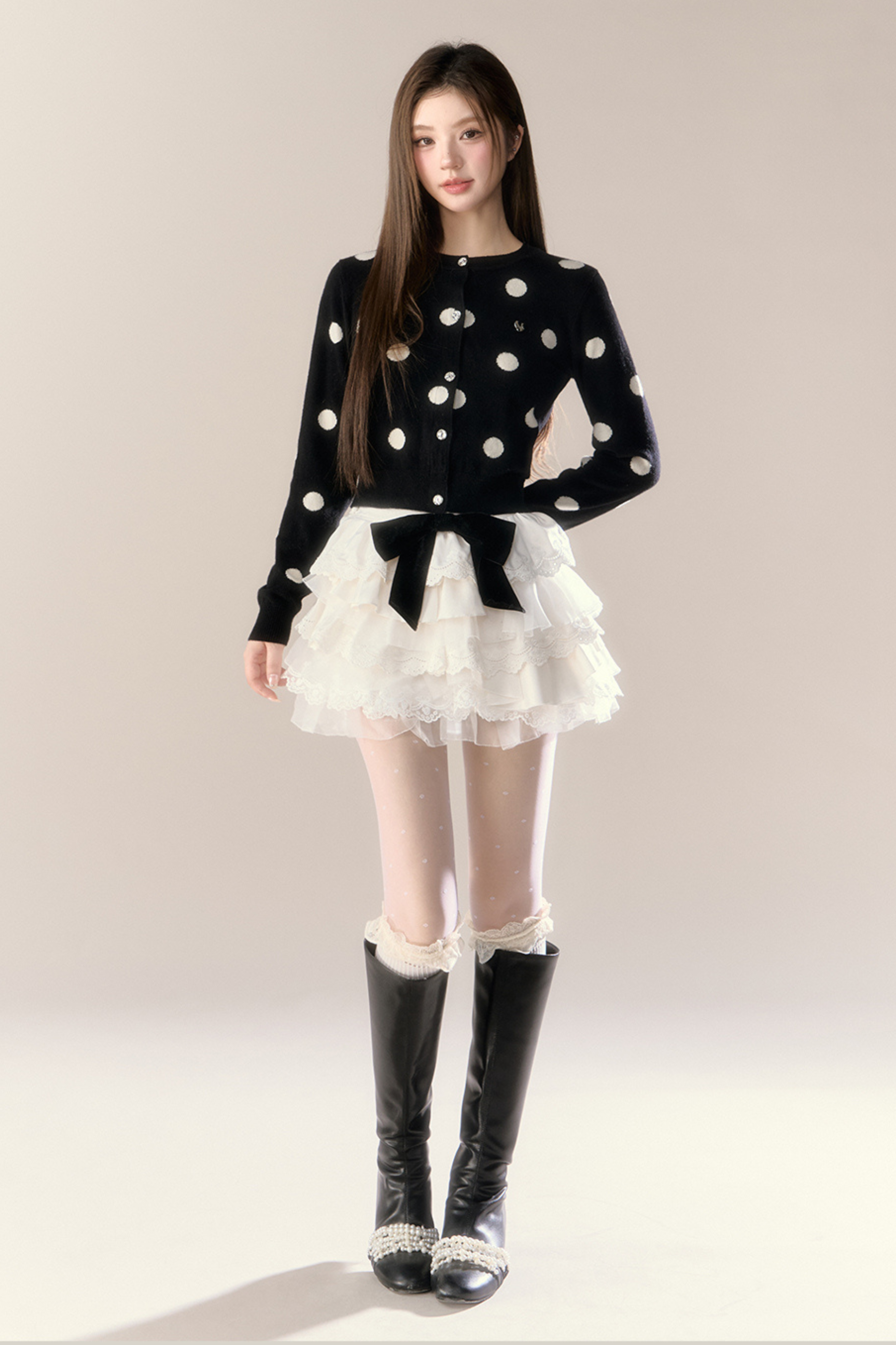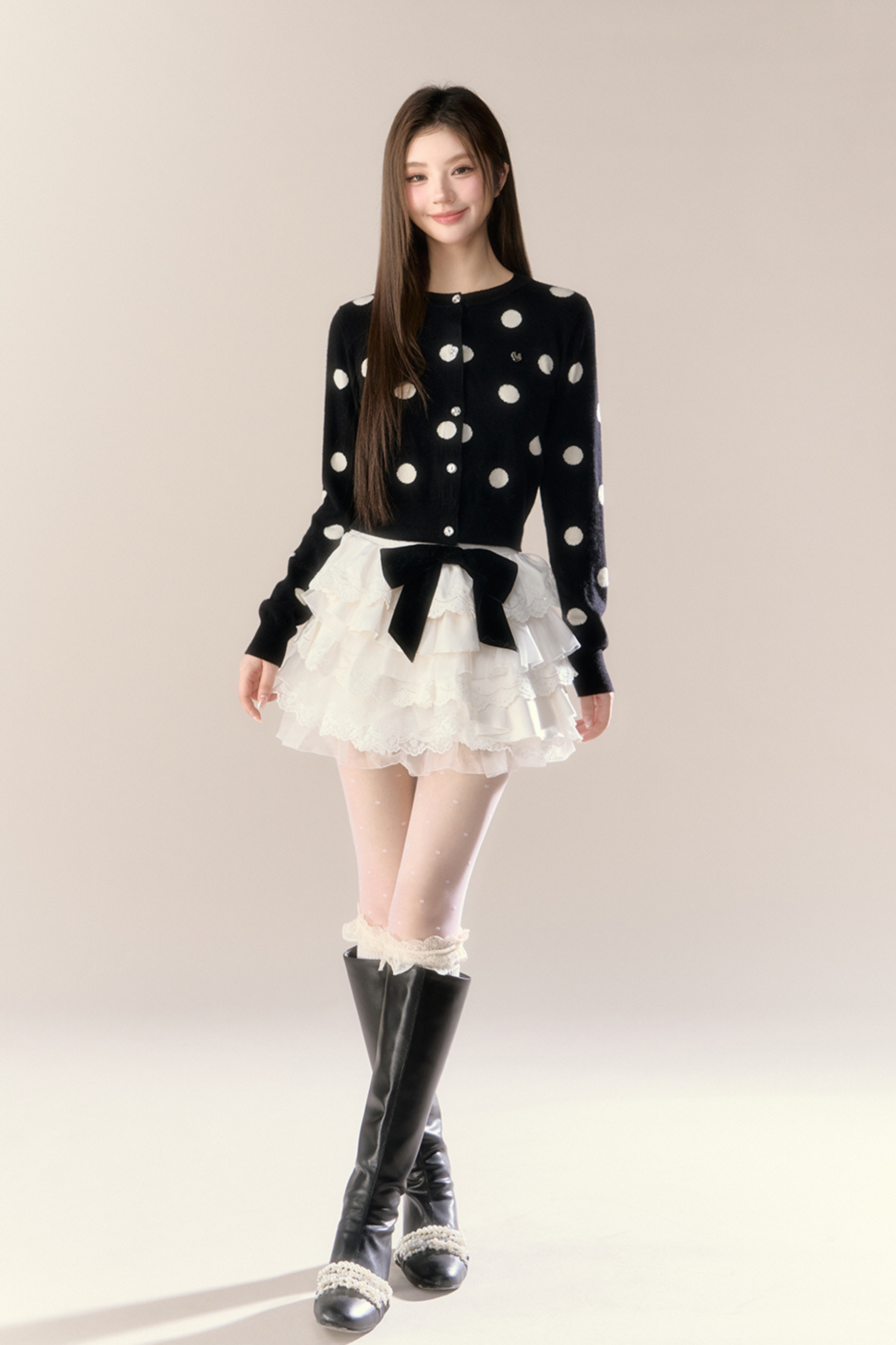 ベルベットドットデザインニットカーディガン