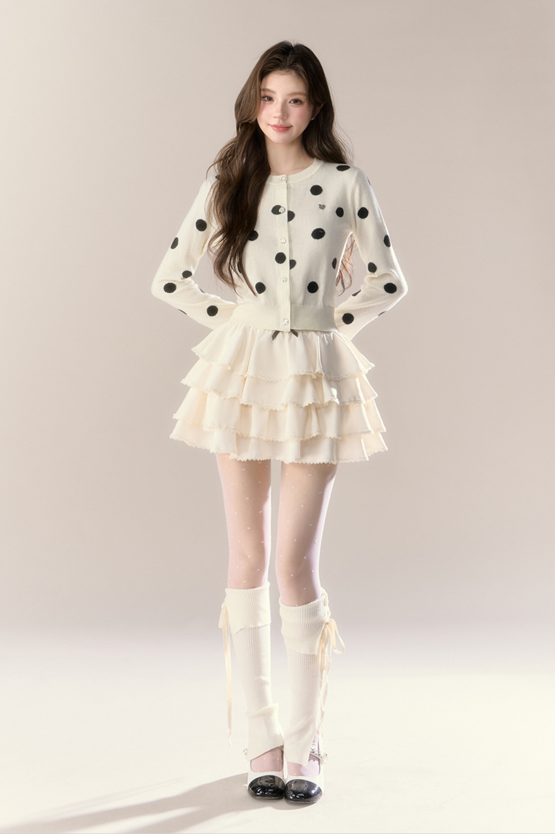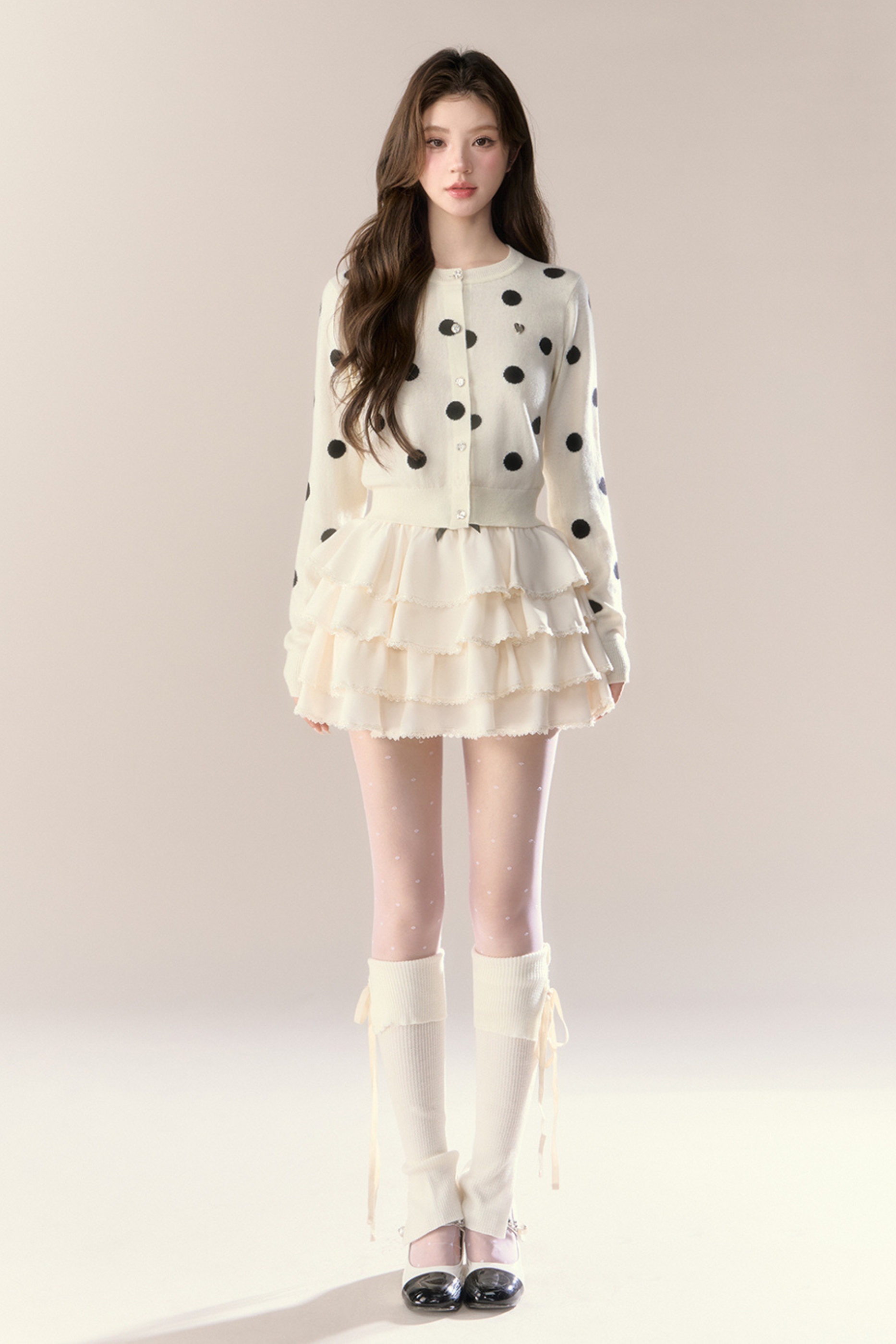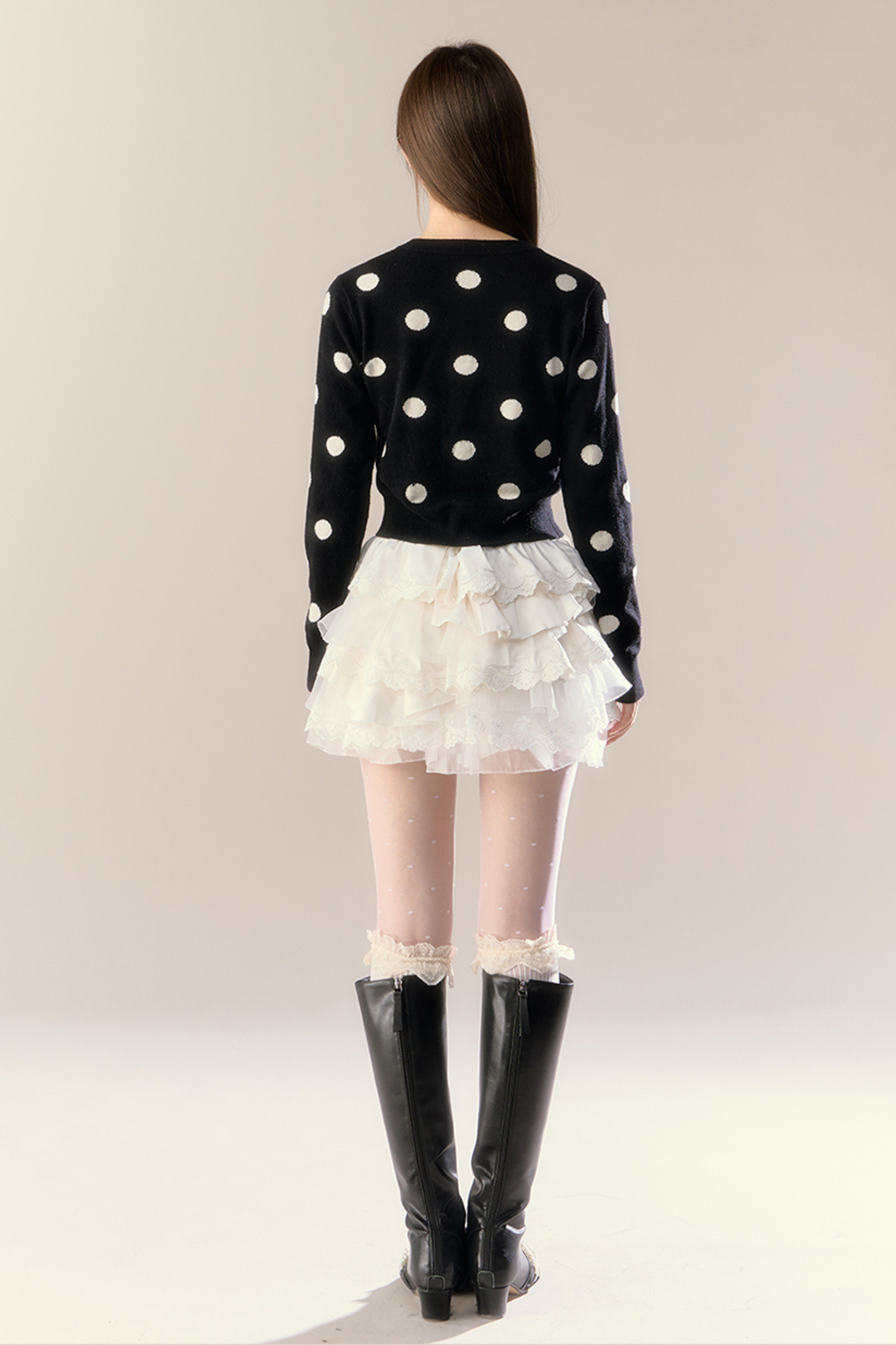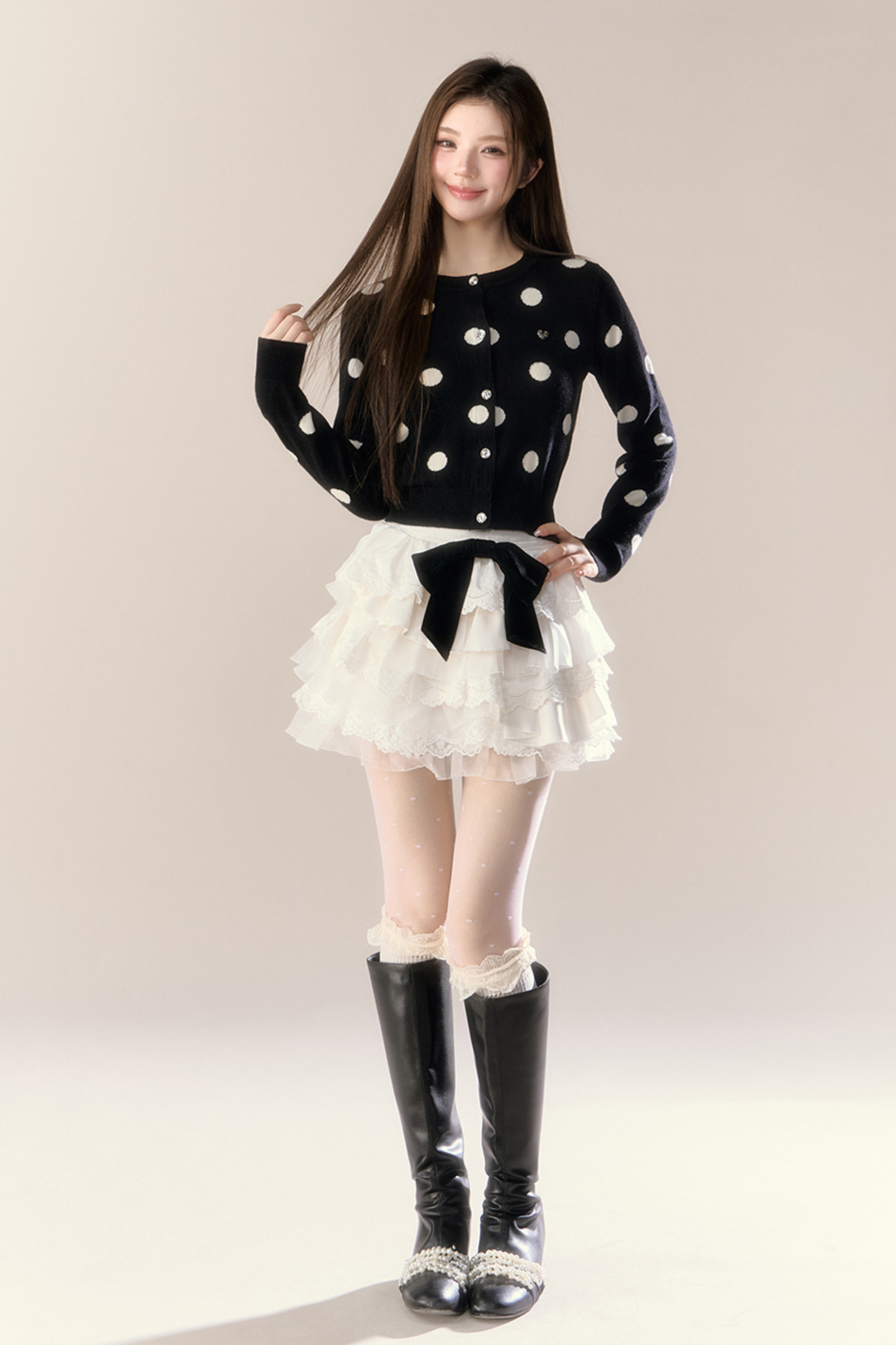 ベルベットドットデザインニットカーディガン