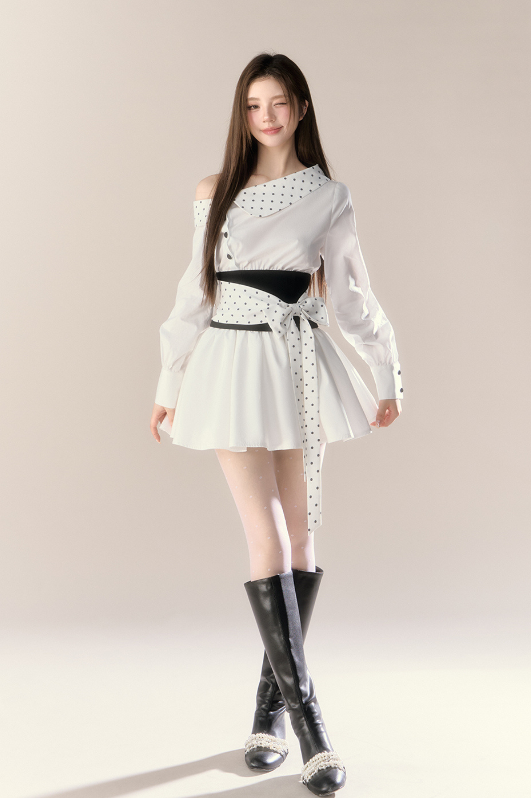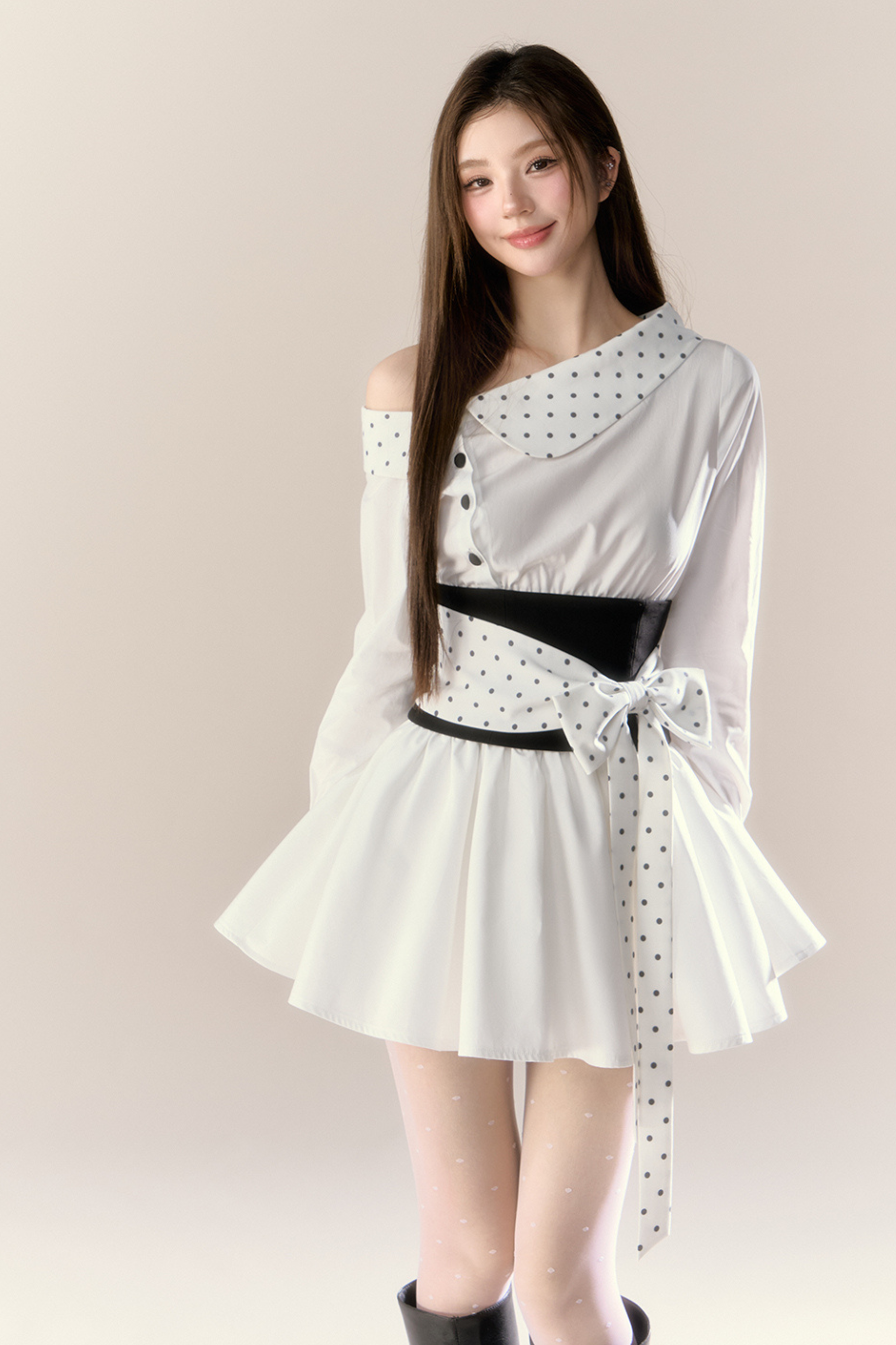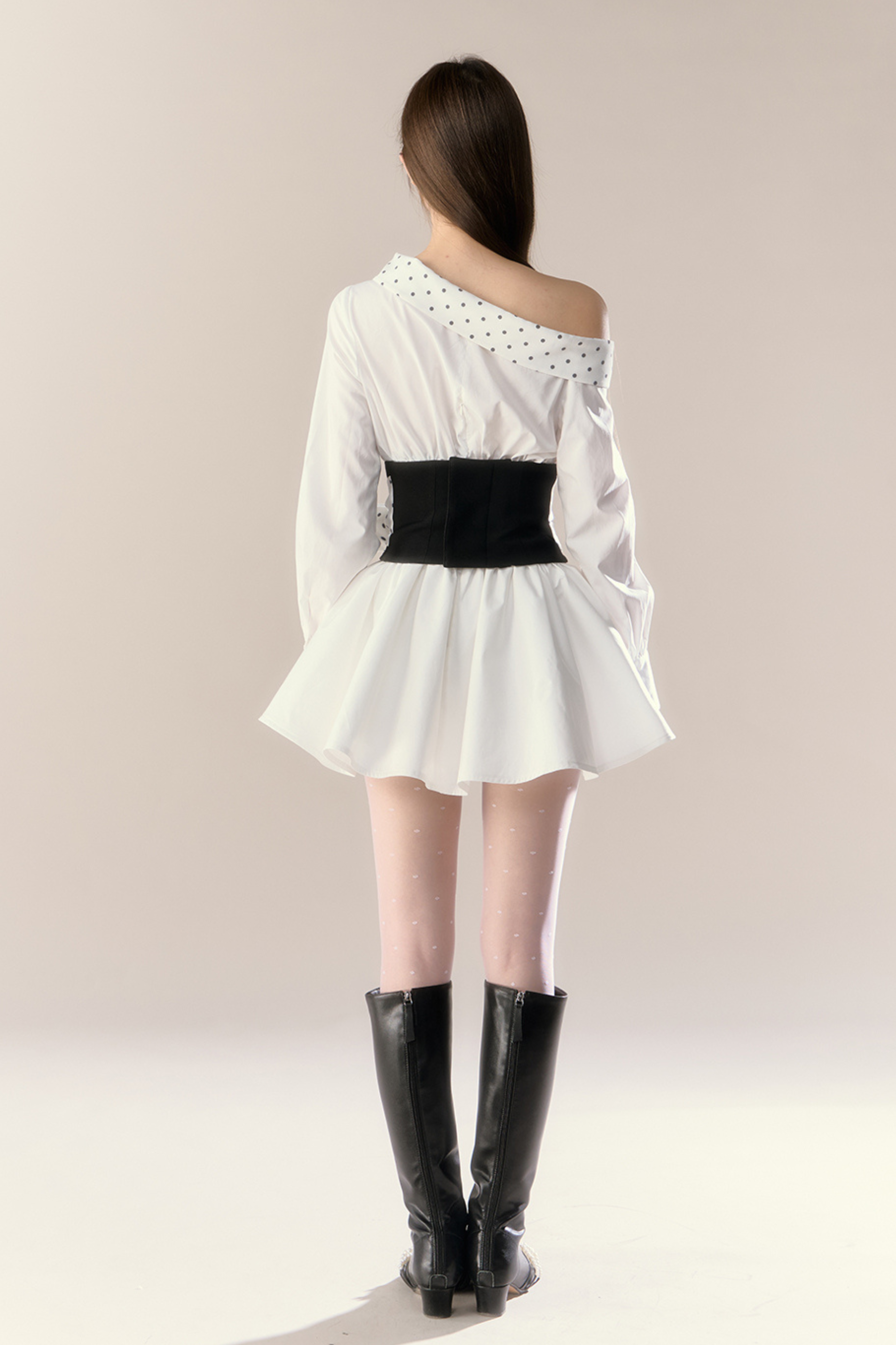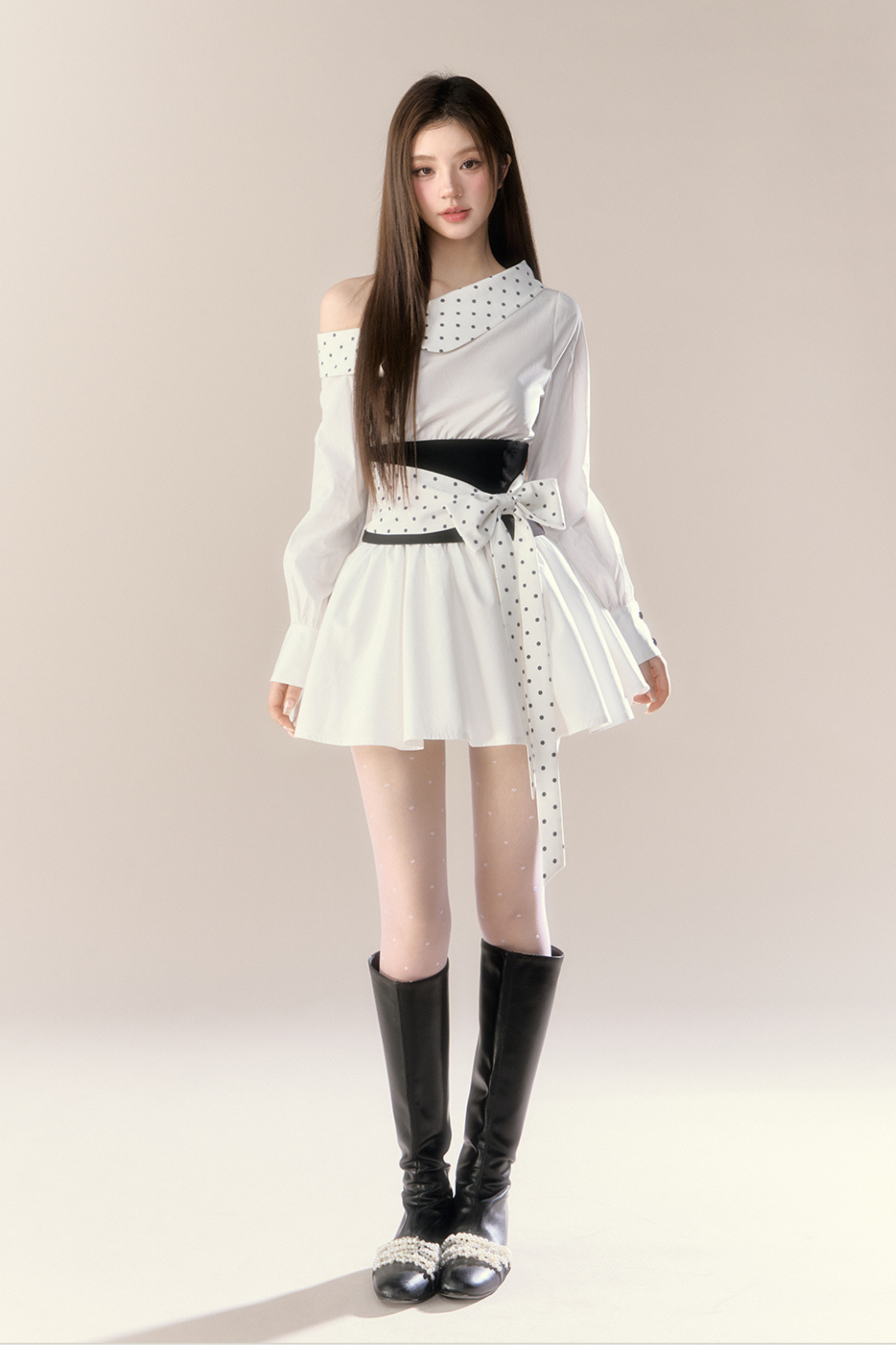 ❤ ハートビートシグナルオフショルダーシャツワンピース❤