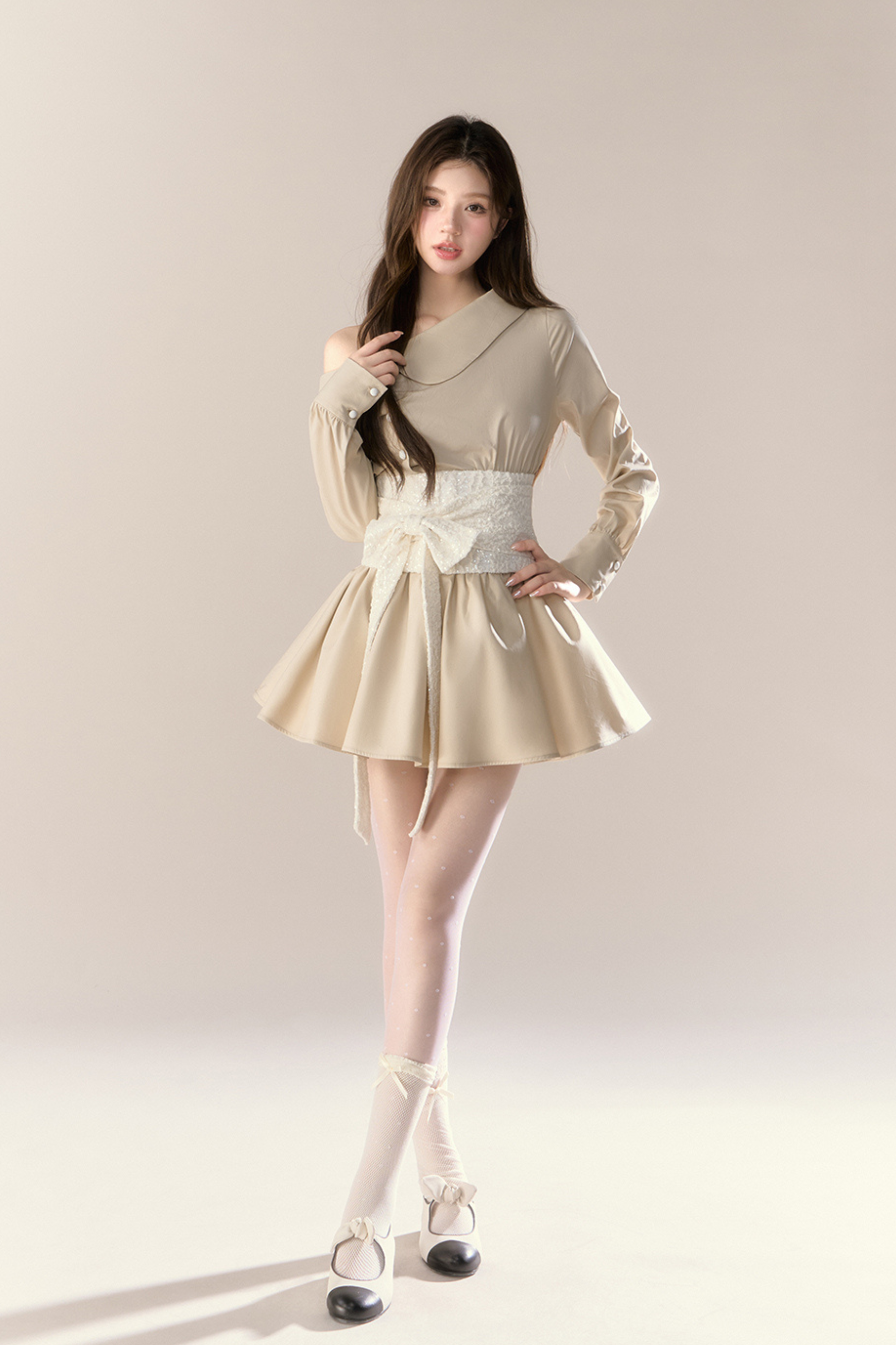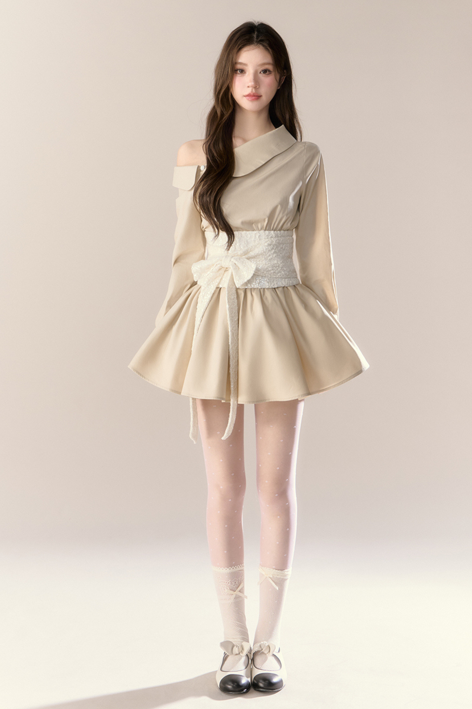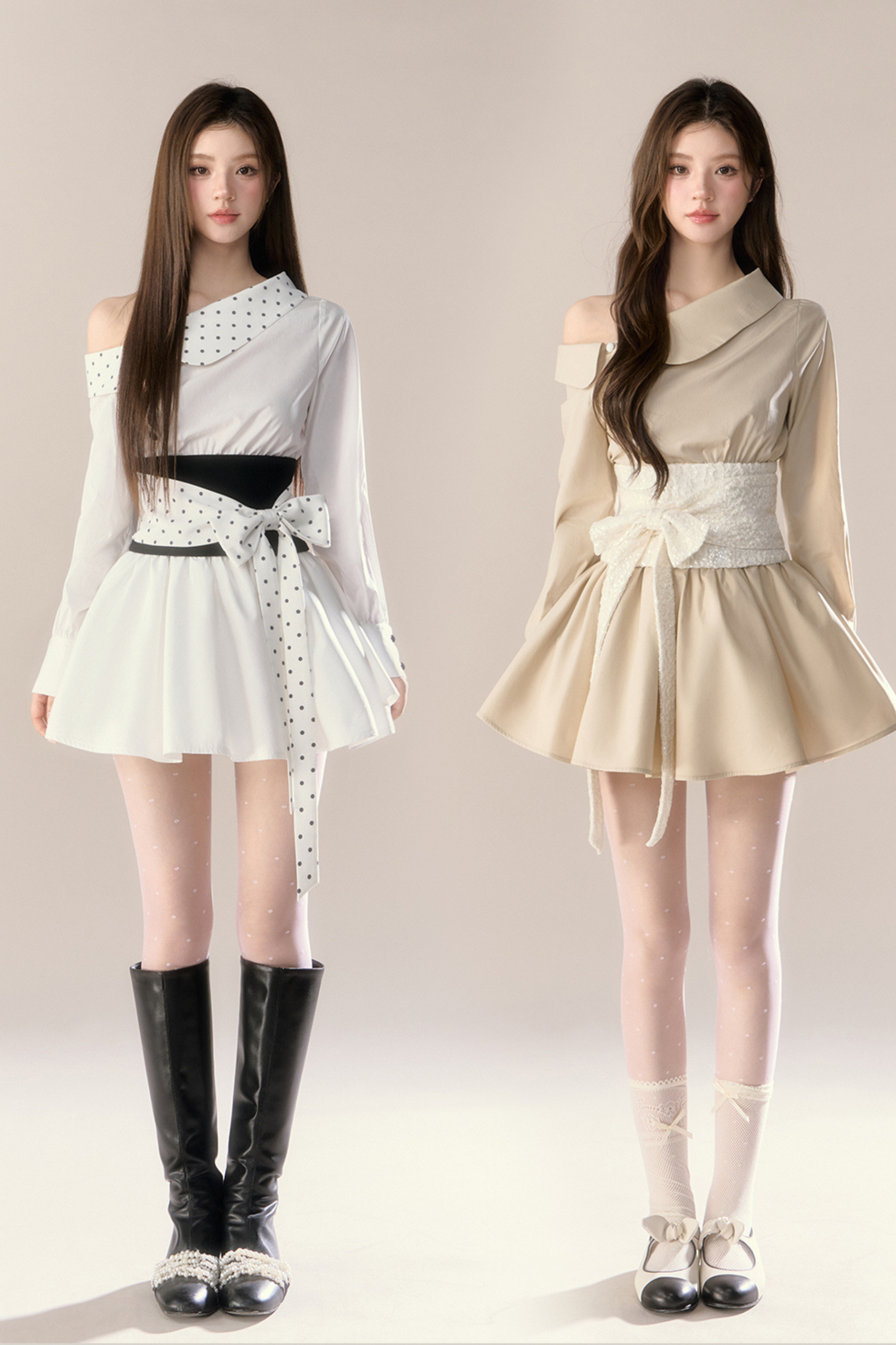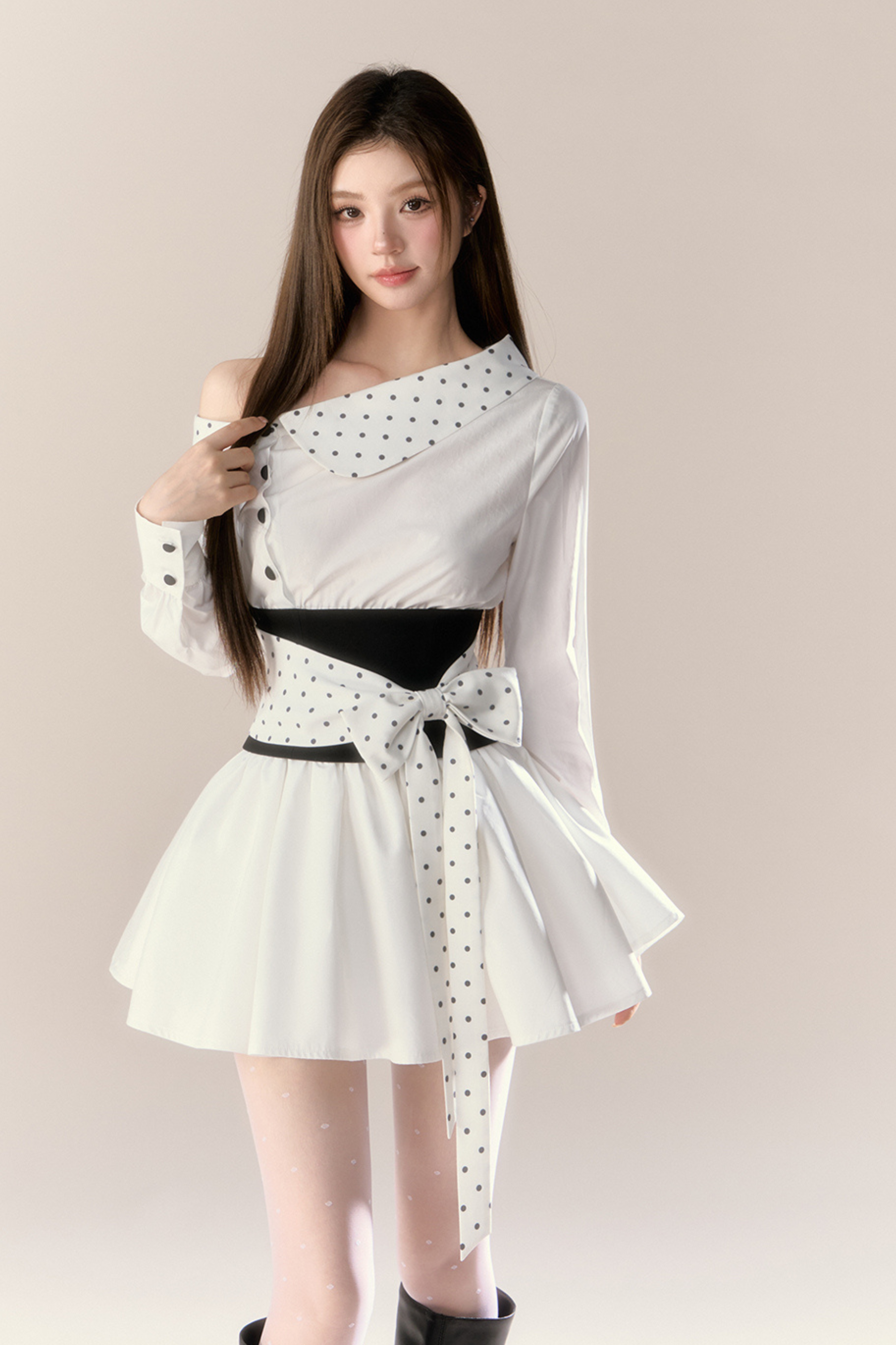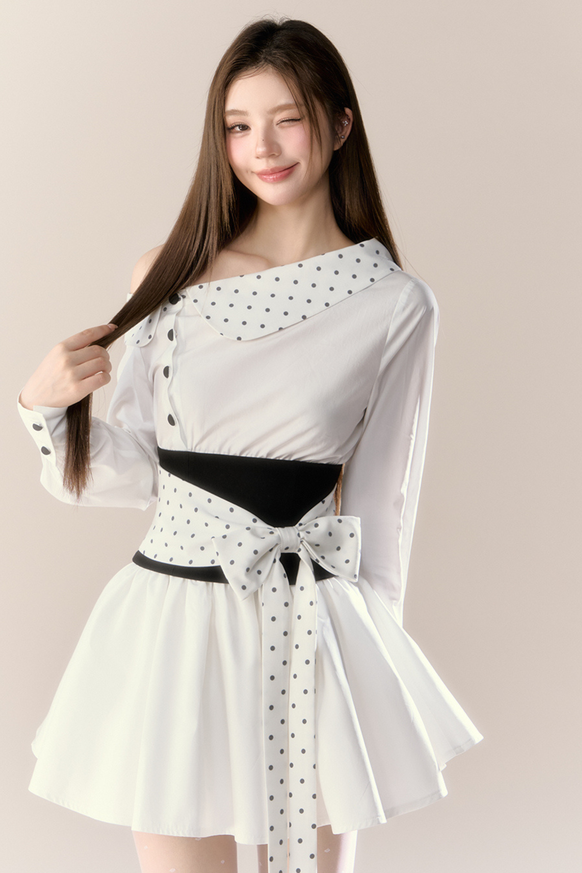 ❤ ハートビートシグナルオフショルダーシャツワンピース❤