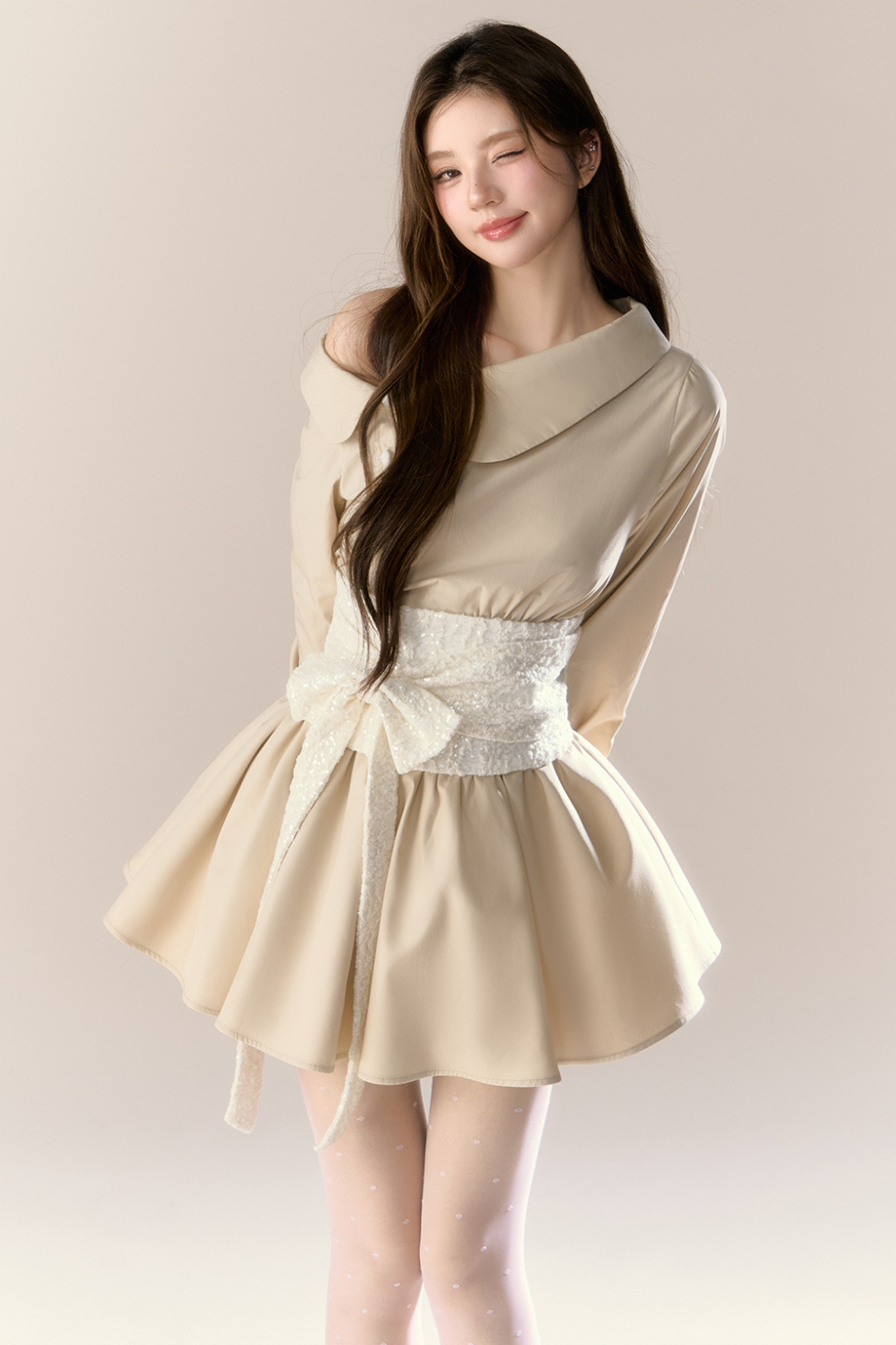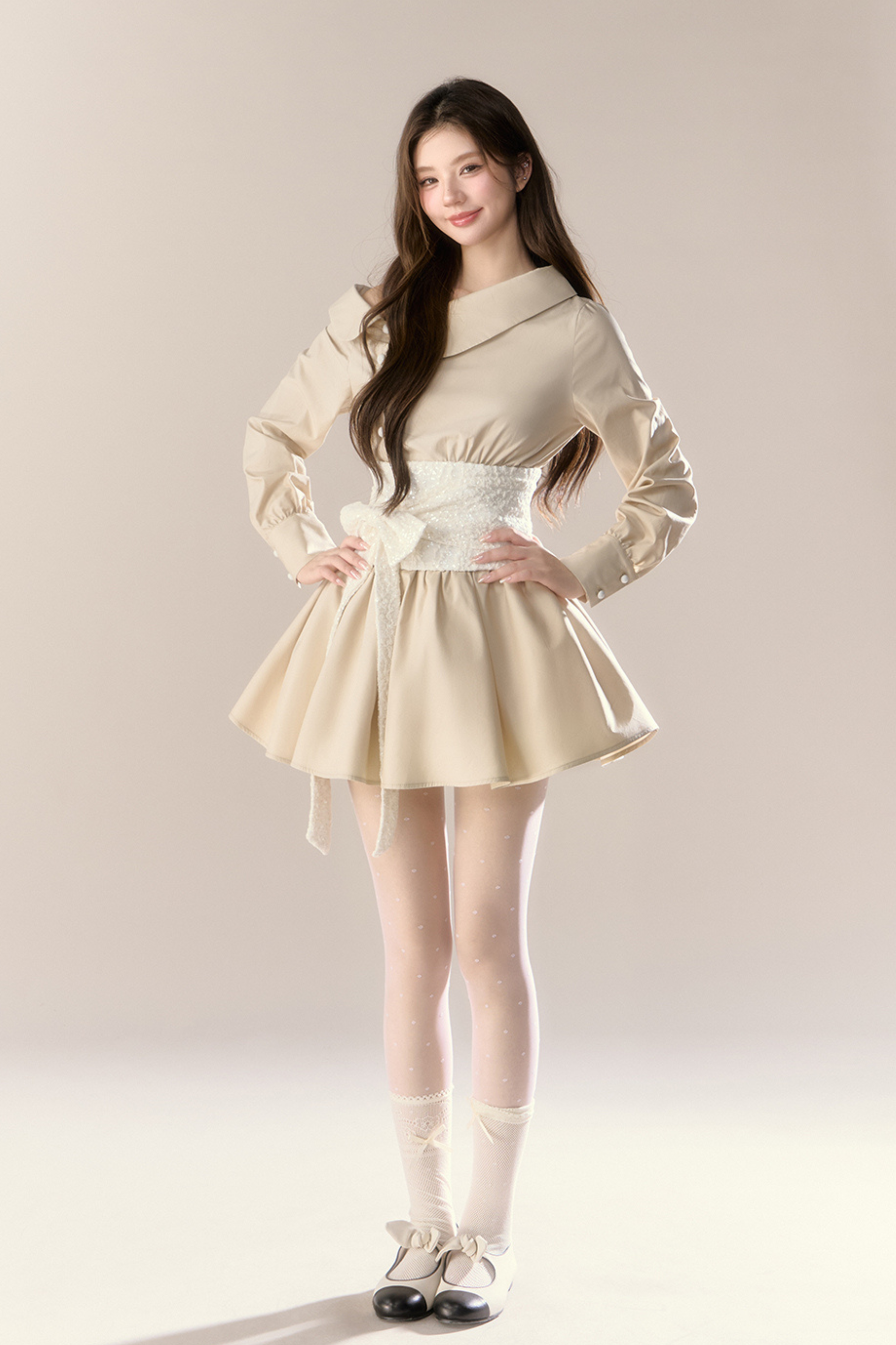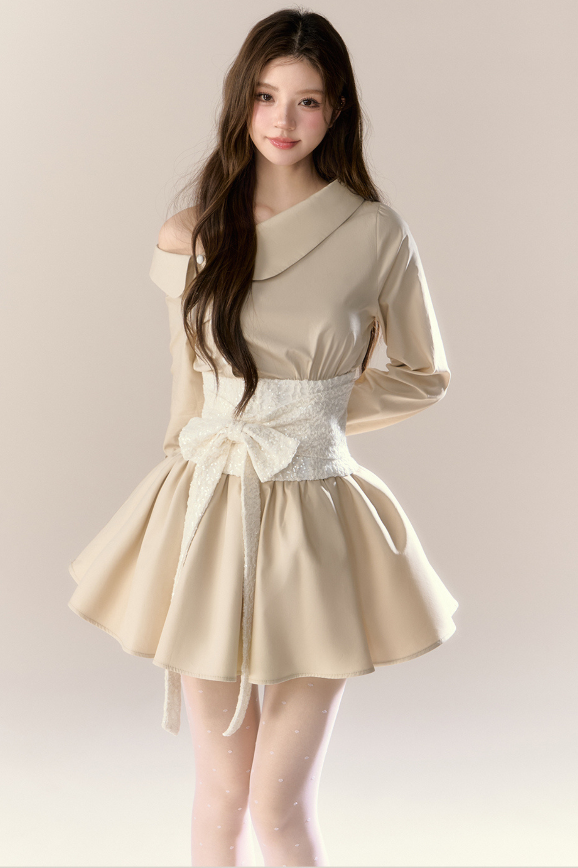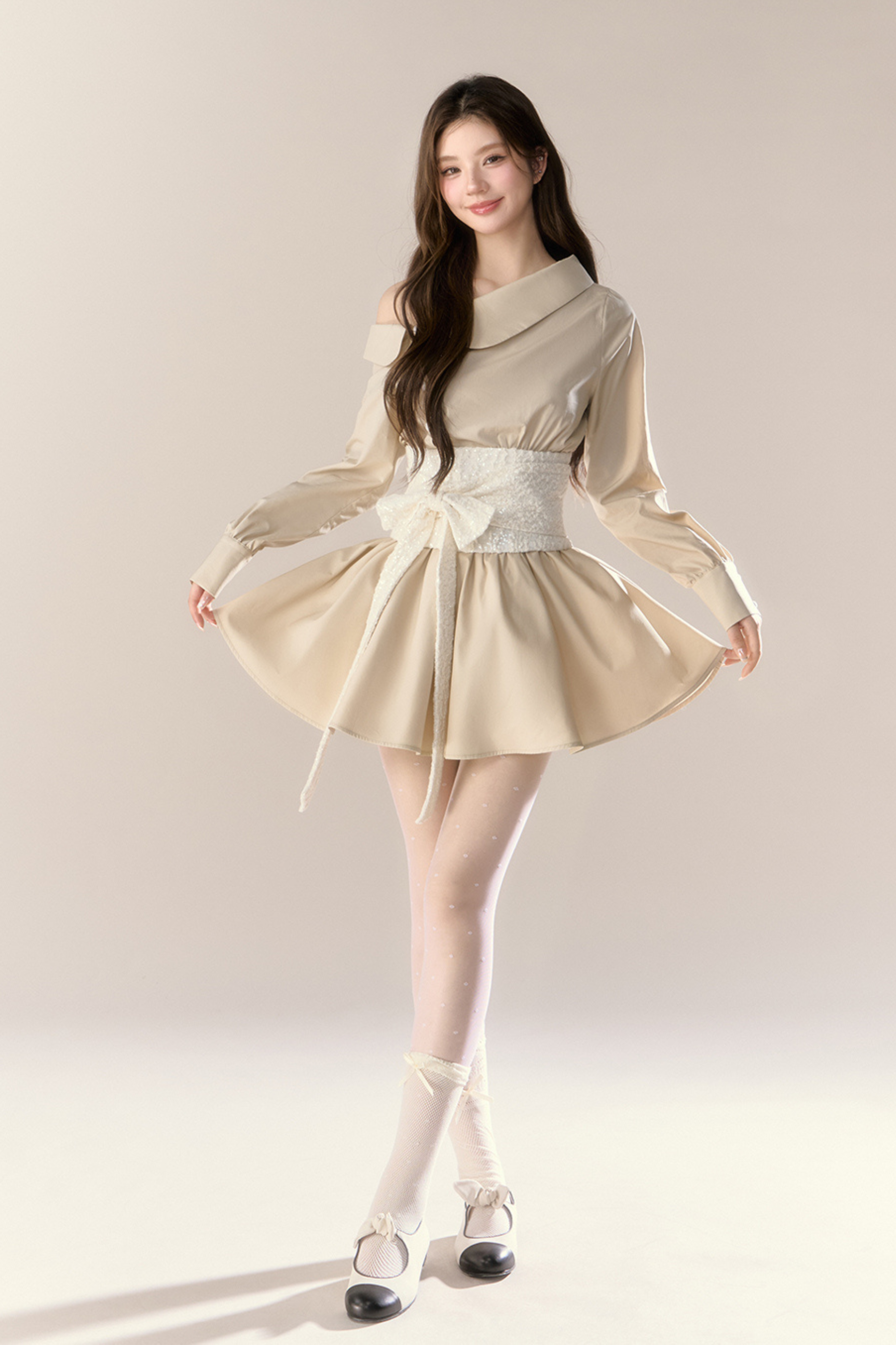 ❤ ハートビートシグナルオフショルダーシャツワンピース❤