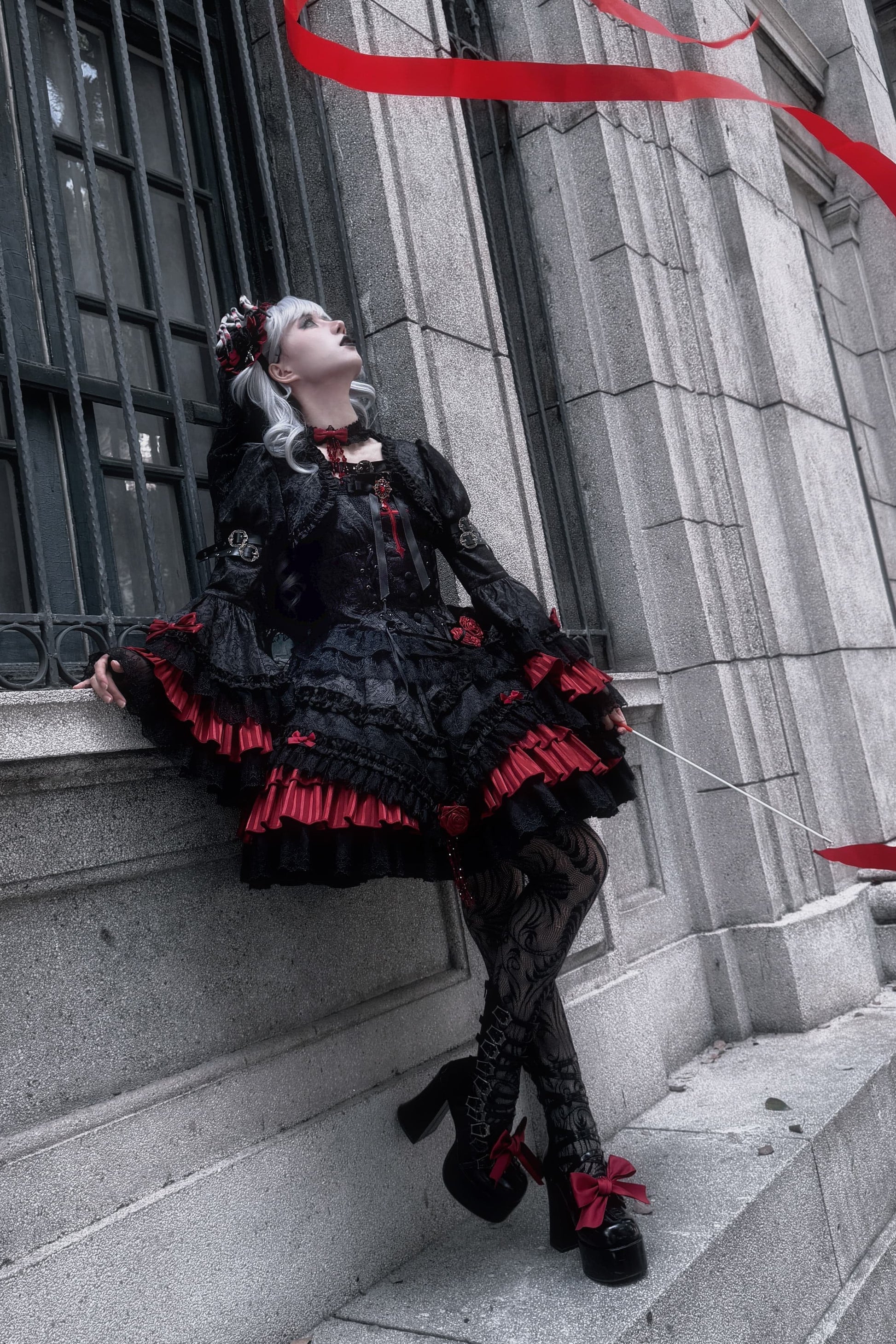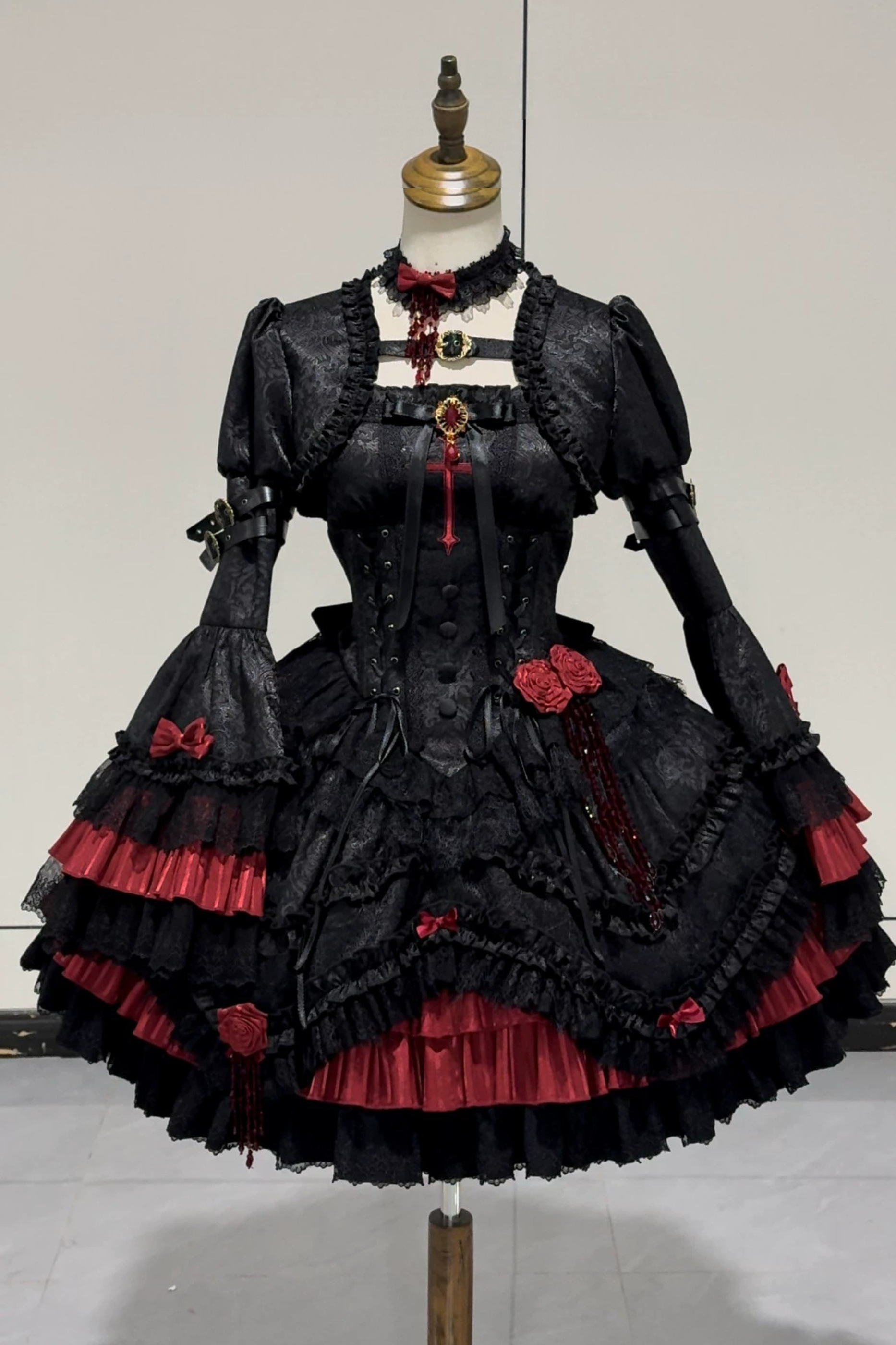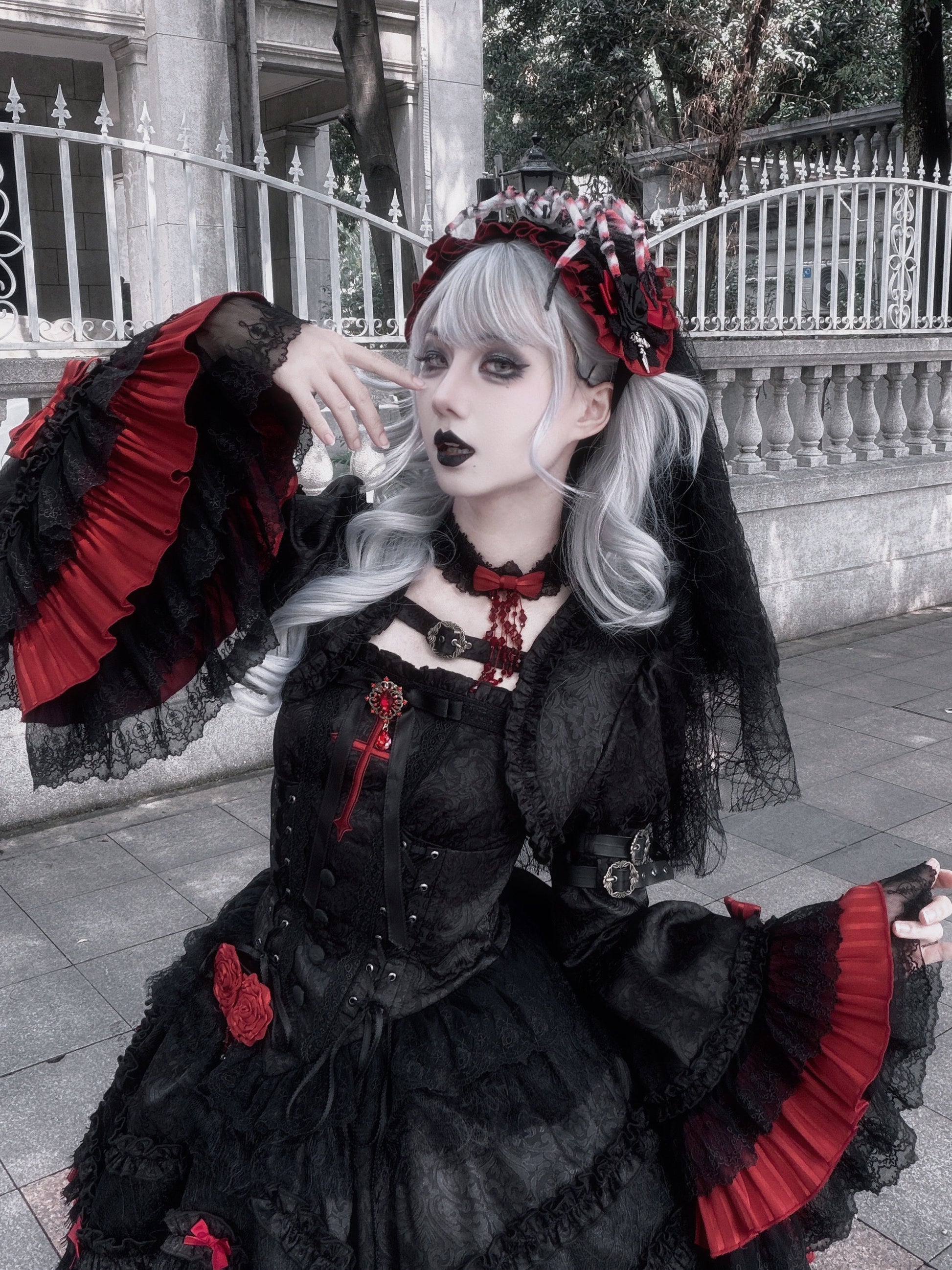 ❤︎【4月21日予約締切】ブラッドフィーストダークゴシックローズクロスコルセットサスドレス+ベルスリーブショートジャケット+アクセサリー❤︎ ⚠️人気商品のためお届けに4ヶ月ほどかかってしまう場合がございます