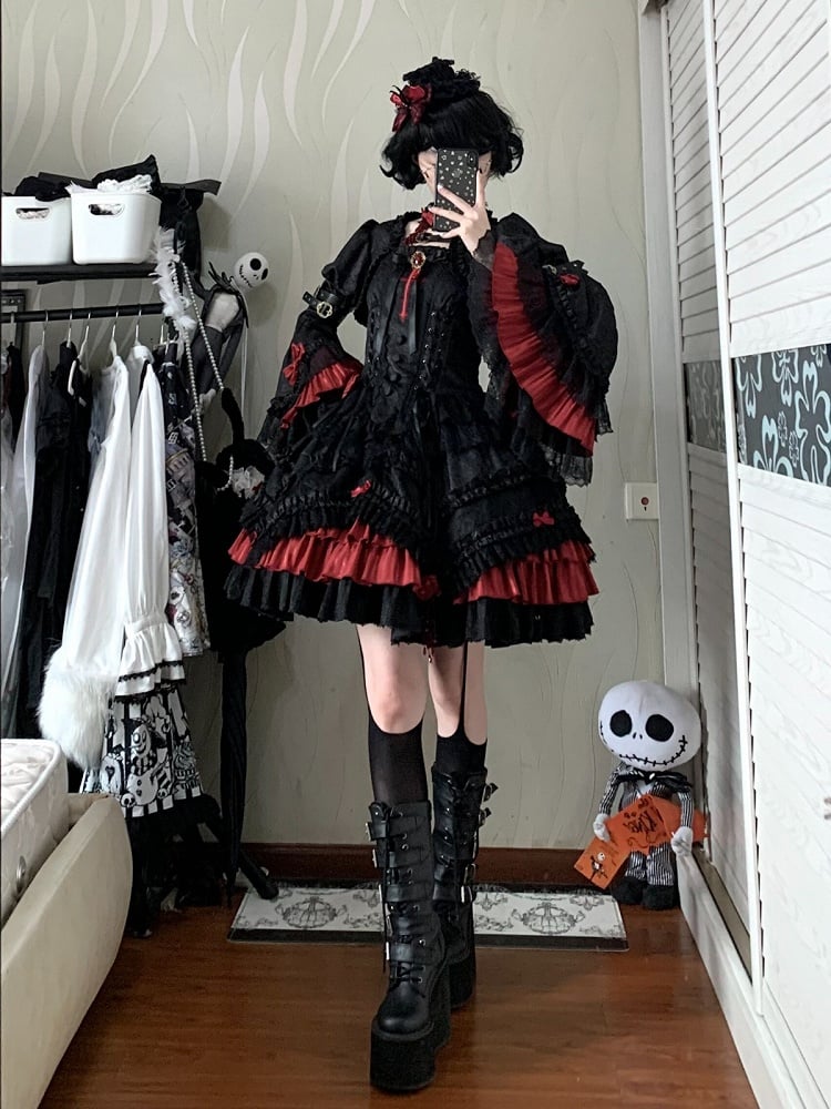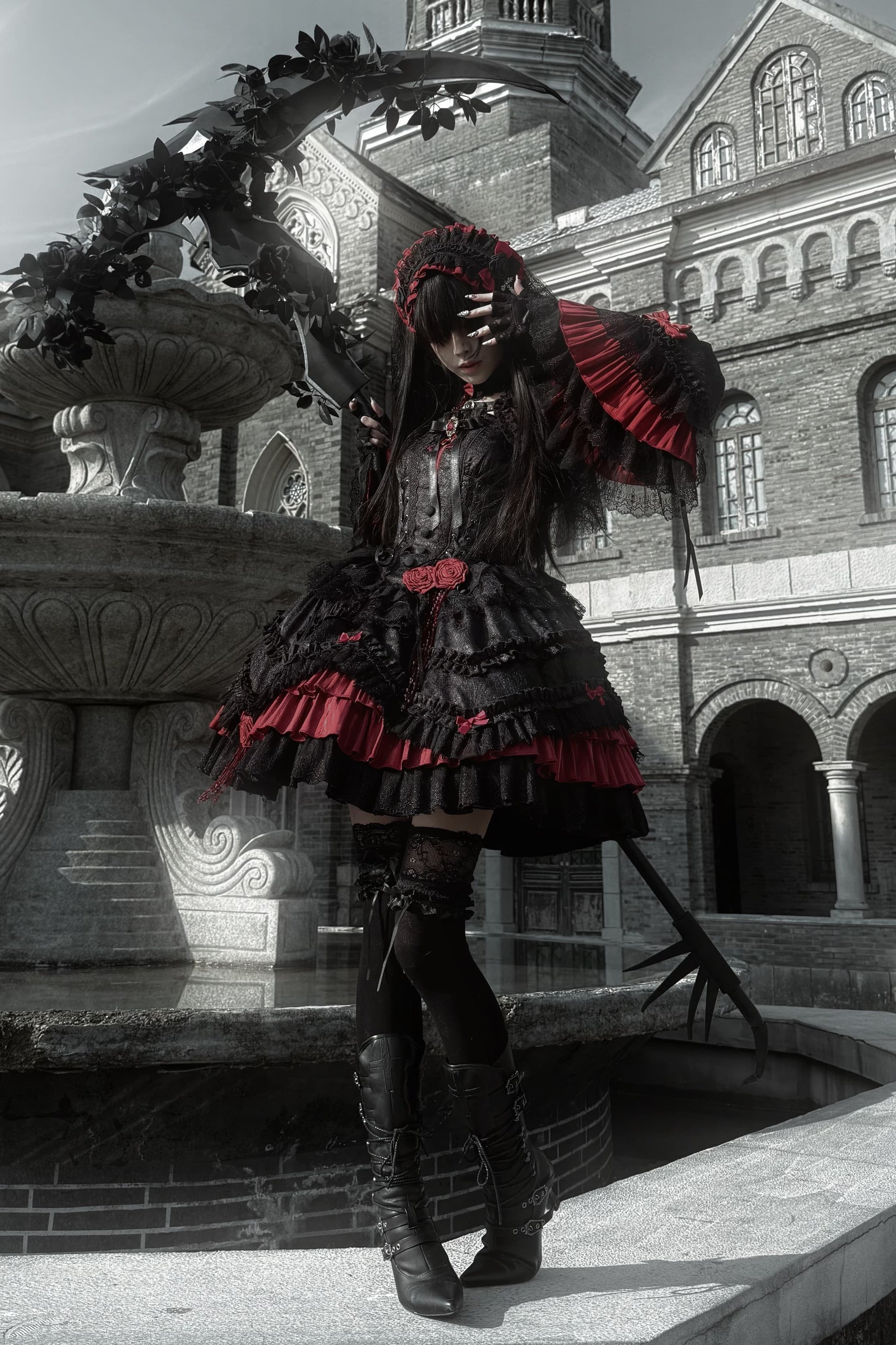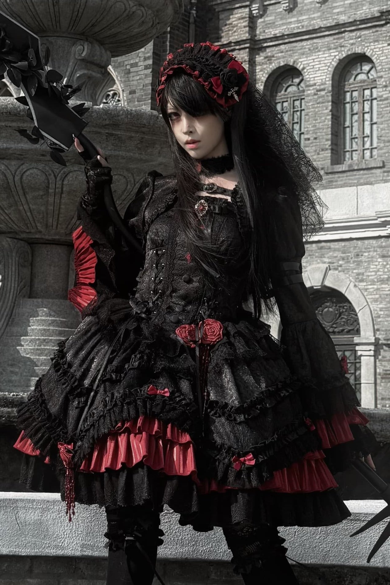 ❤︎【4月21日予約締切】ブラッドフィーストダークゴシックローズクロスコルセットサスドレス+ベルスリーブショートジャケット+アクセサリー❤︎ ⚠️人気商品のためお届けに4ヶ月ほどかかってしまう場合がございます