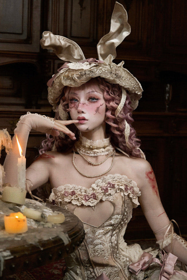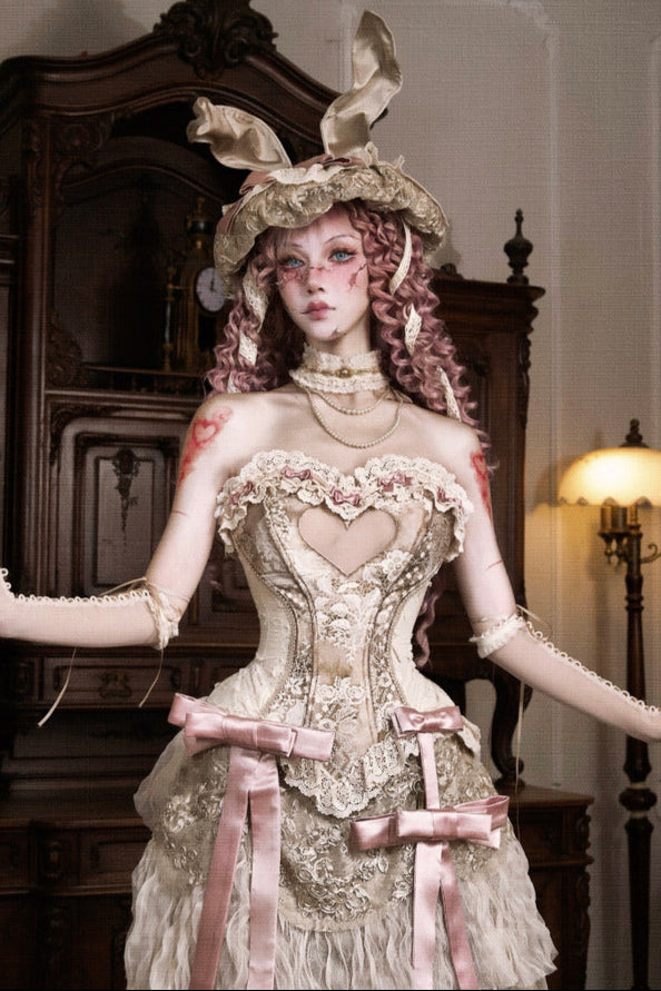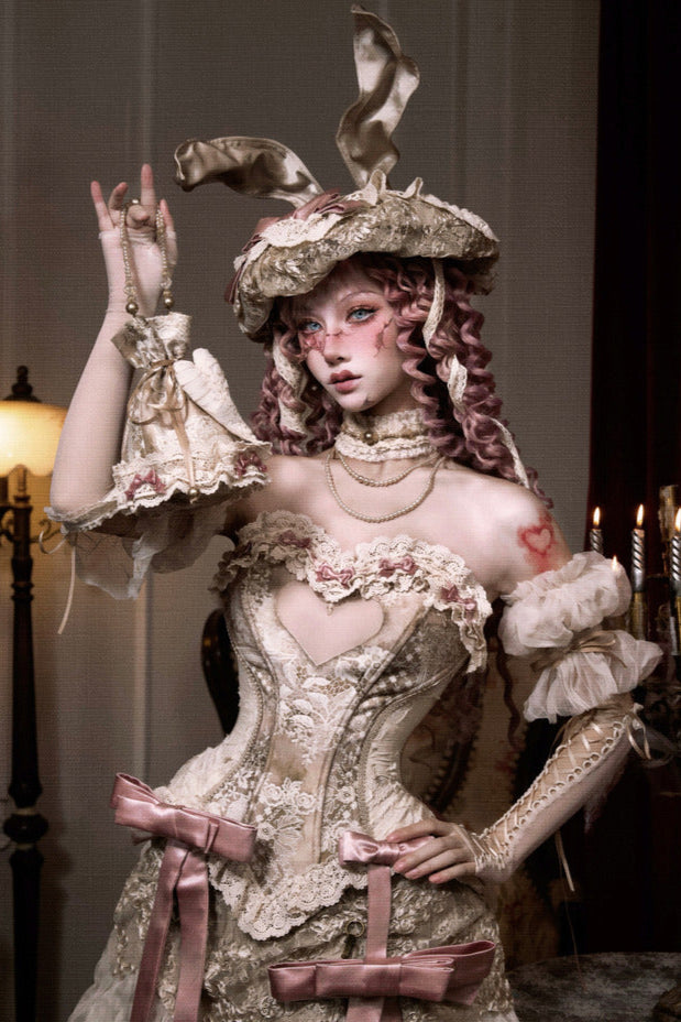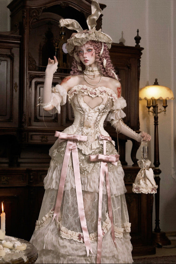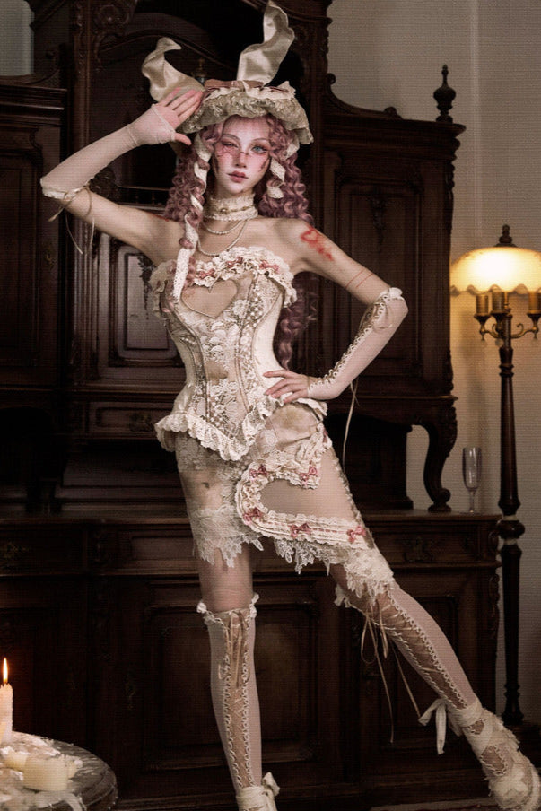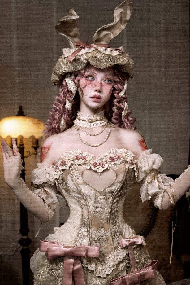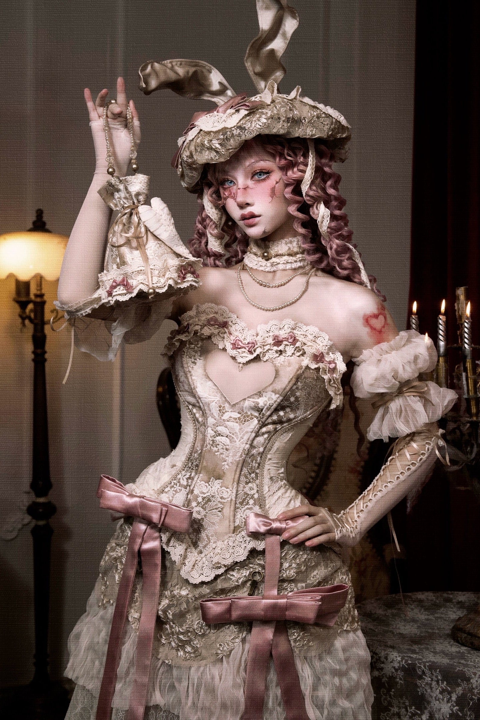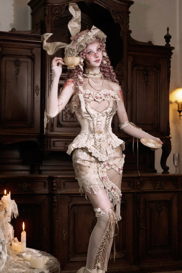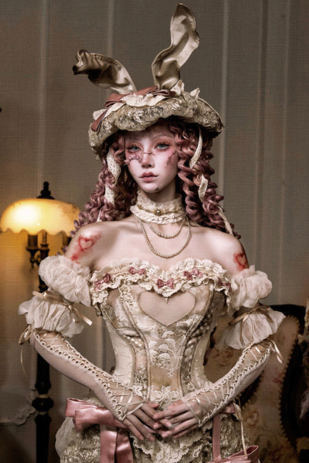 ラブフィッシュボーンコルセットロココフレンチチュニックトリムトップス+スリーブ+スリムリボン+レッグカバー+チョーカー