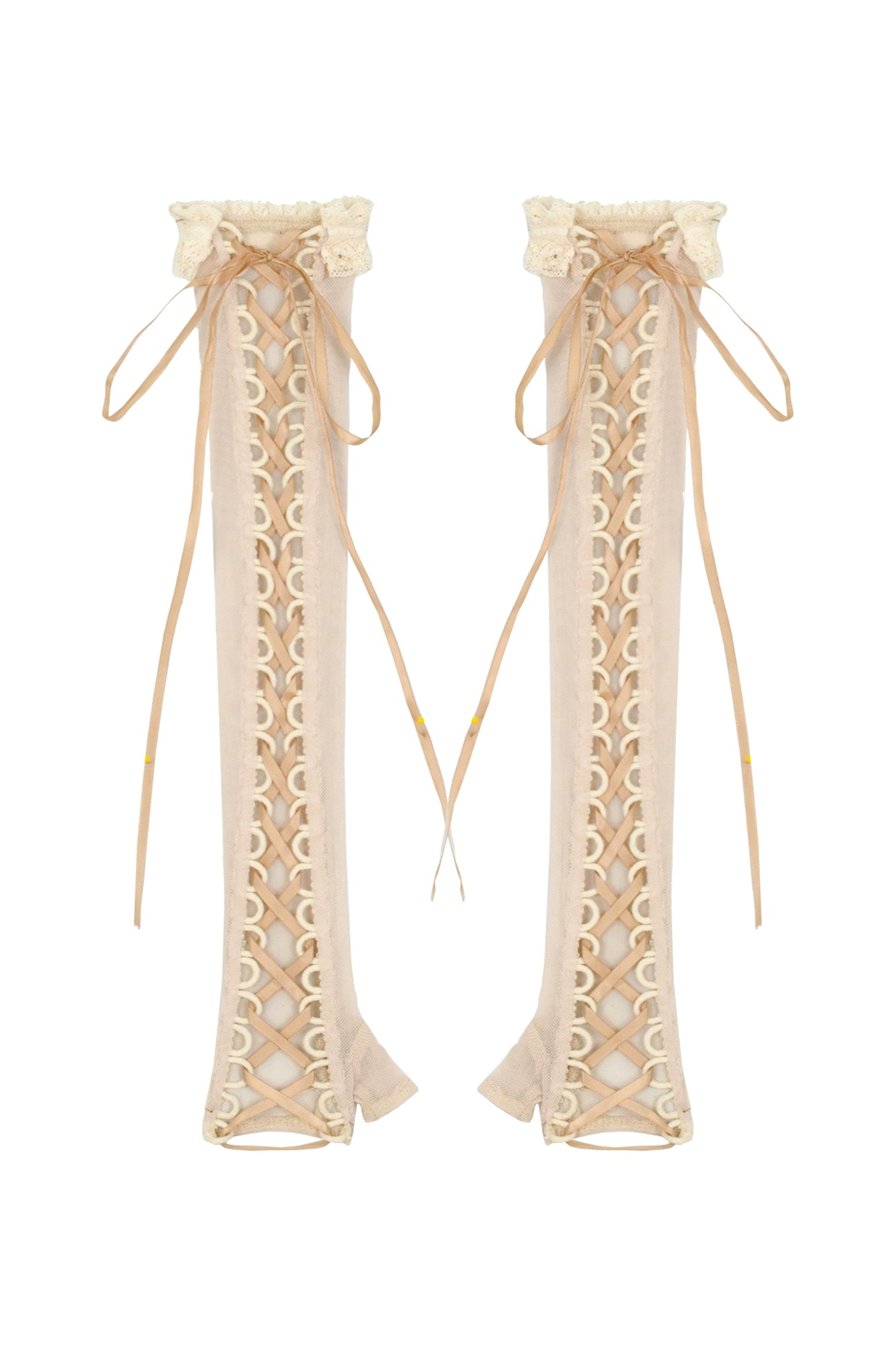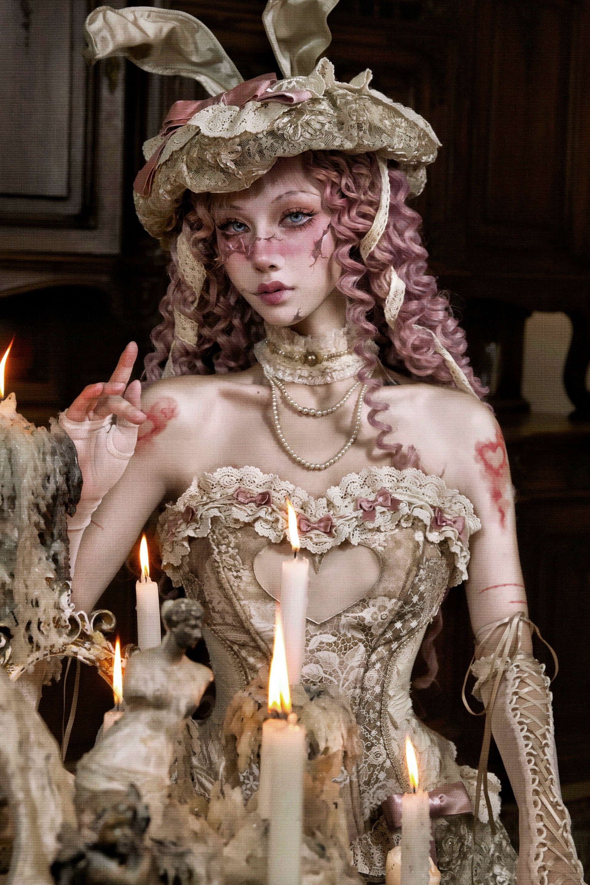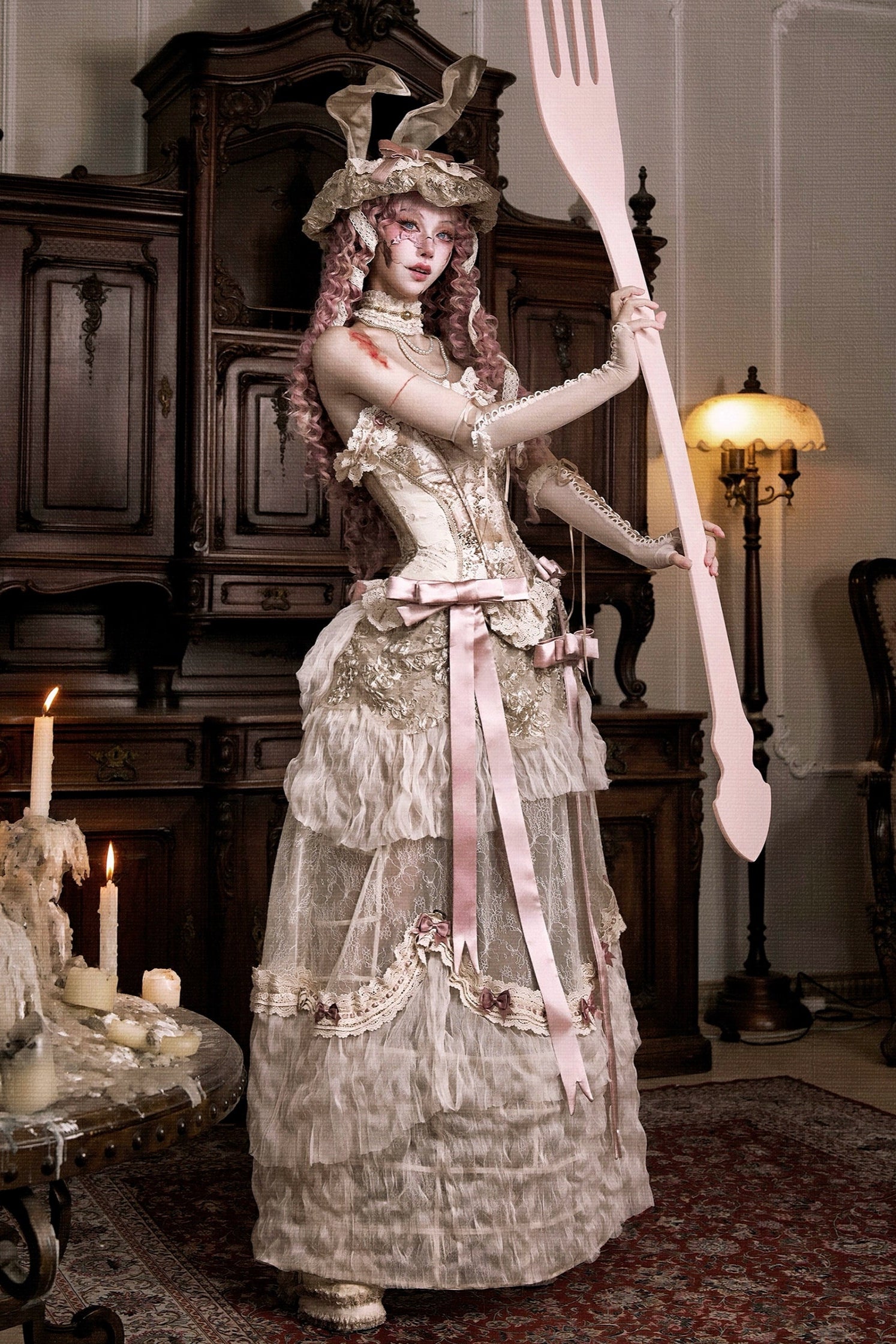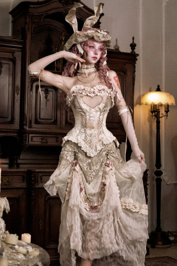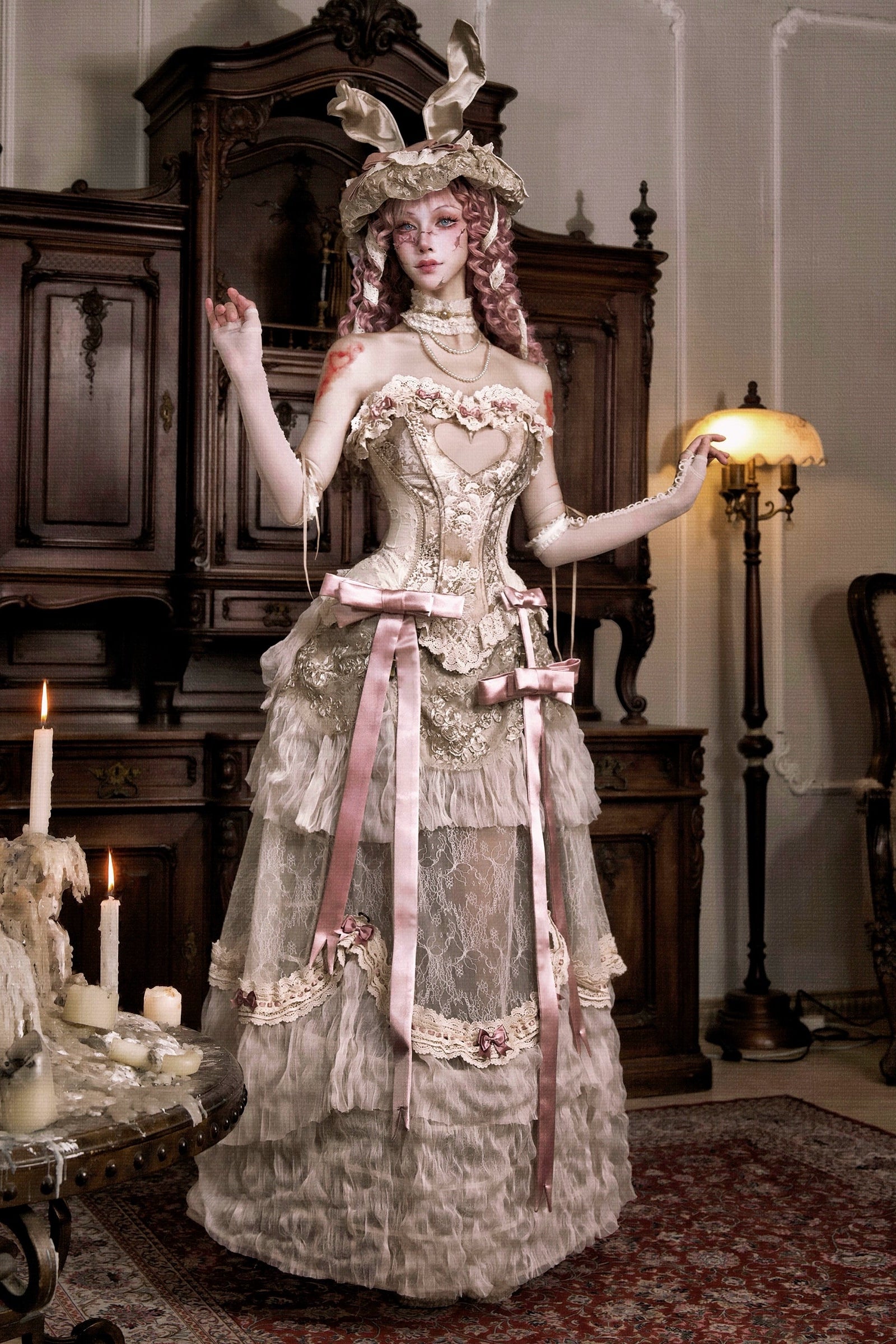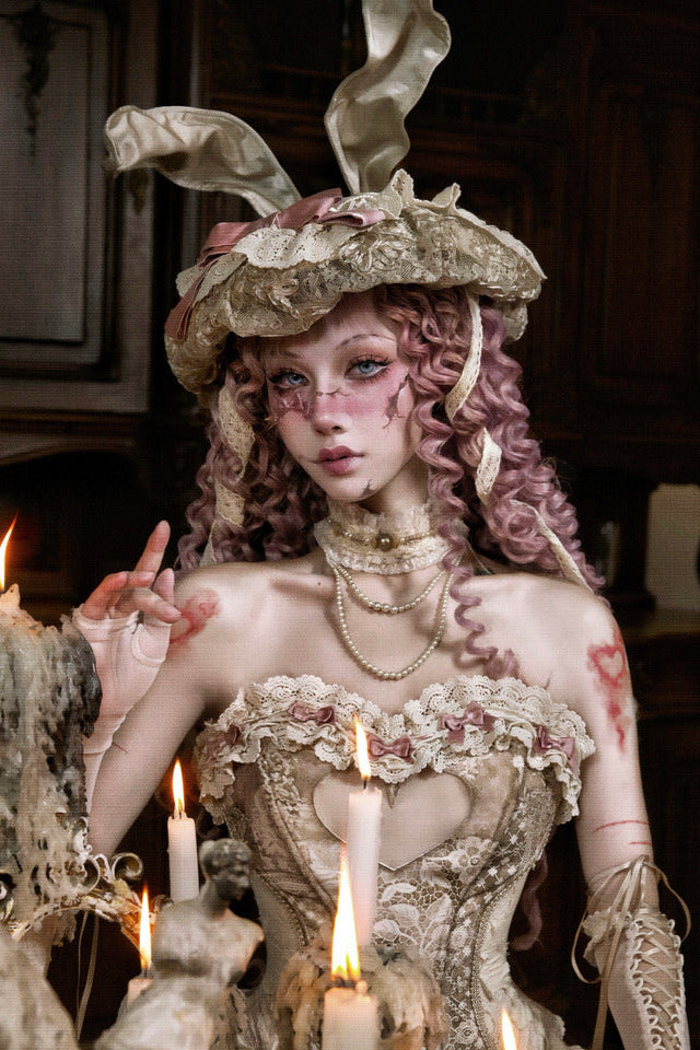 ラブフィッシュボーンコルセットロココフレンチチュニックトリムトップス+スリーブ+スリムリボン+レッグカバー+チョーカー