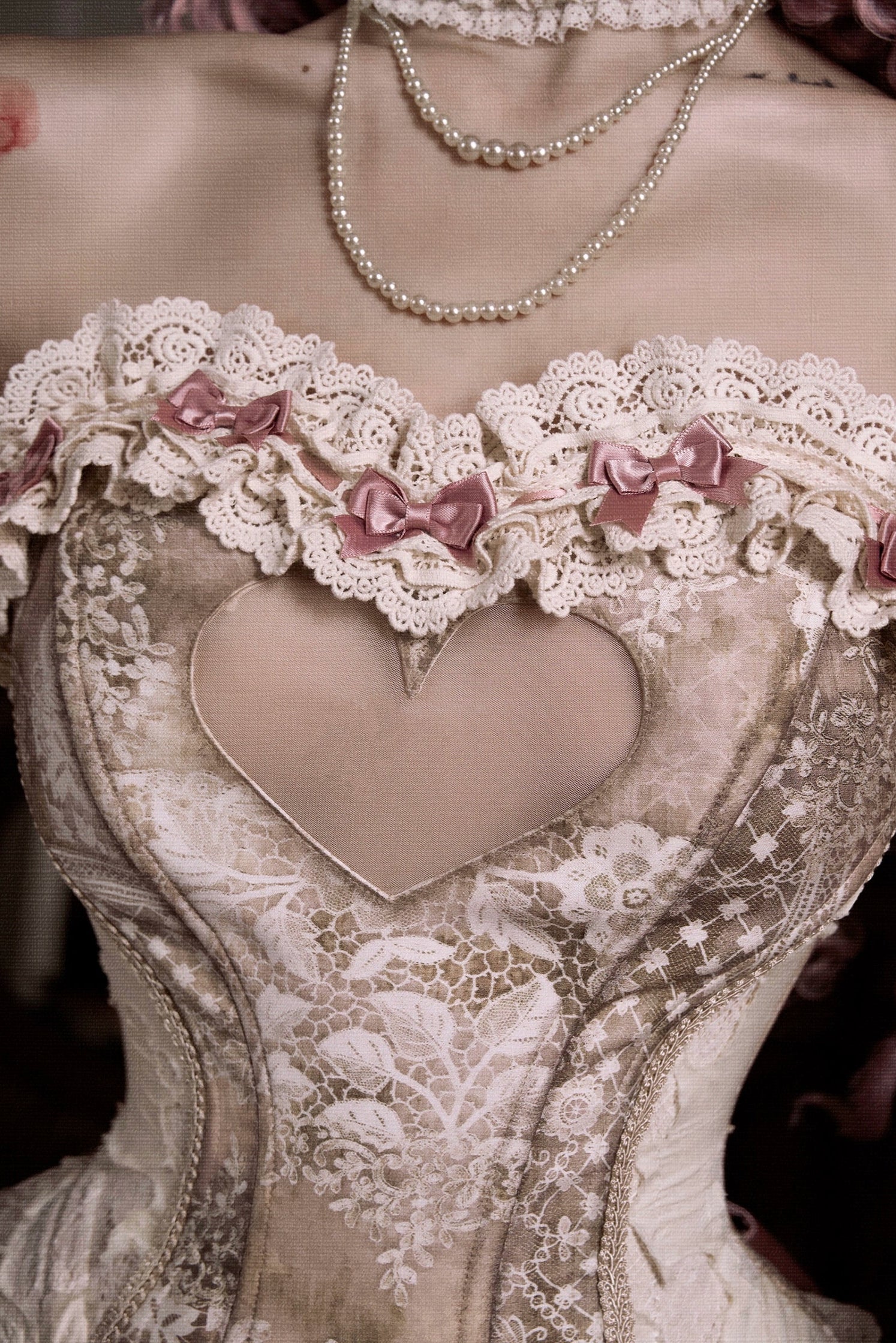 ❤ラブフィッシュボーンコルセットロココフレンチチュニックトリムトップス+スリーブ+スリムリボン+レッグカバー+チョーカー❤