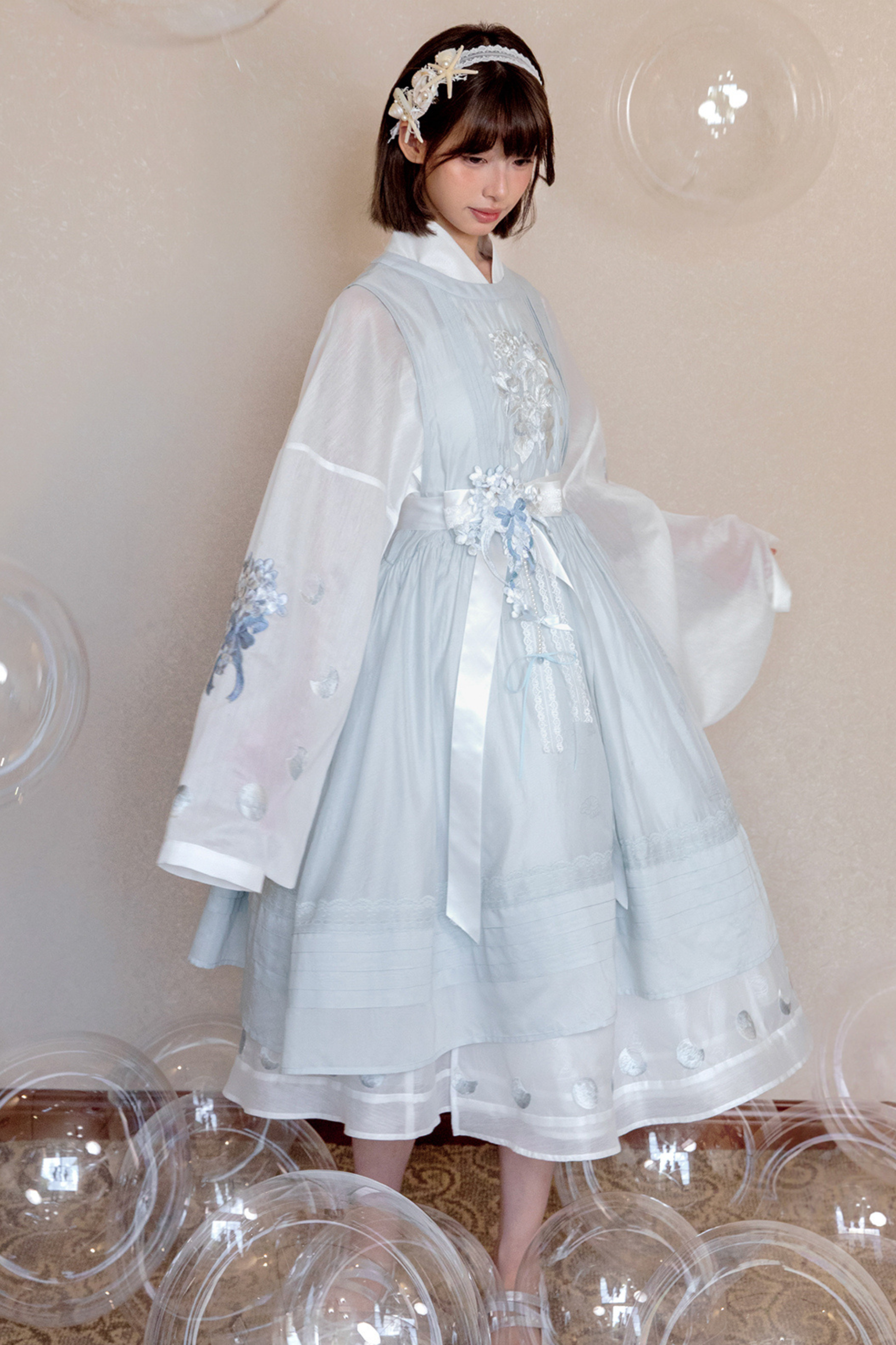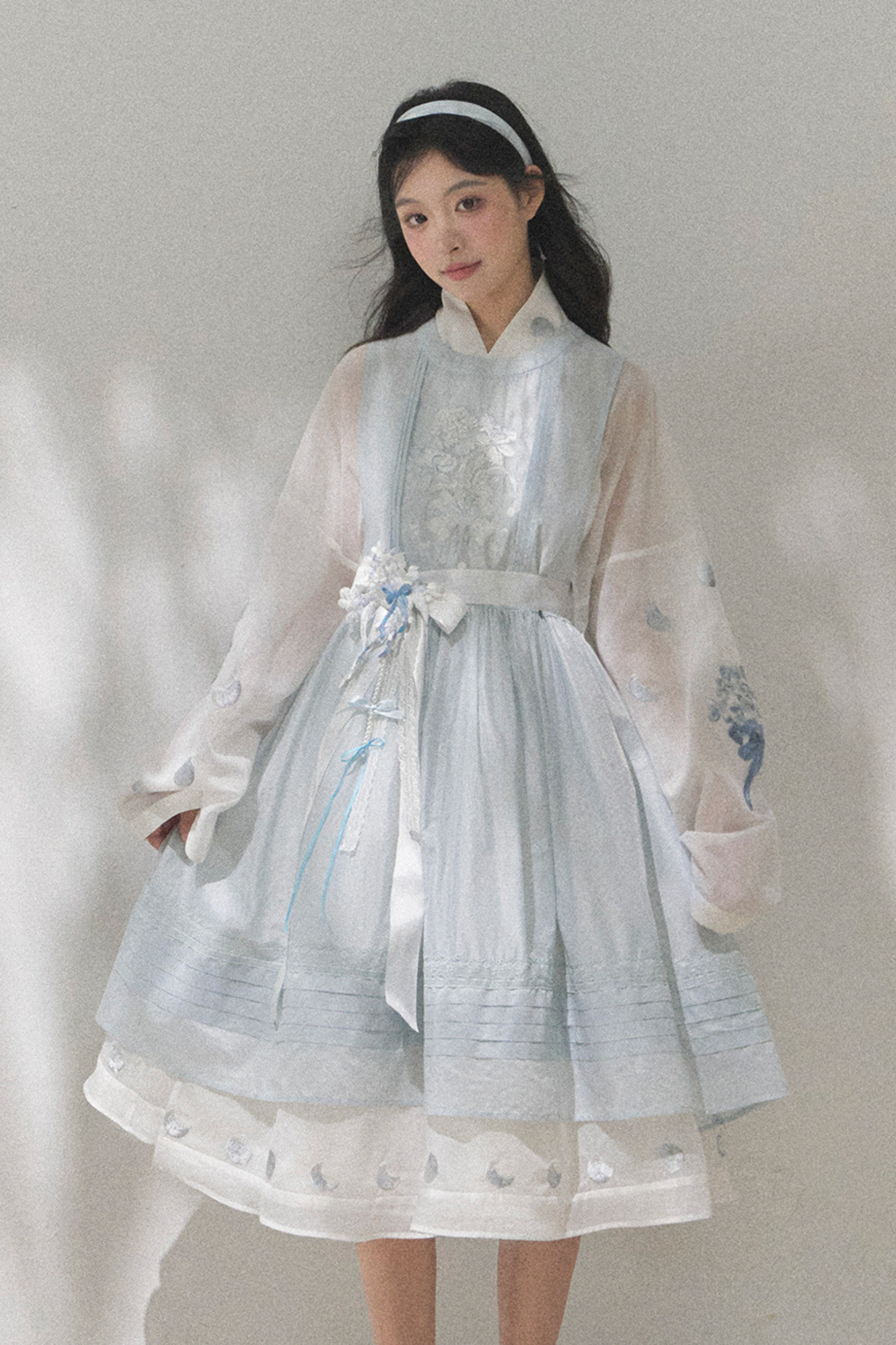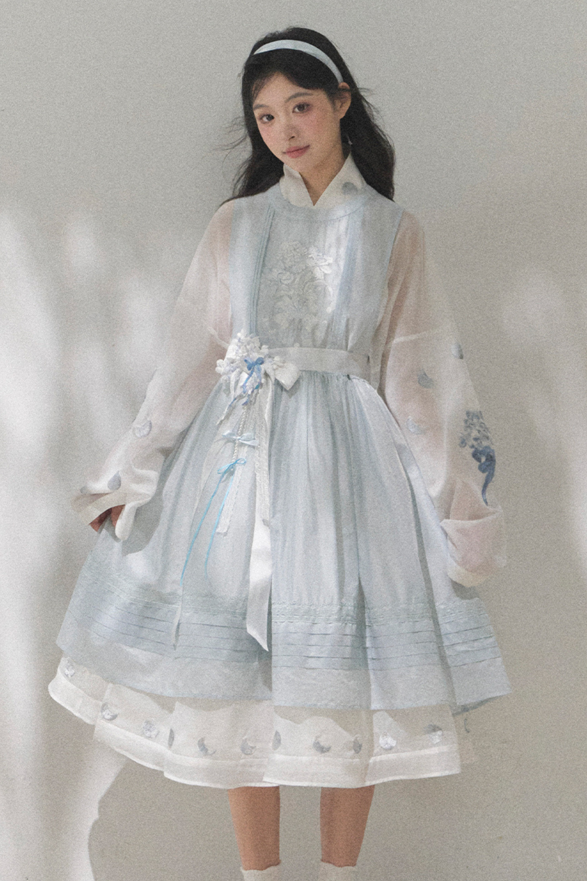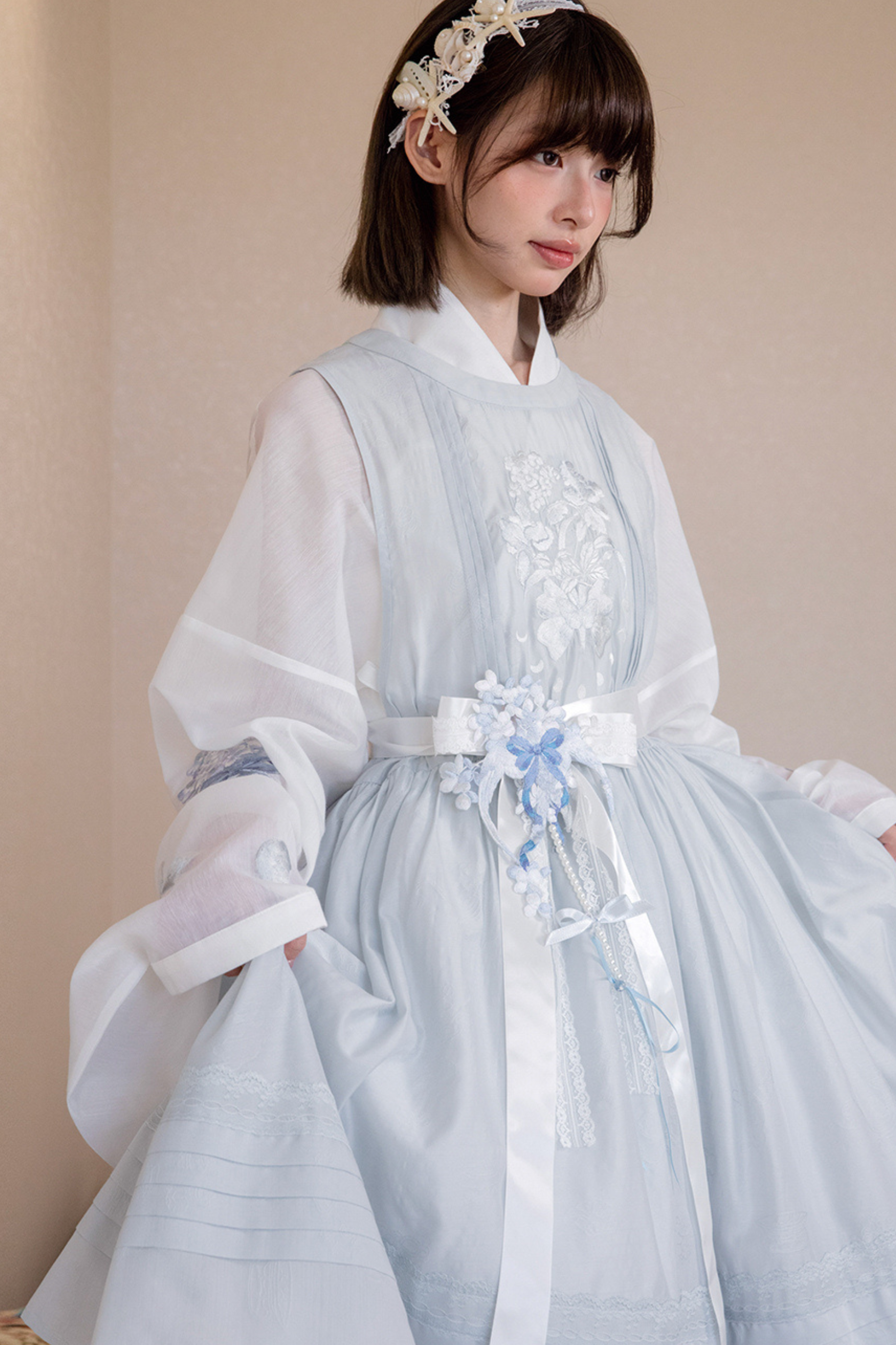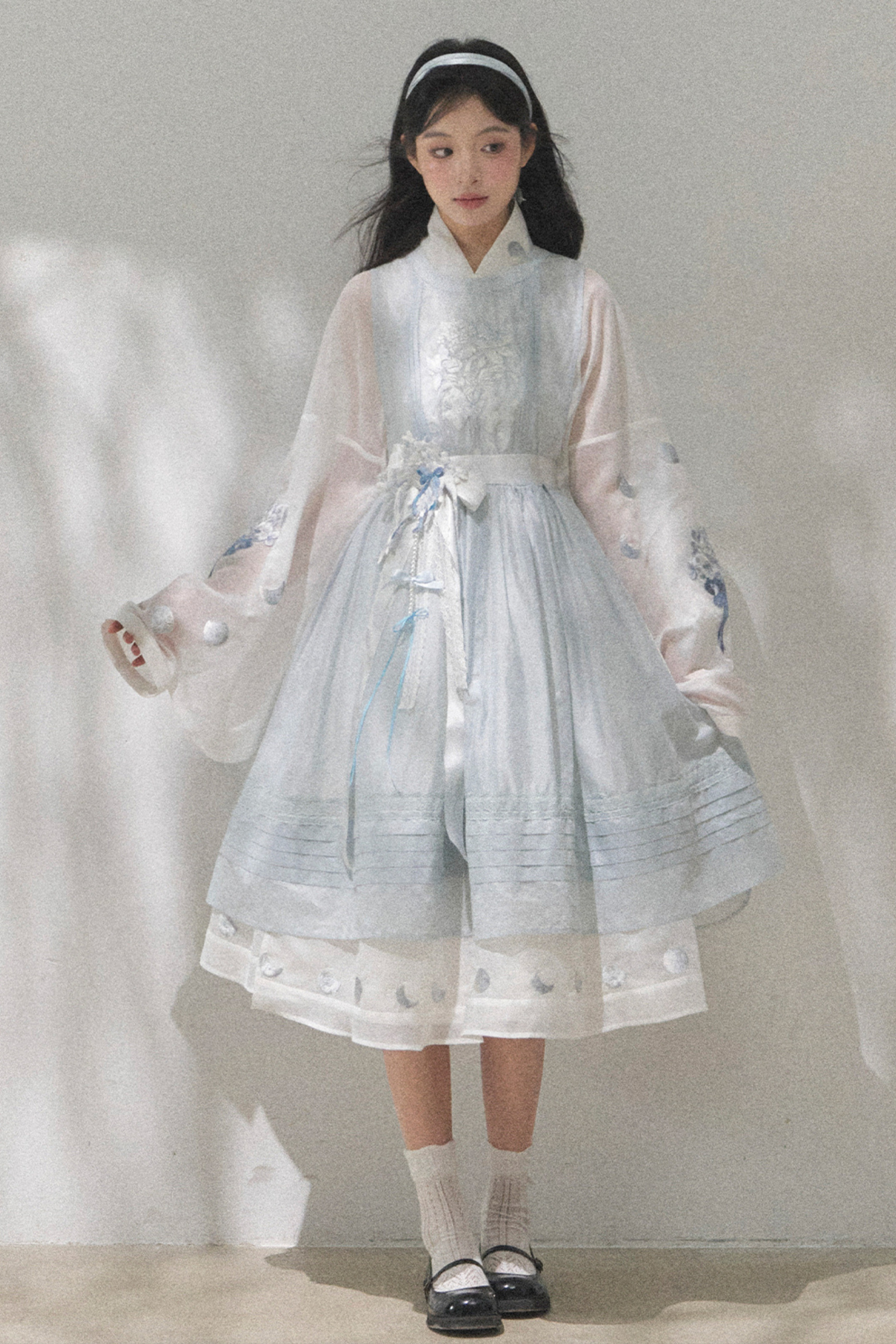 ピュアホワイトチャイナドレス+カバーエプロン+ベルト