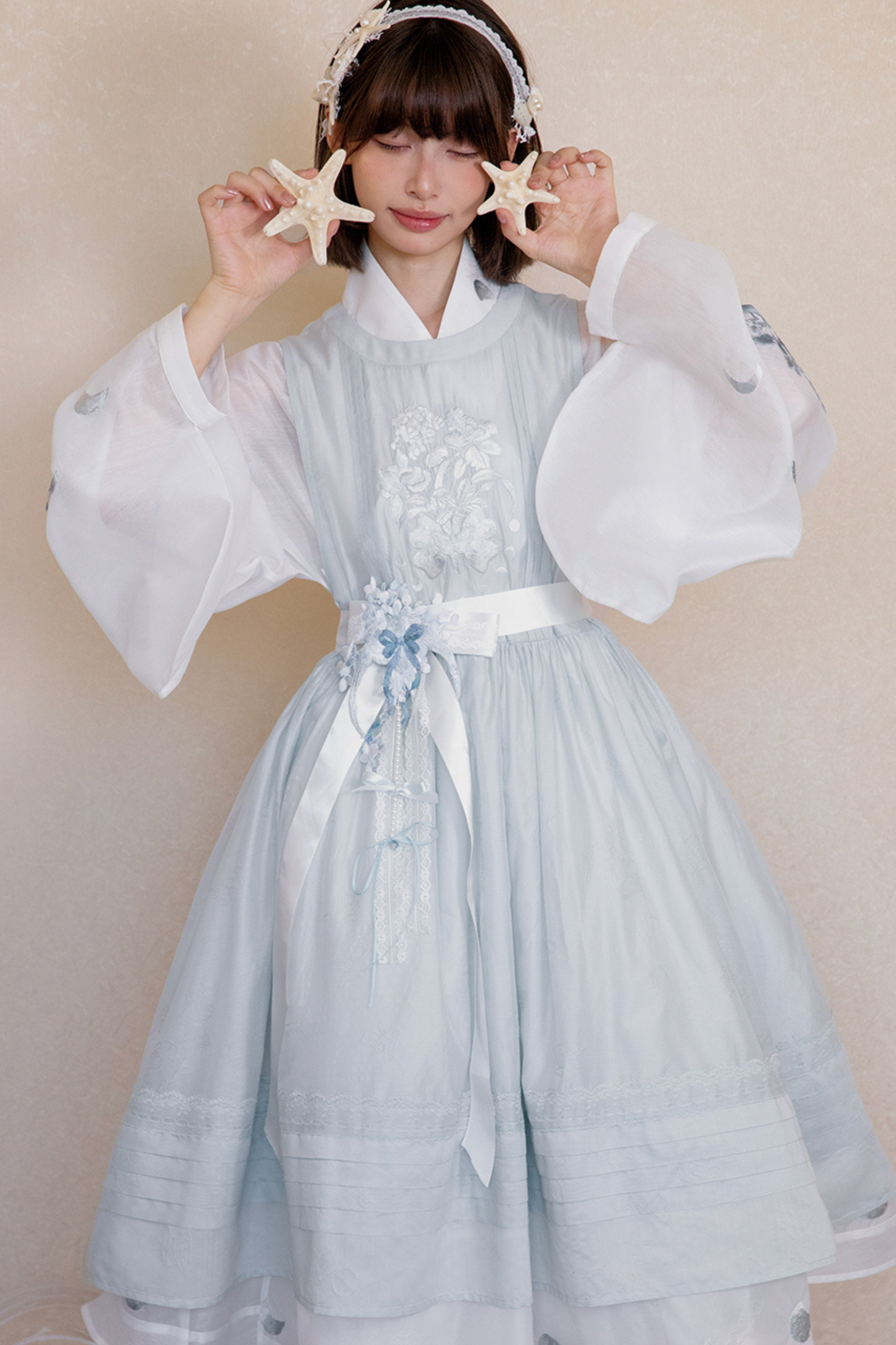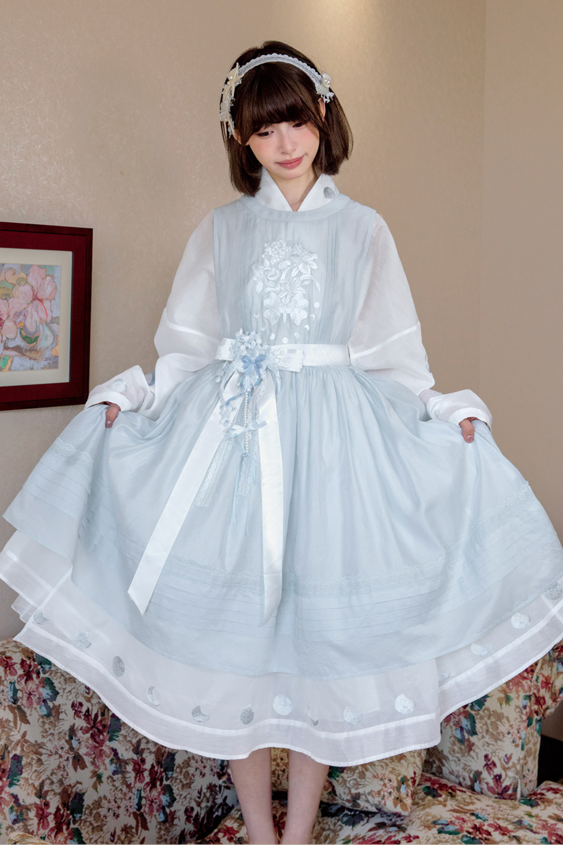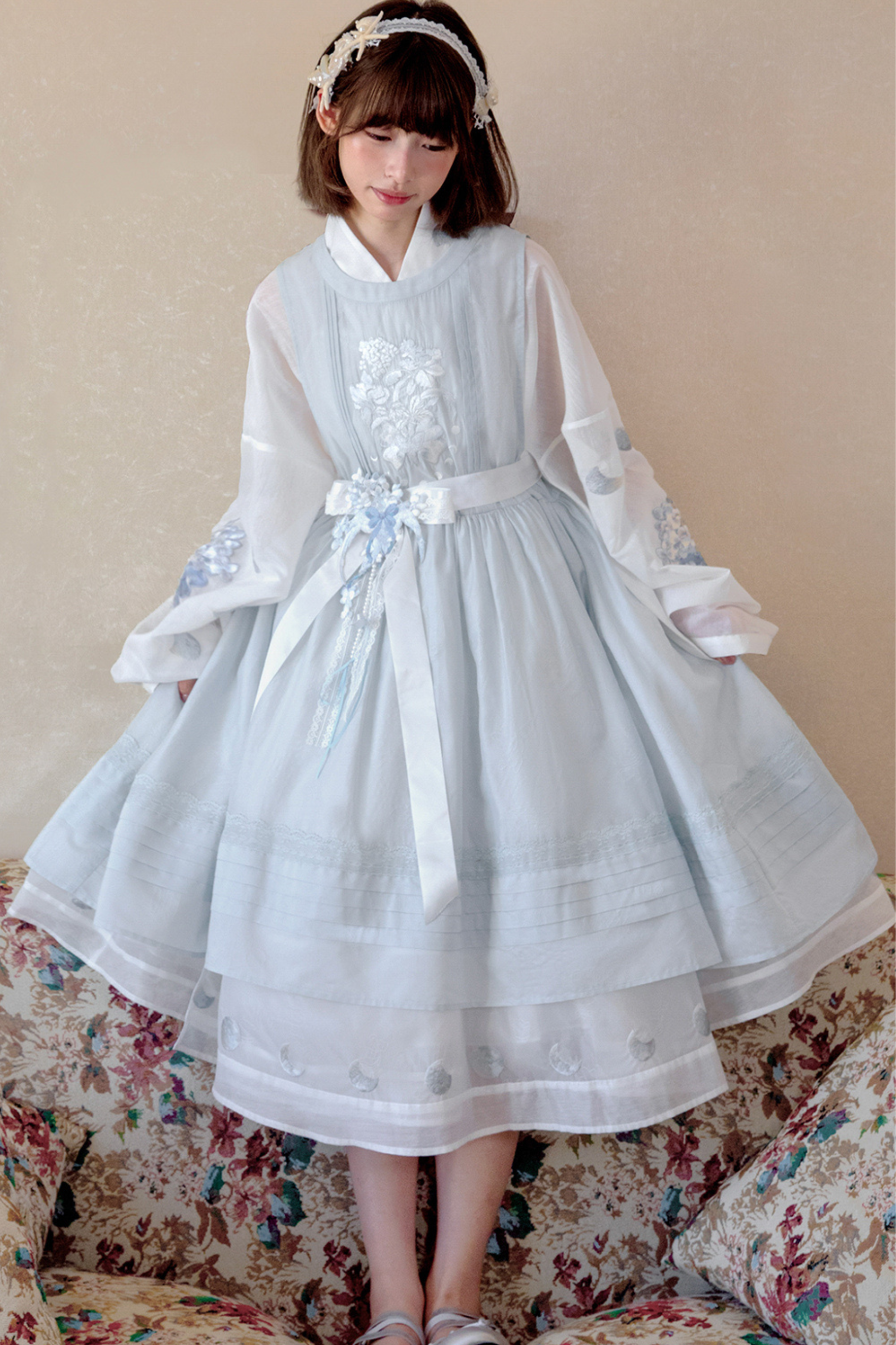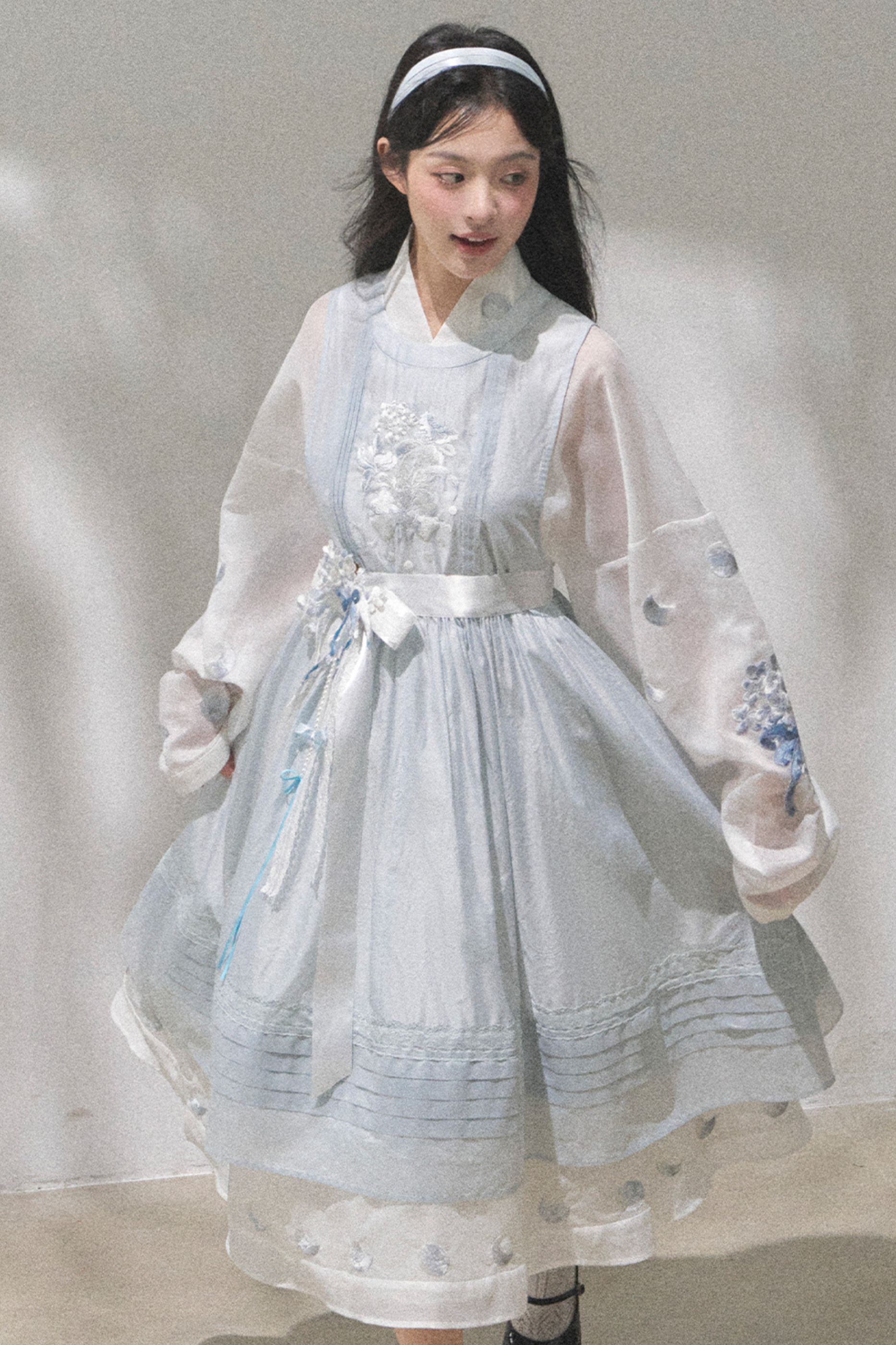 ピュアホワイトチャイナドレス+カバーエプロン+ベルト
