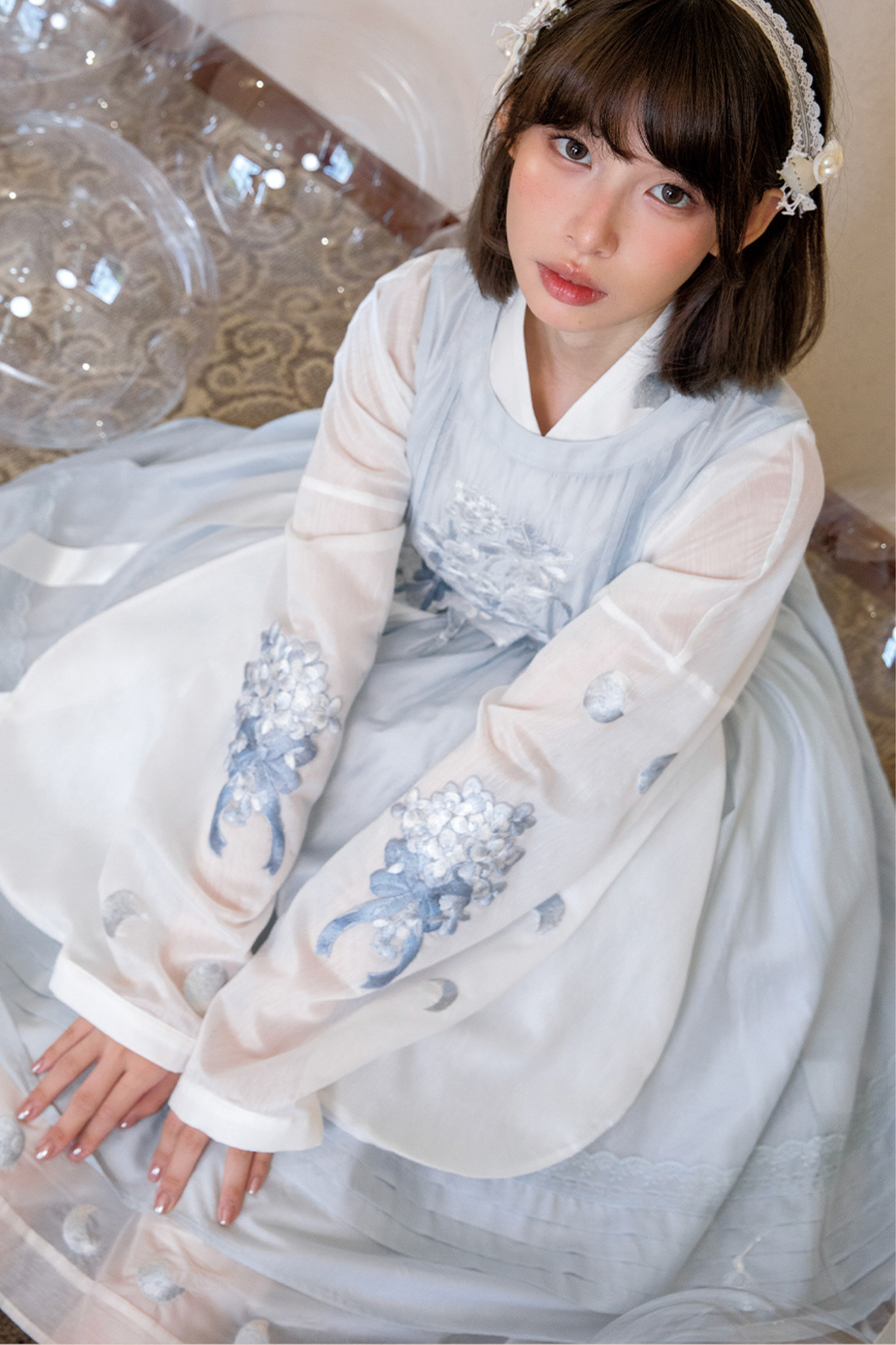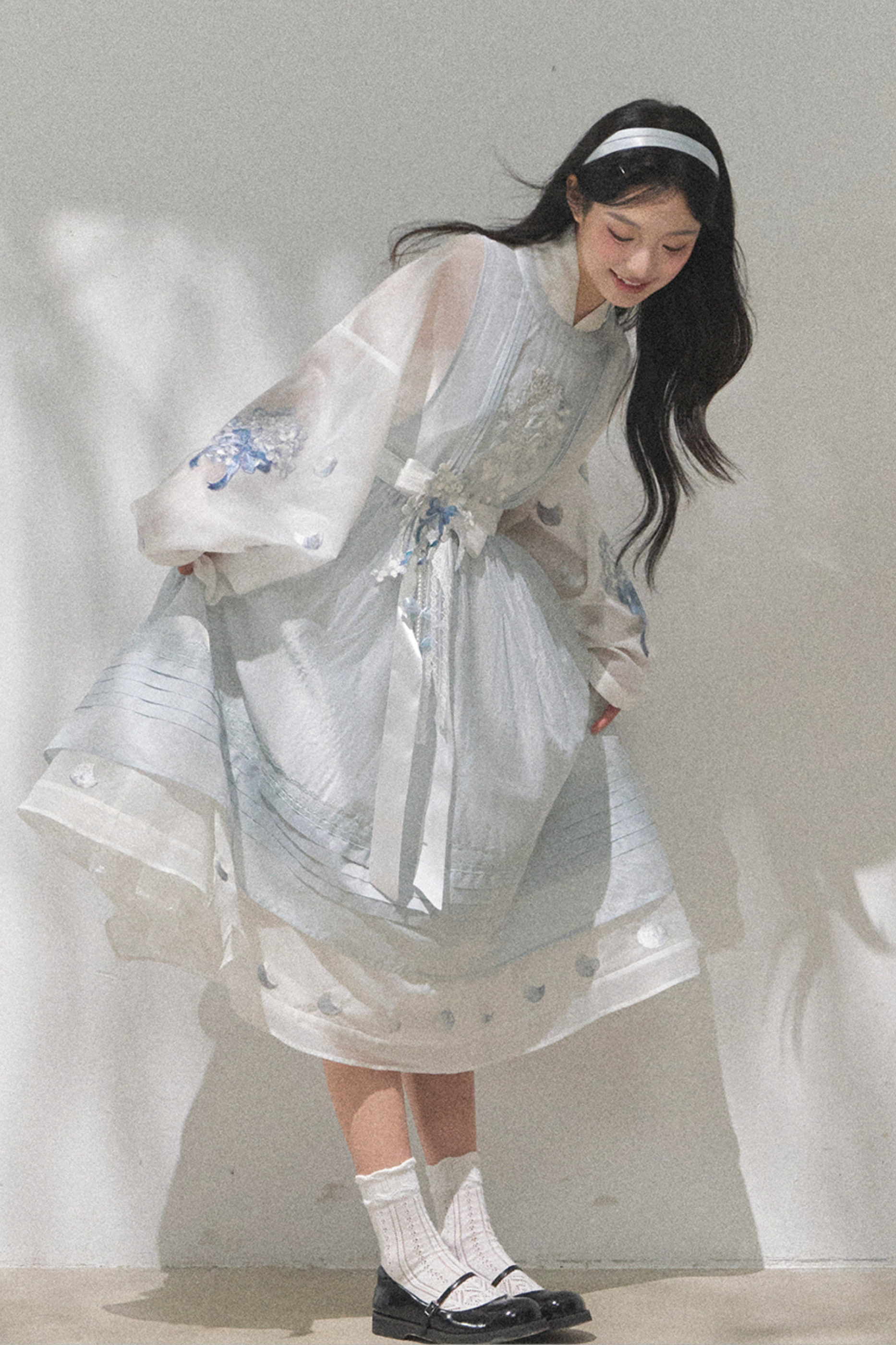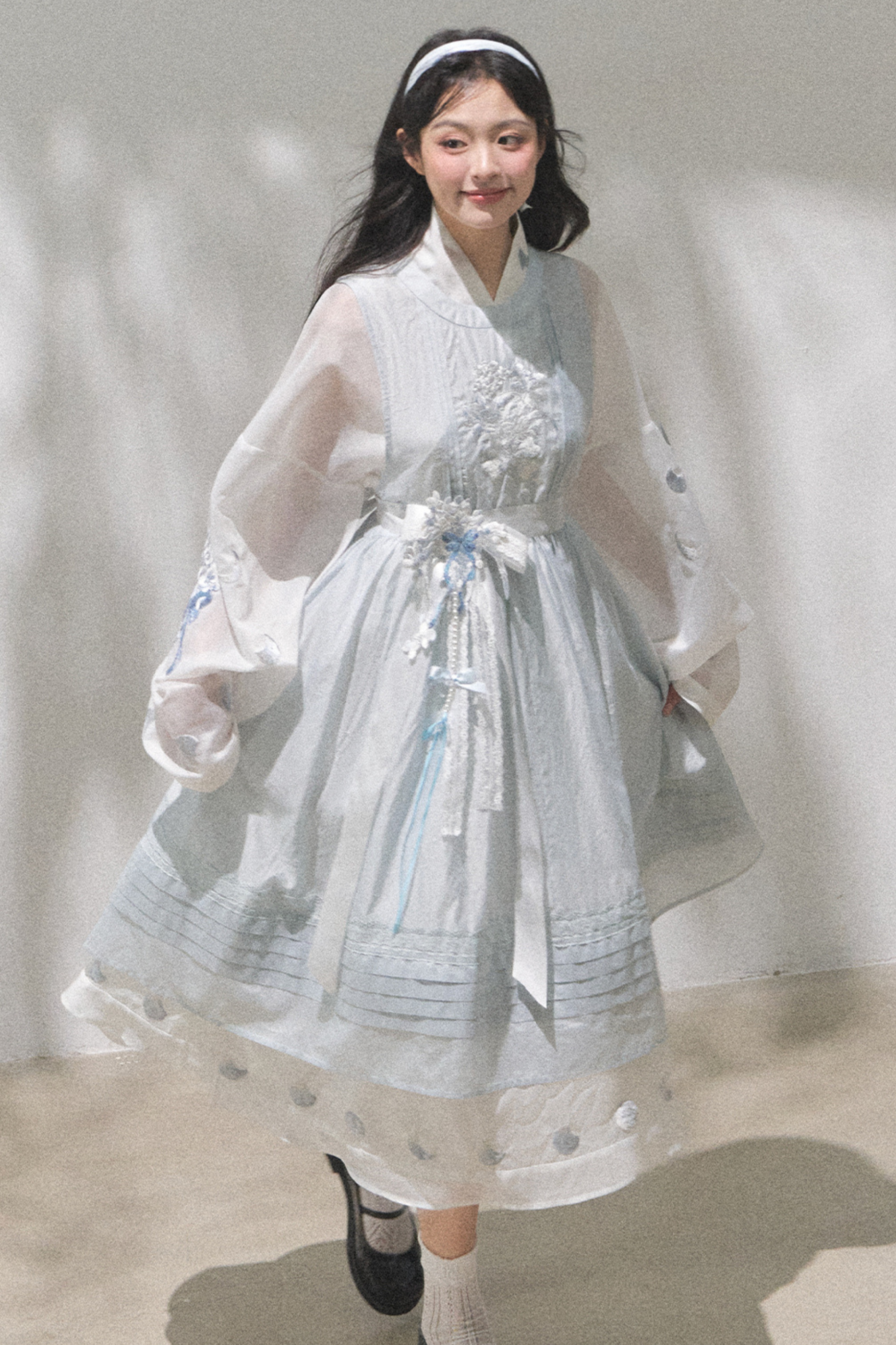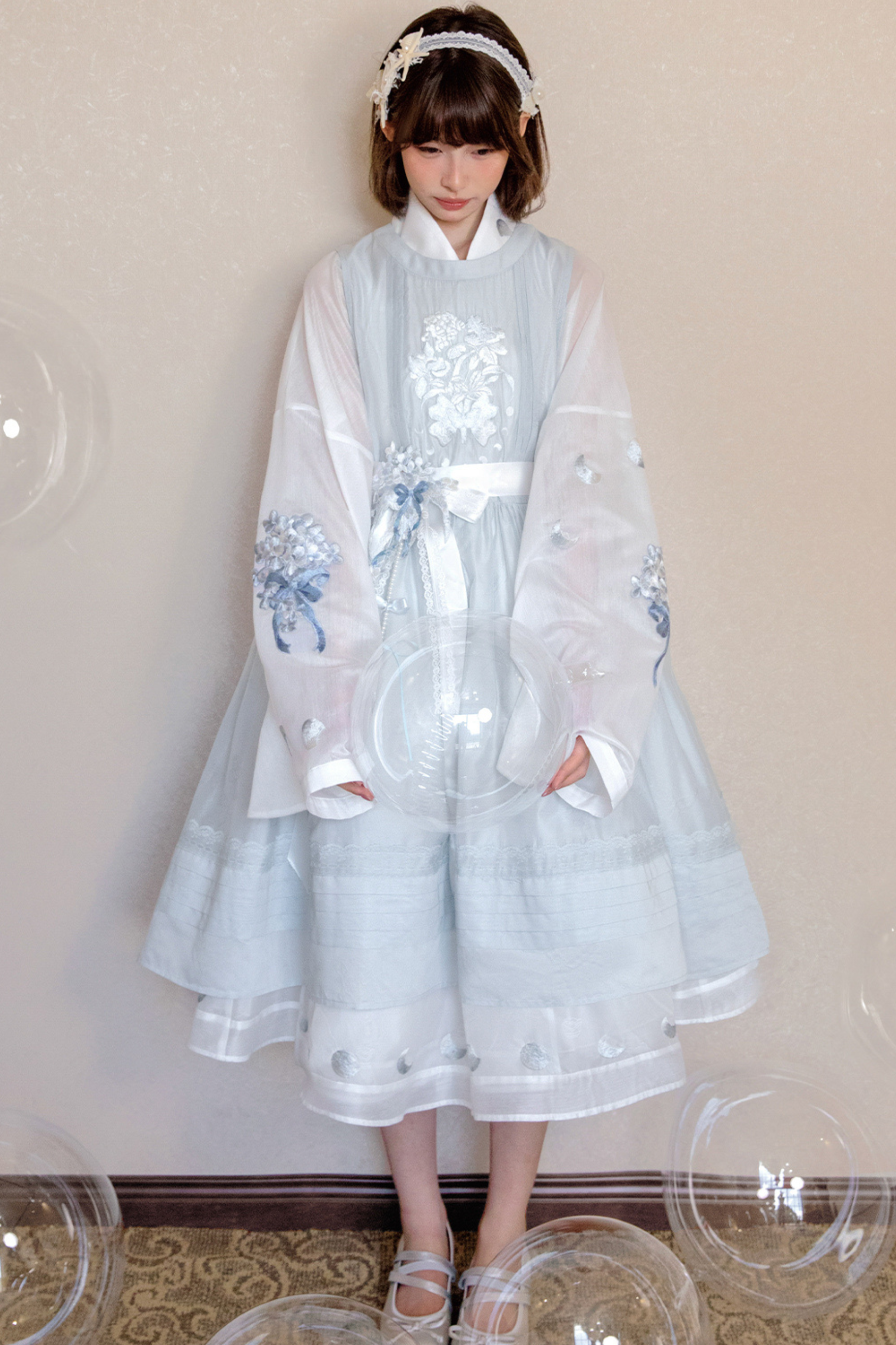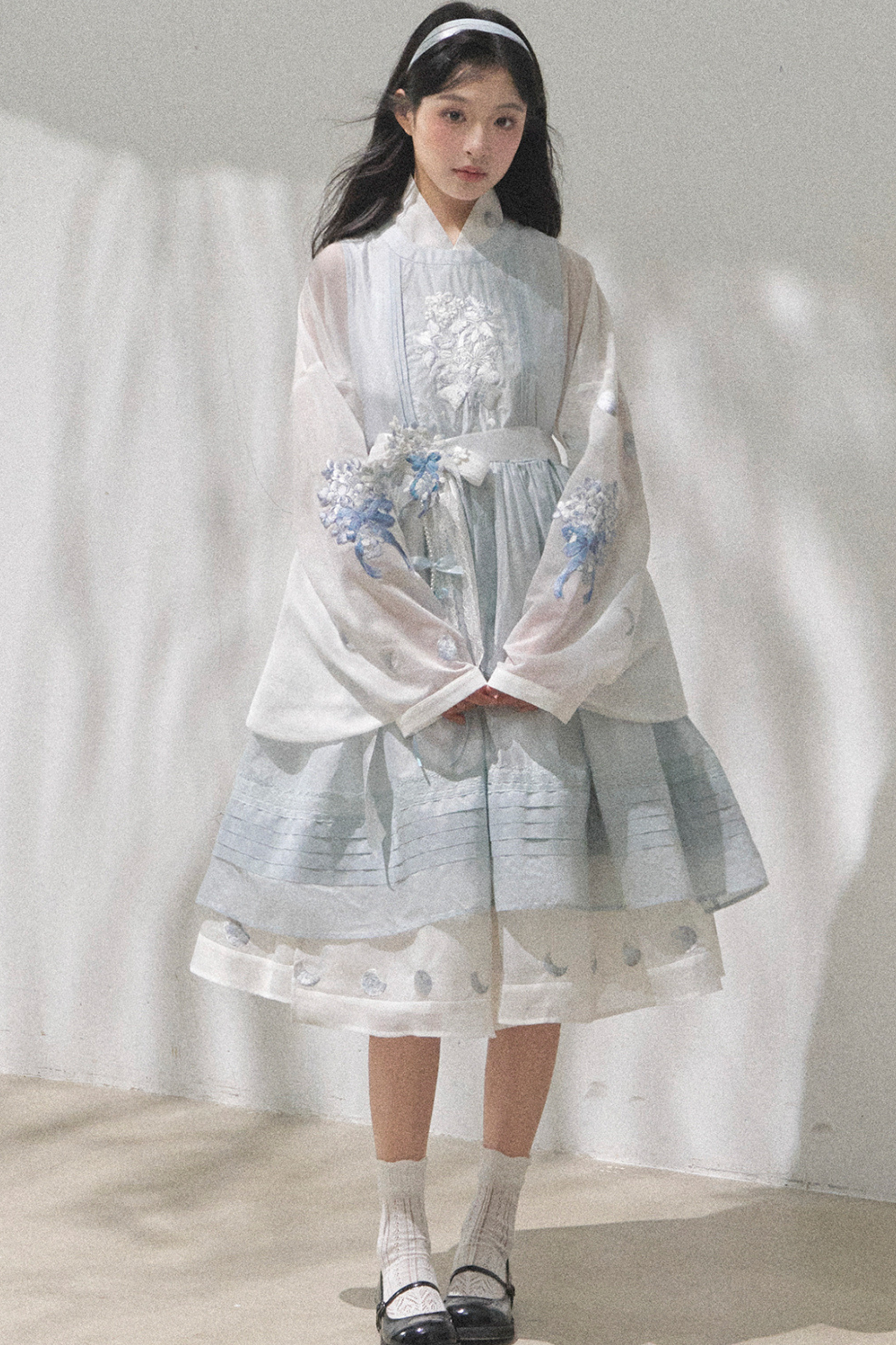 ピュアホワイトチャイナドレス+カバーエプロン+ベルト