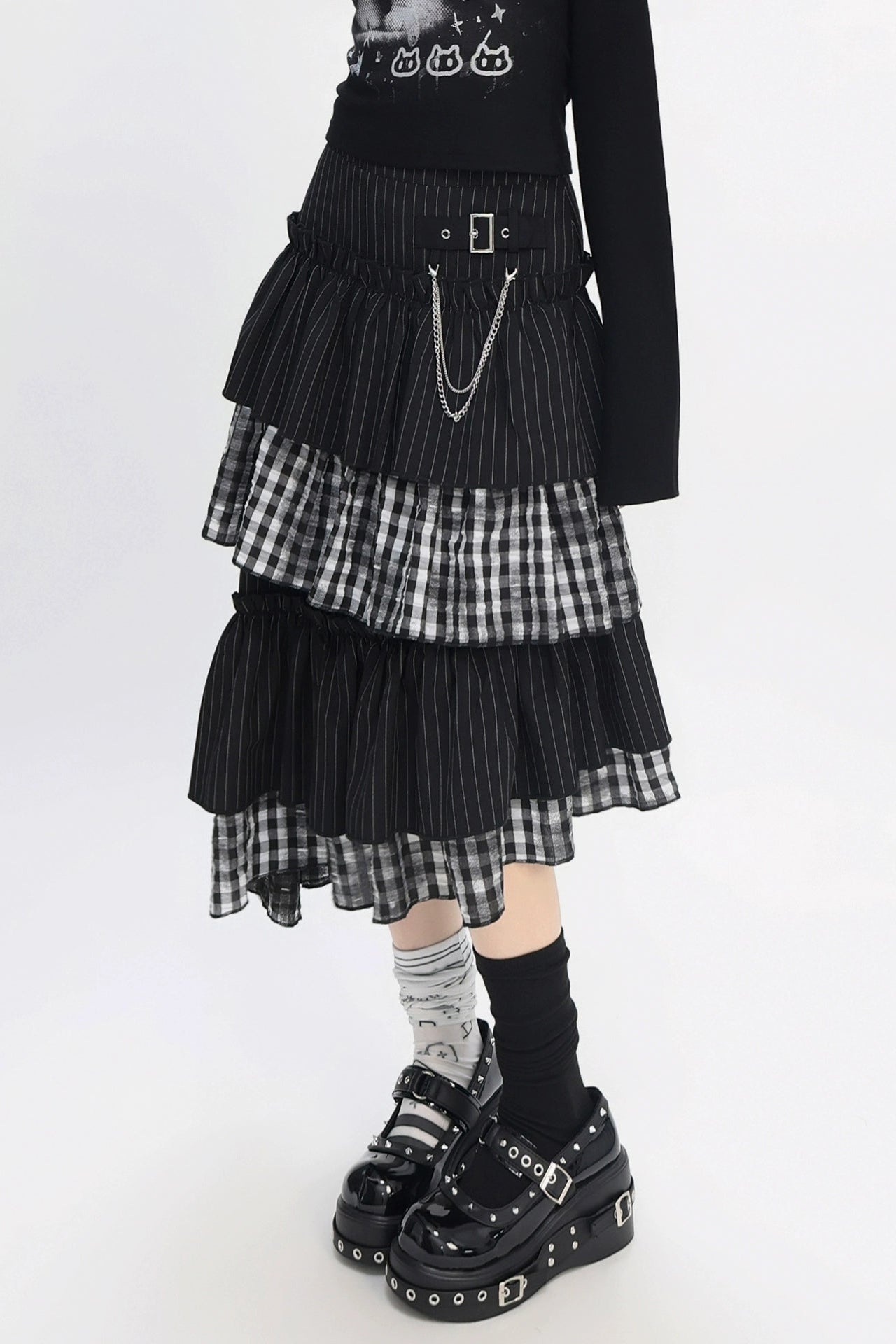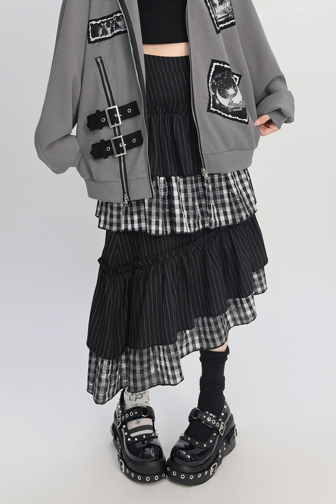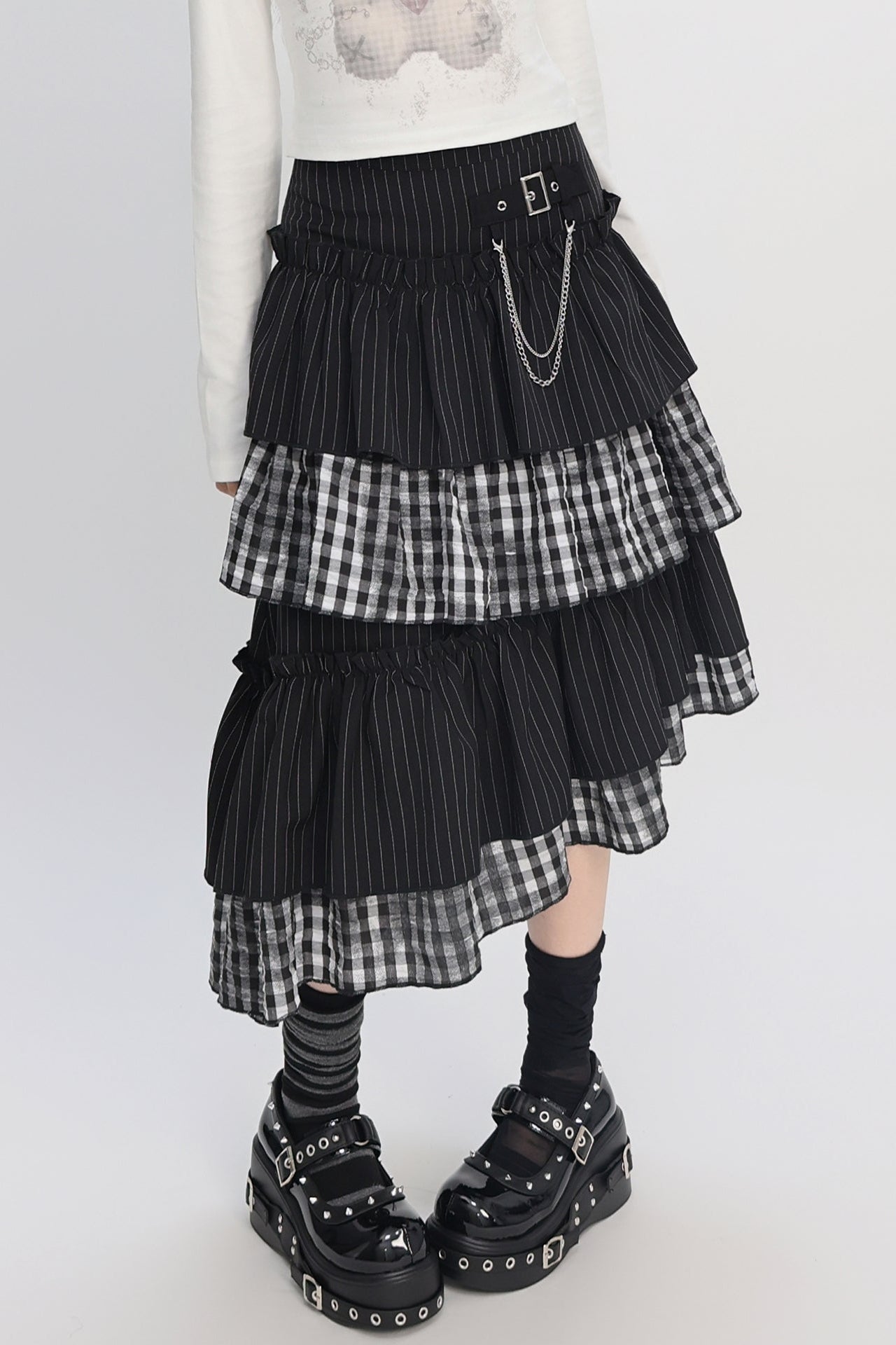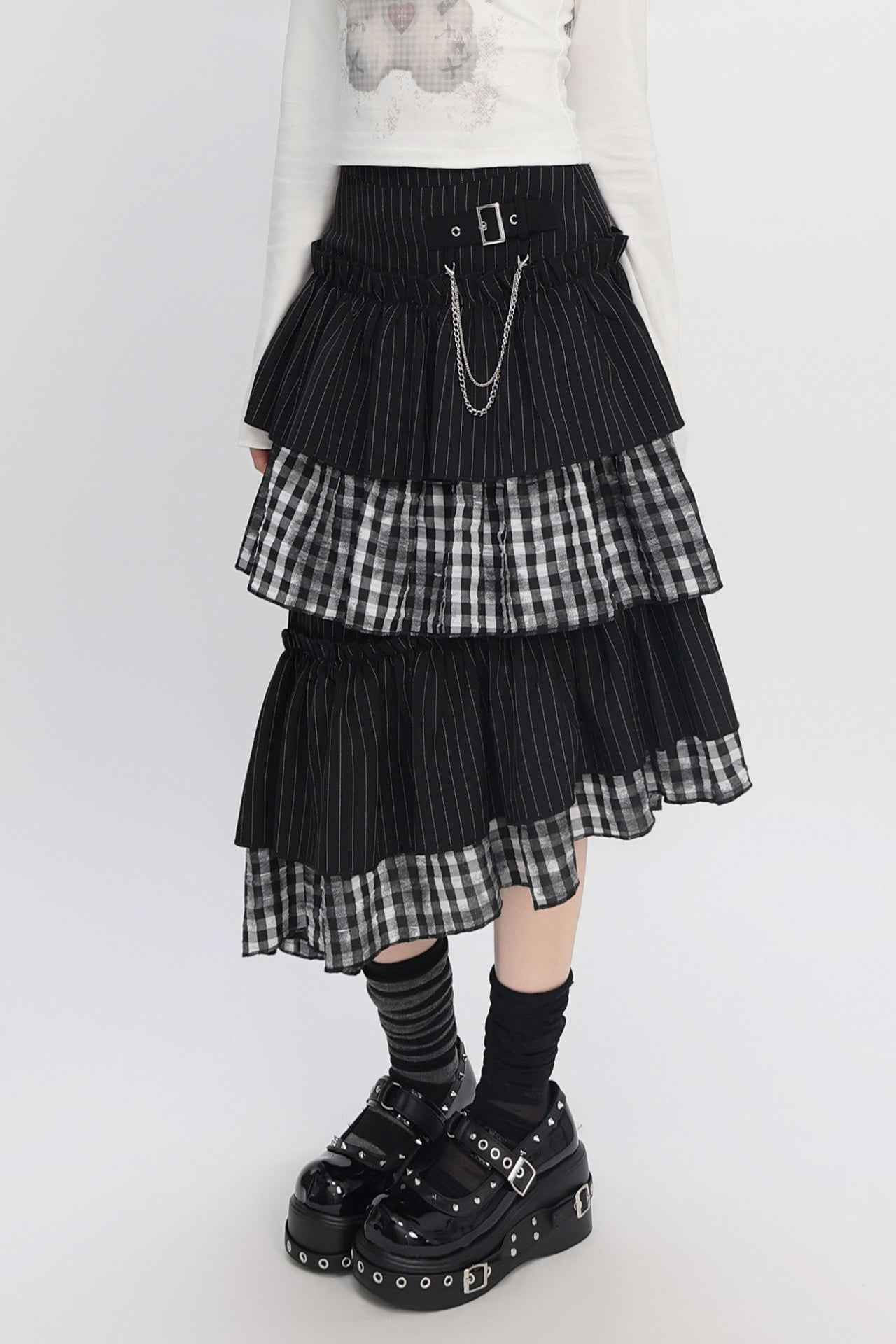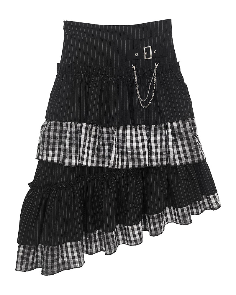 クールパッチワークアートヴィンテージストライプスカート