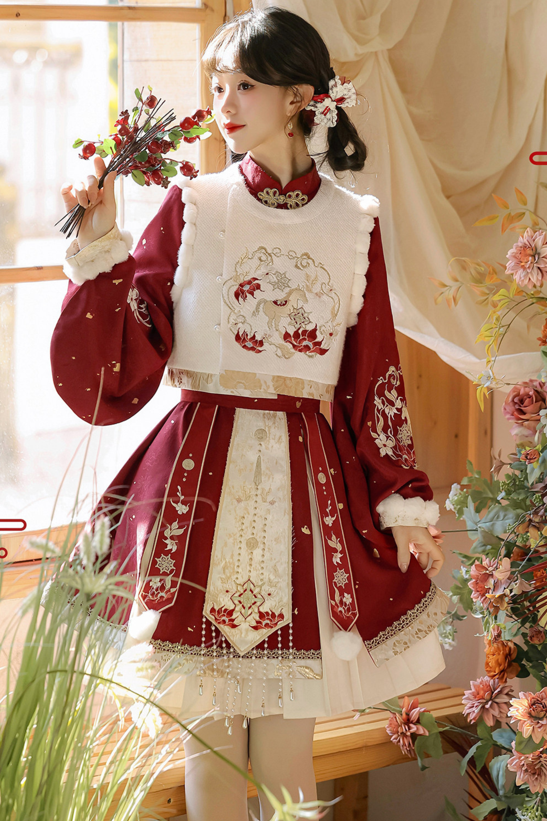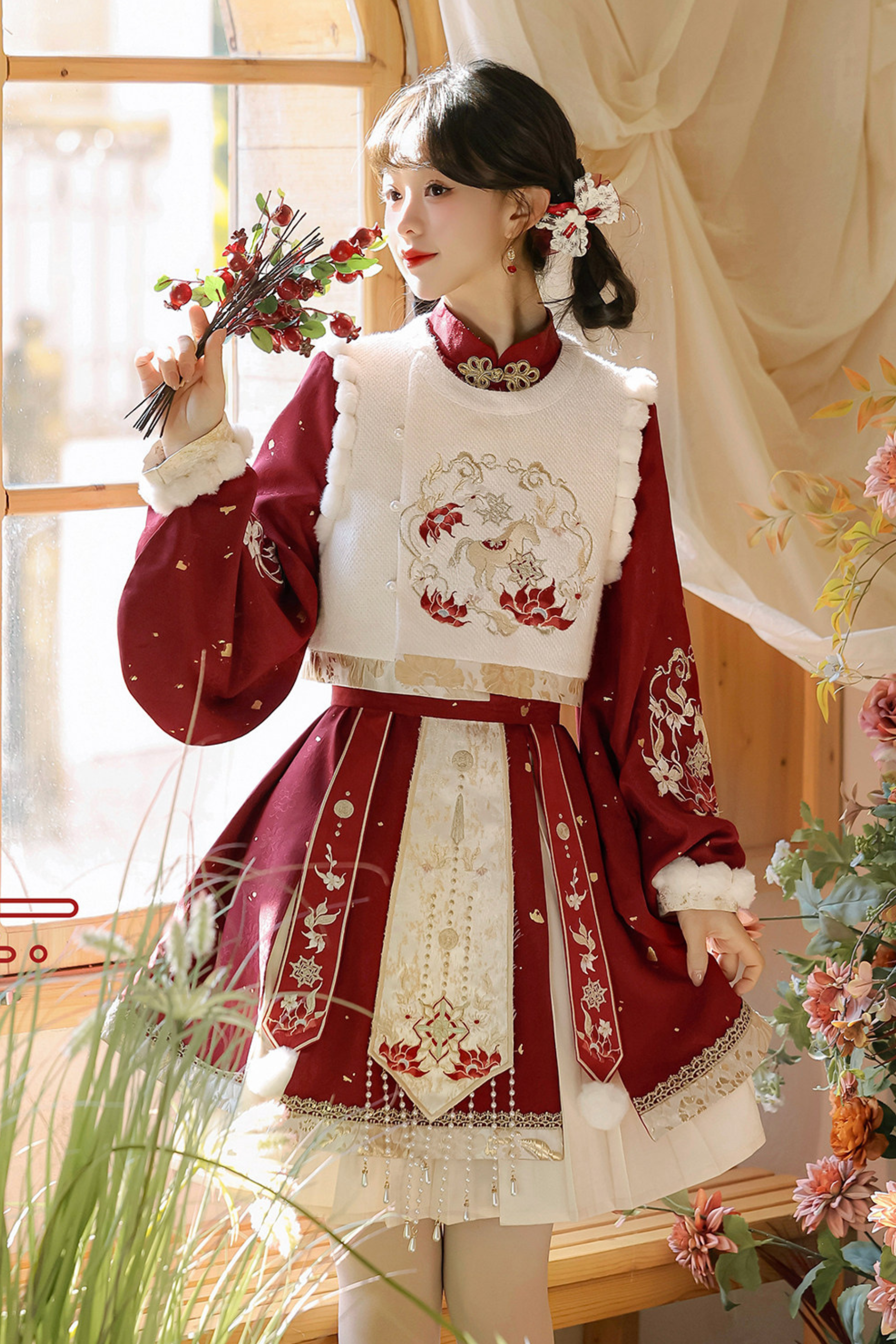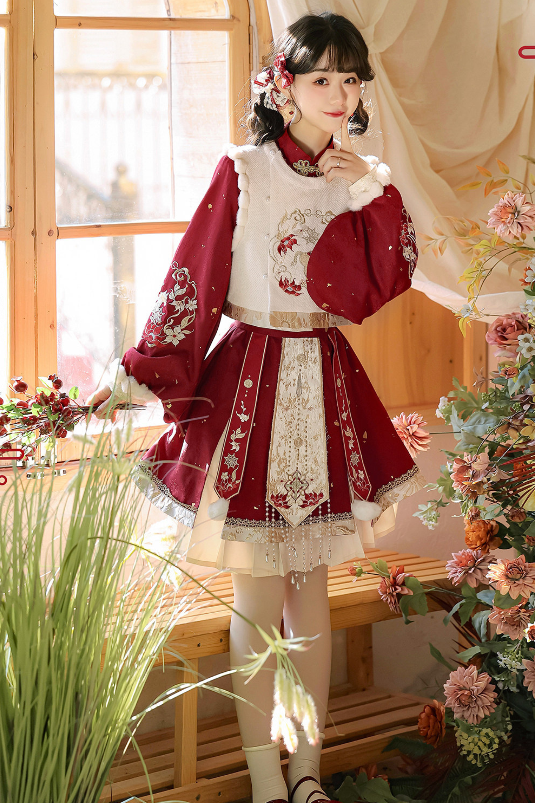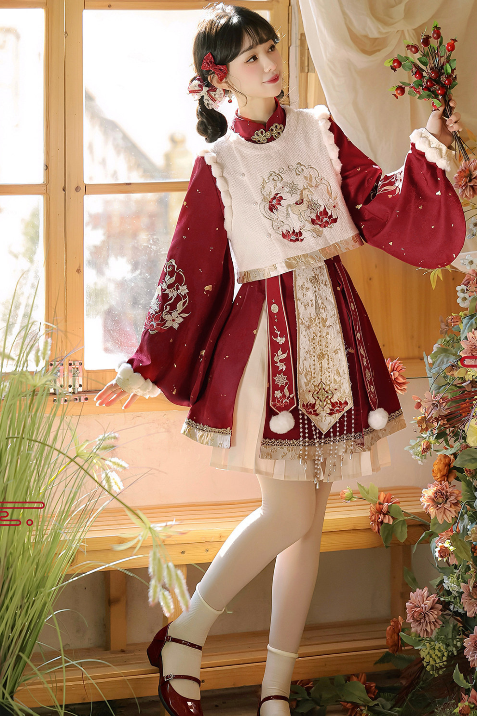 ❤チャイナロリータレッドドレス+スカート+ベスト❤