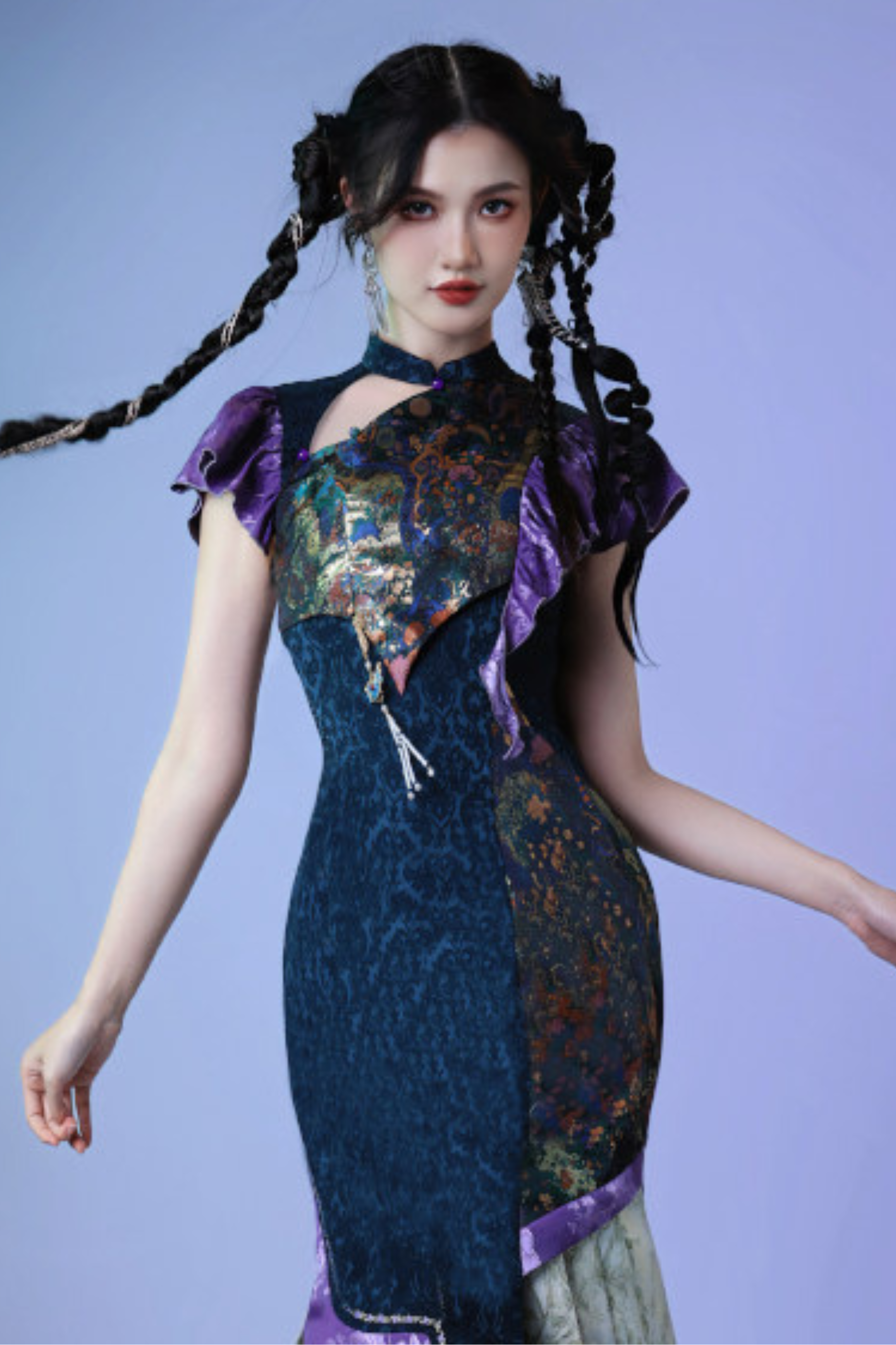カラフルウィーブプリーツチャイナドレス