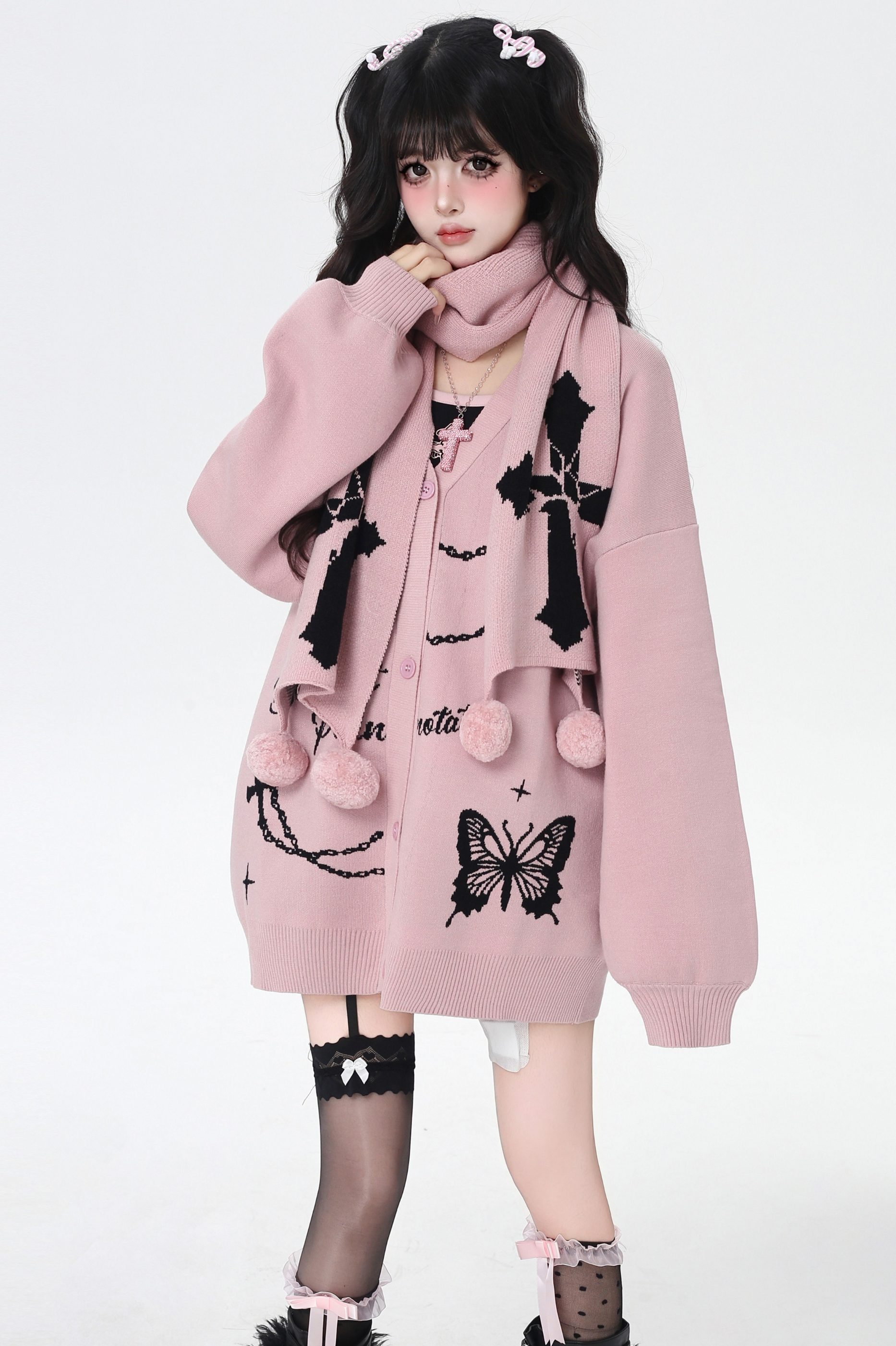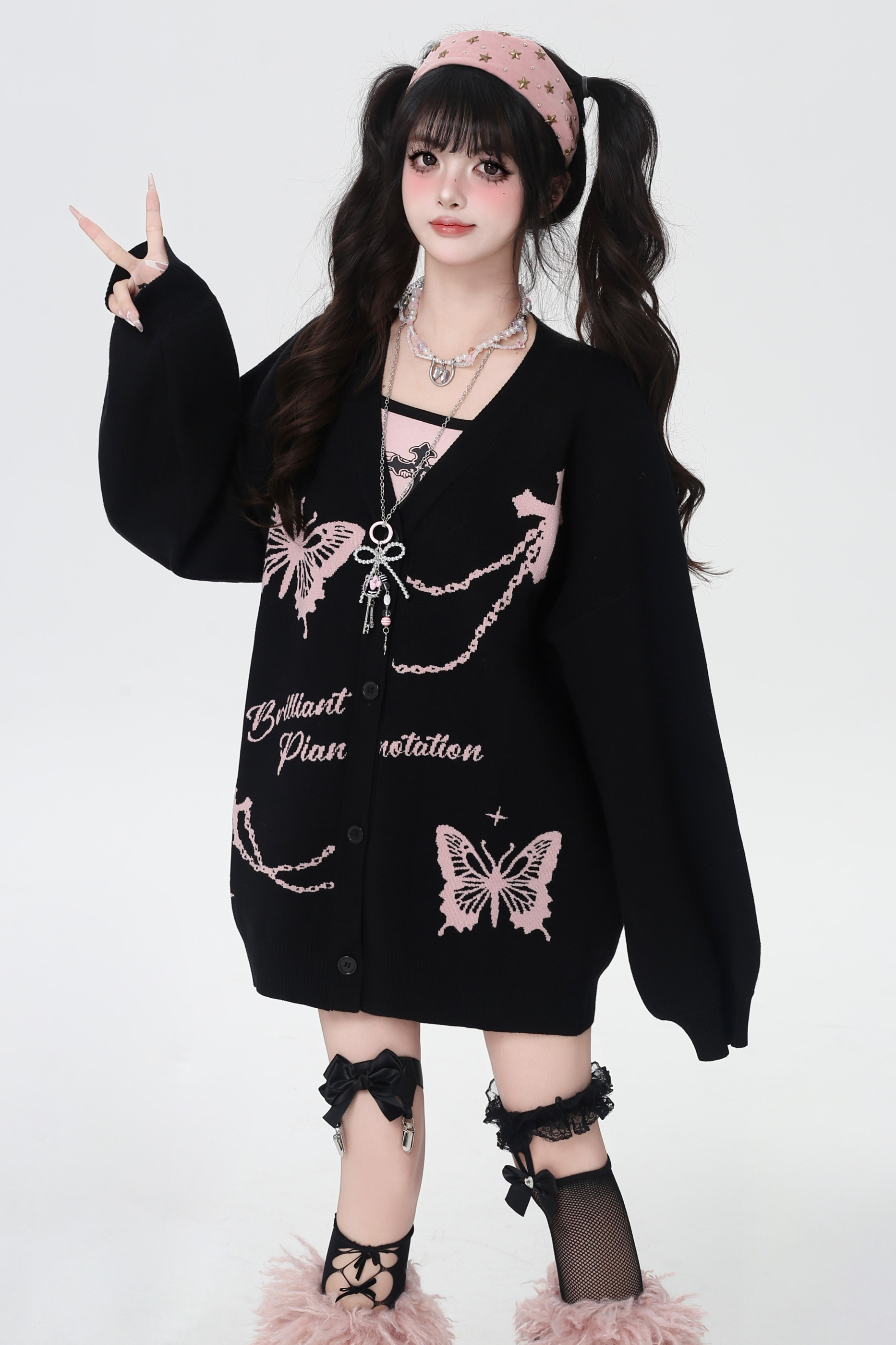 バタフライルーズデザインセーターカーディガン