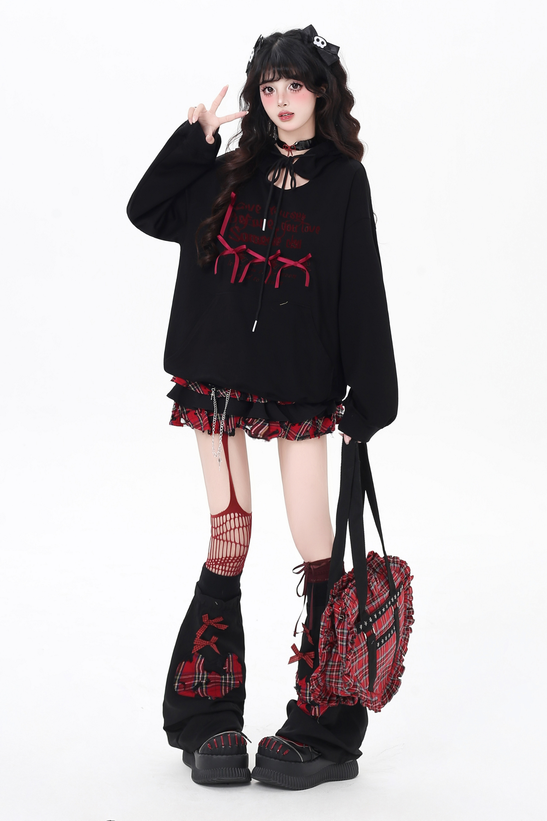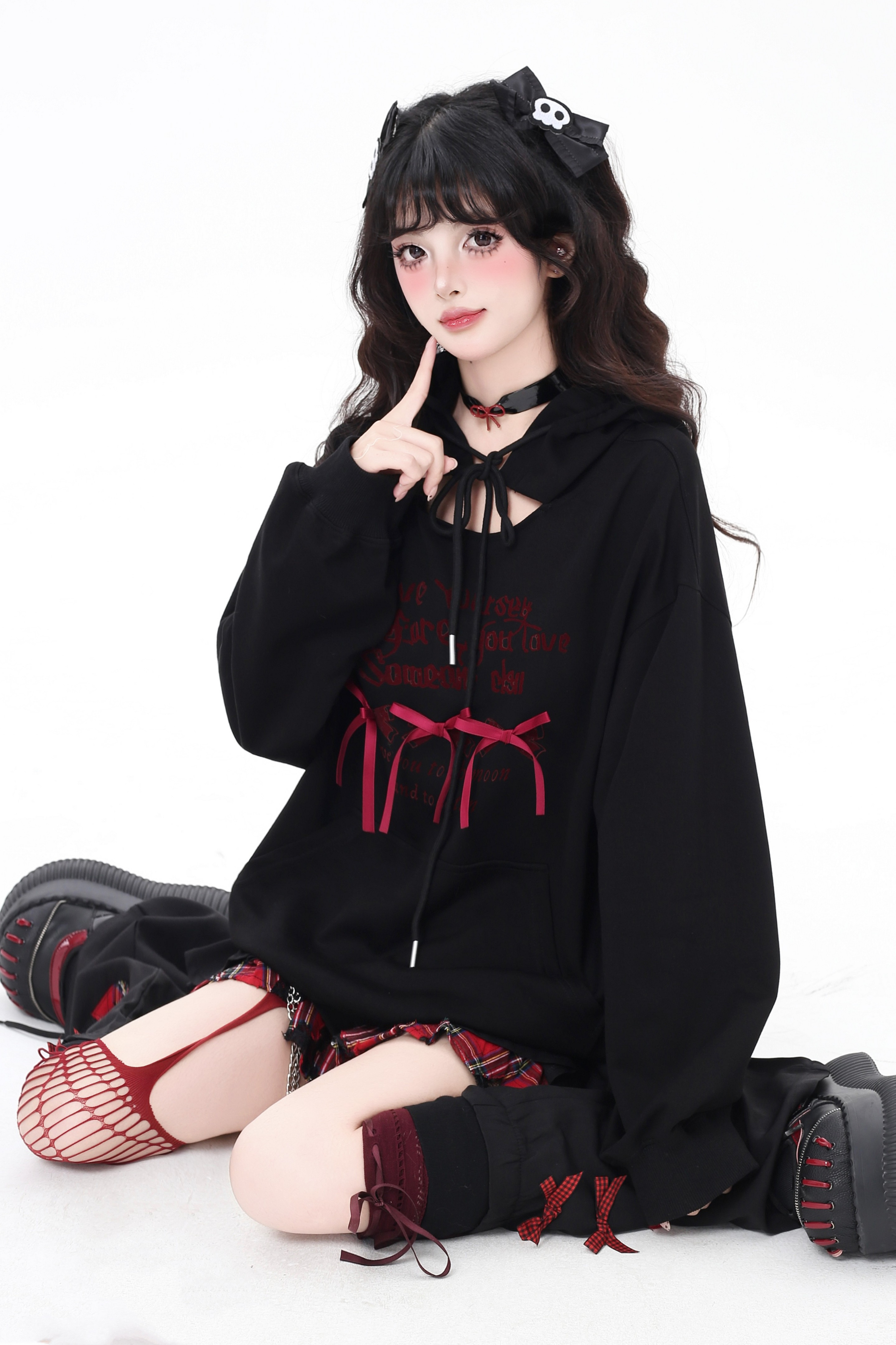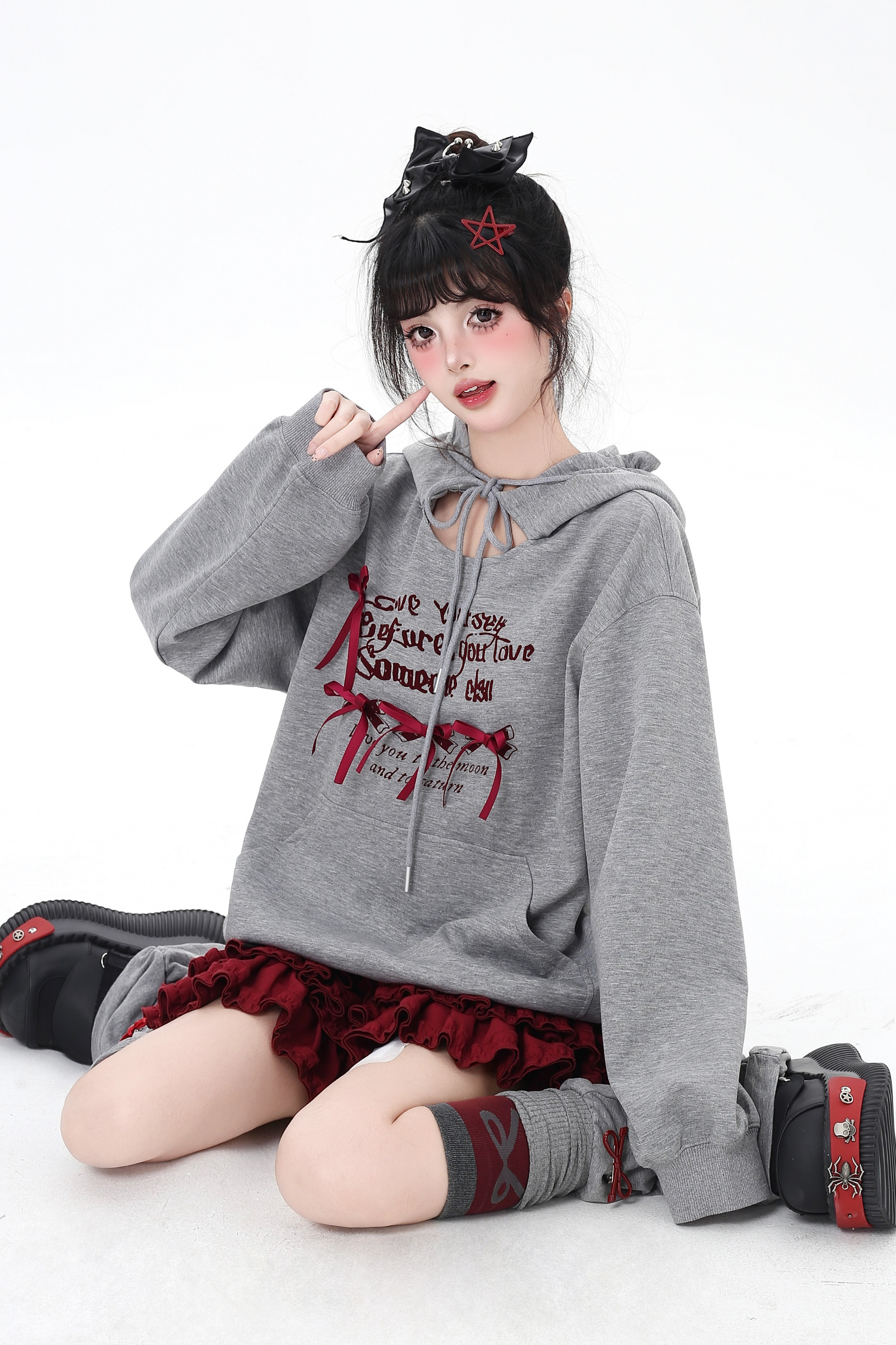 カットアウトリボンフードパーカー