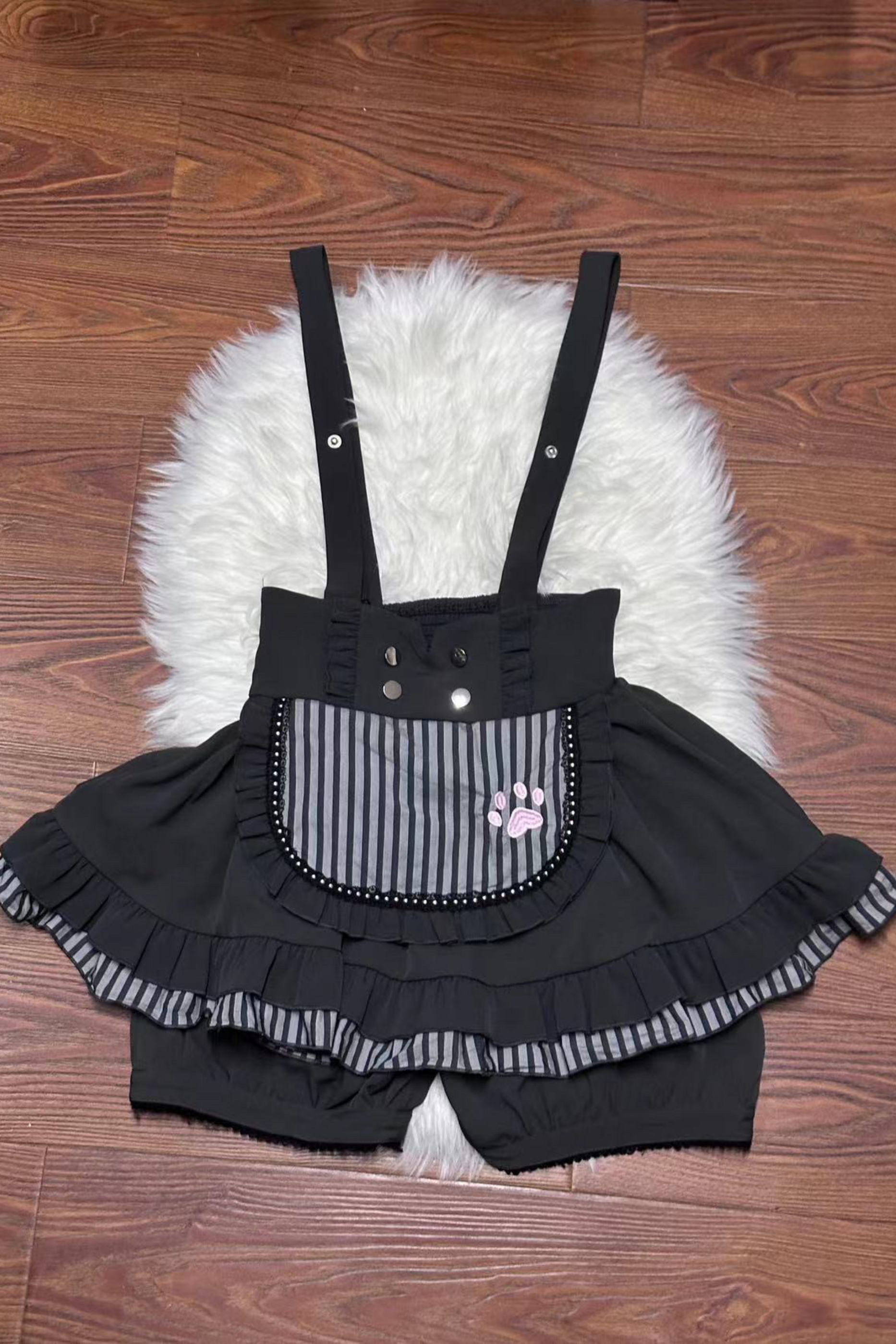 ❤キュートキャットパフスリーブトップス+サスペンダースカート+パンツ+ハット❤