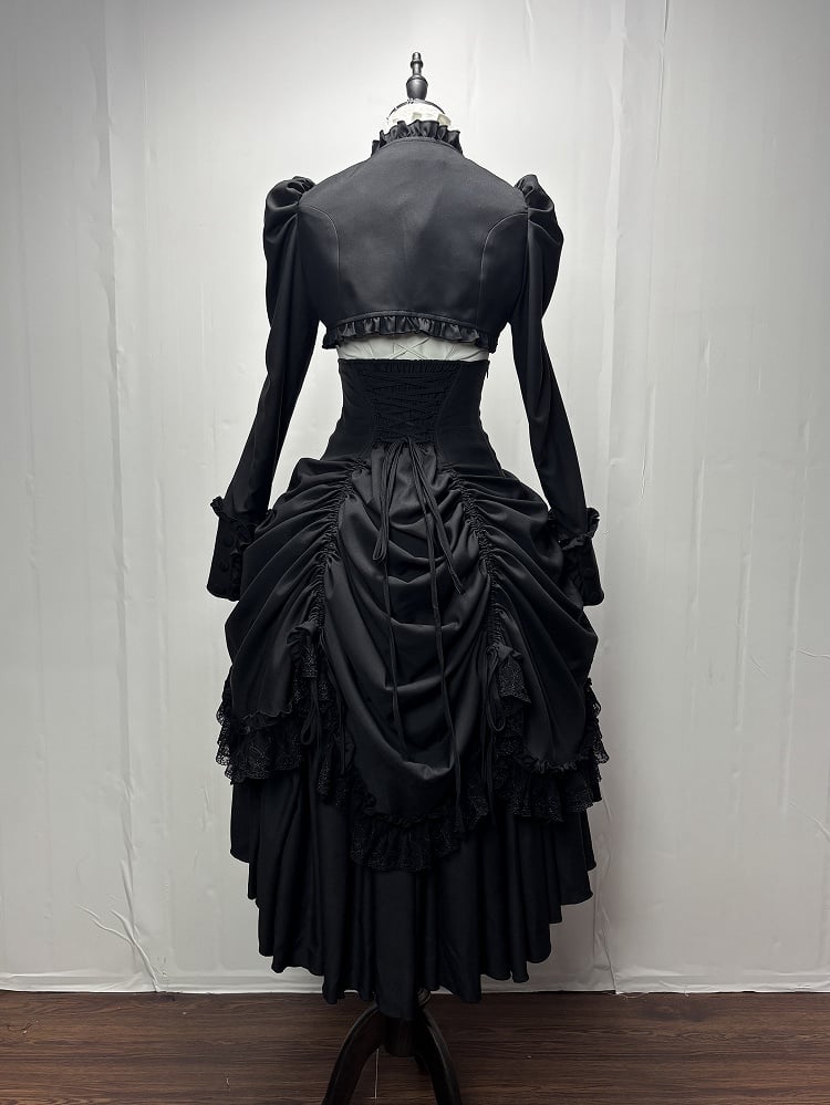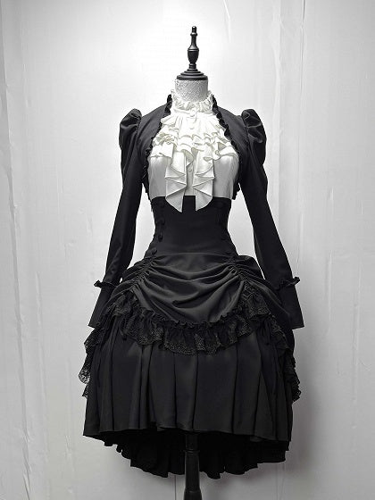 【3月6日予約締切】ダークゴシックブラックショートジャケット+ホワイトシャツ+ローズリボン