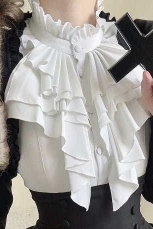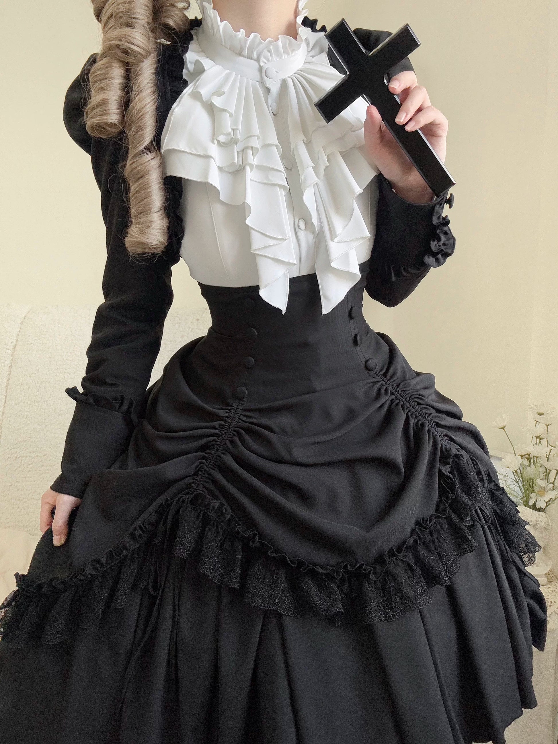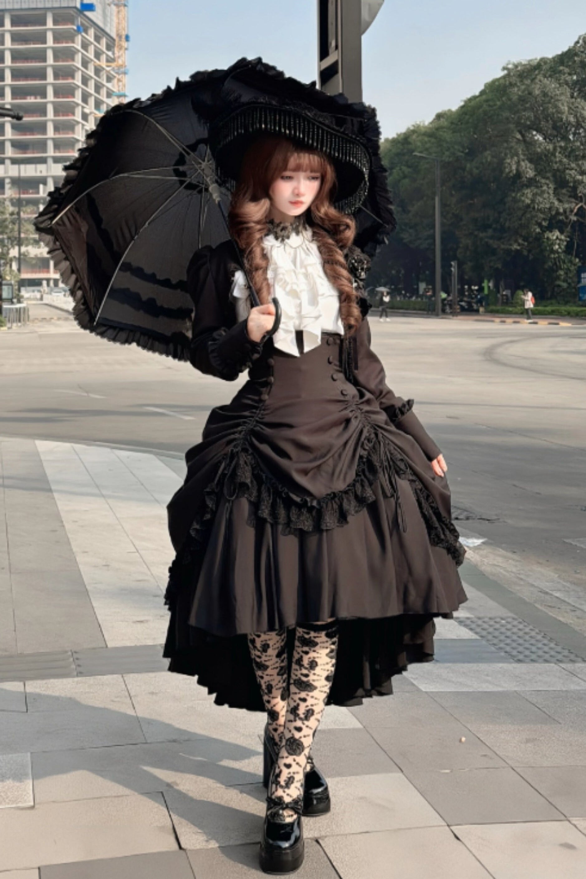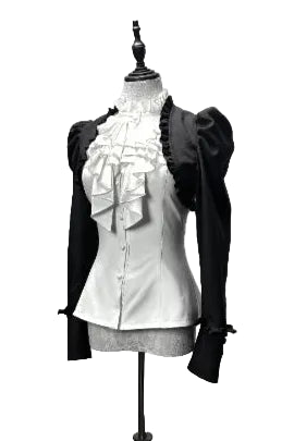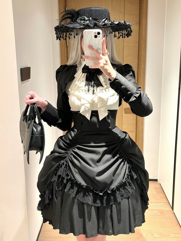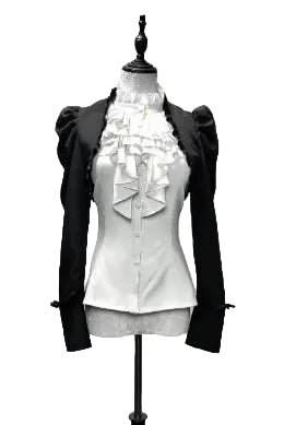 ❤︎【3月6日予約締切】ダークゴシックブラックショートジャケット+ホワイトシャツ+ローズリボン❤︎ ⚠️人気商品のためお届けに3ヶ月ほどかかってしまう場合がございます