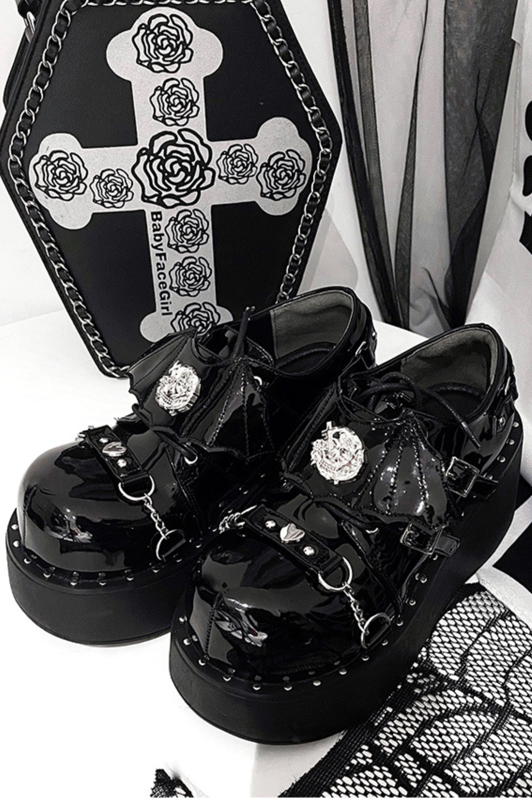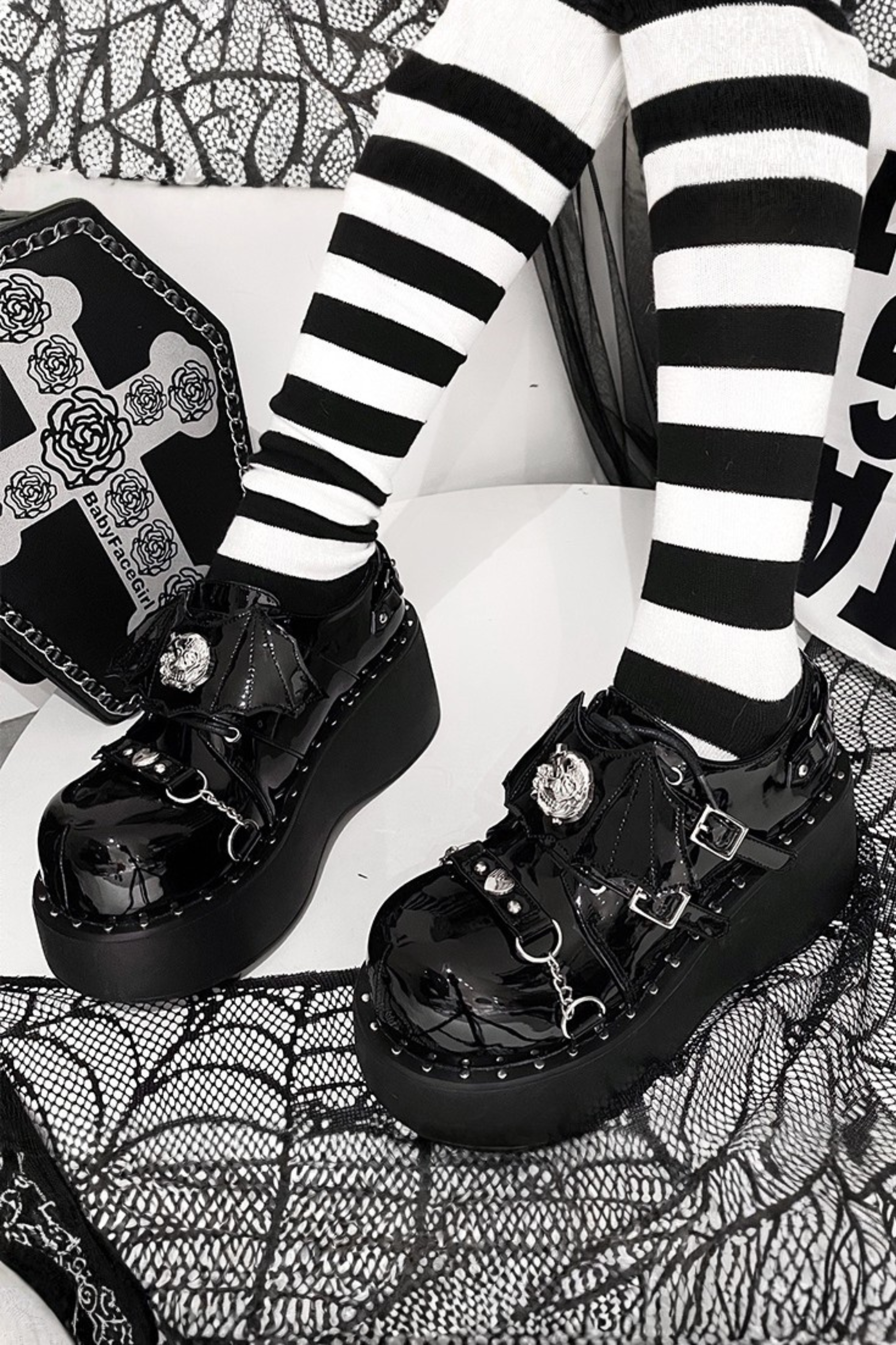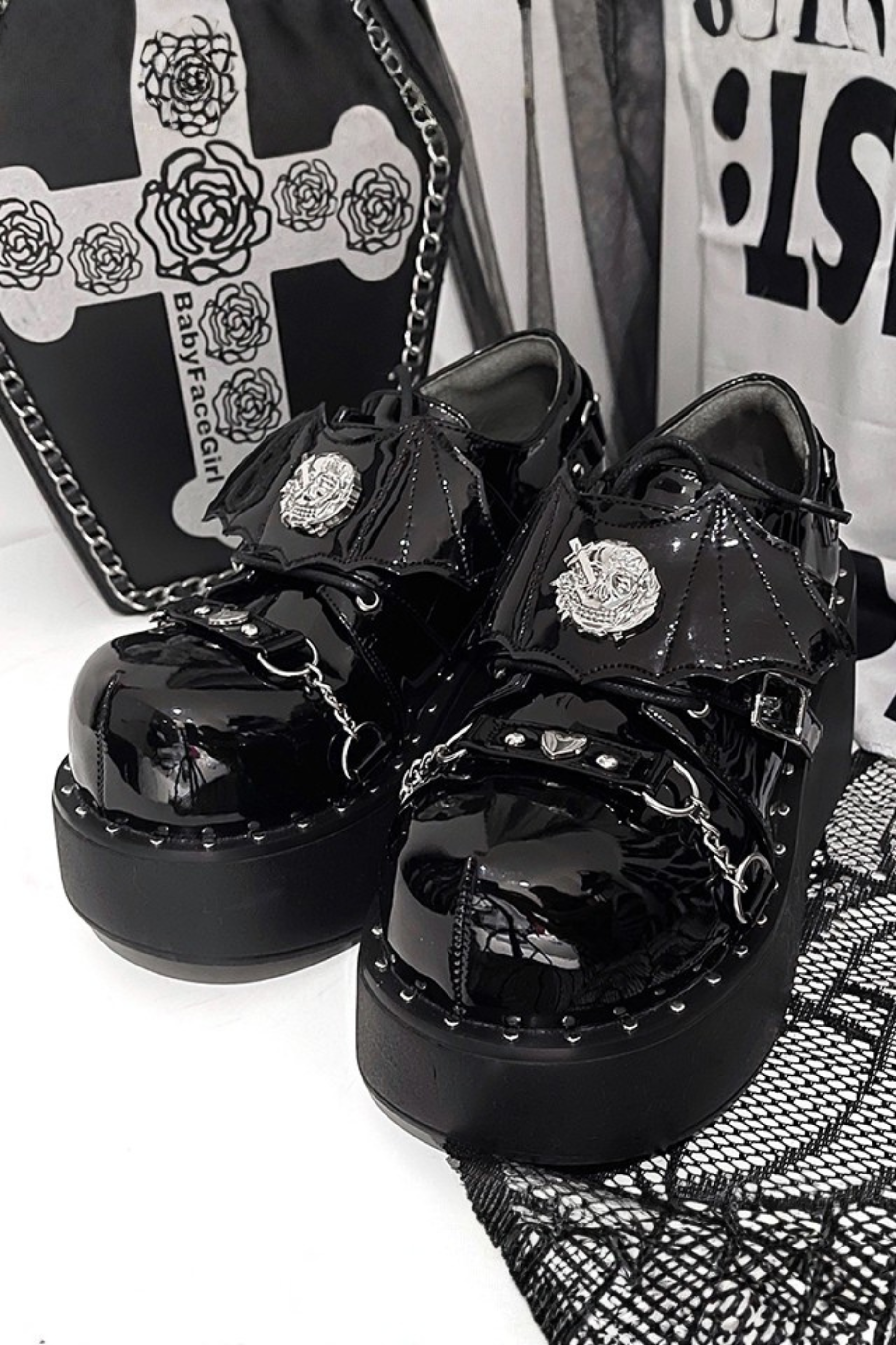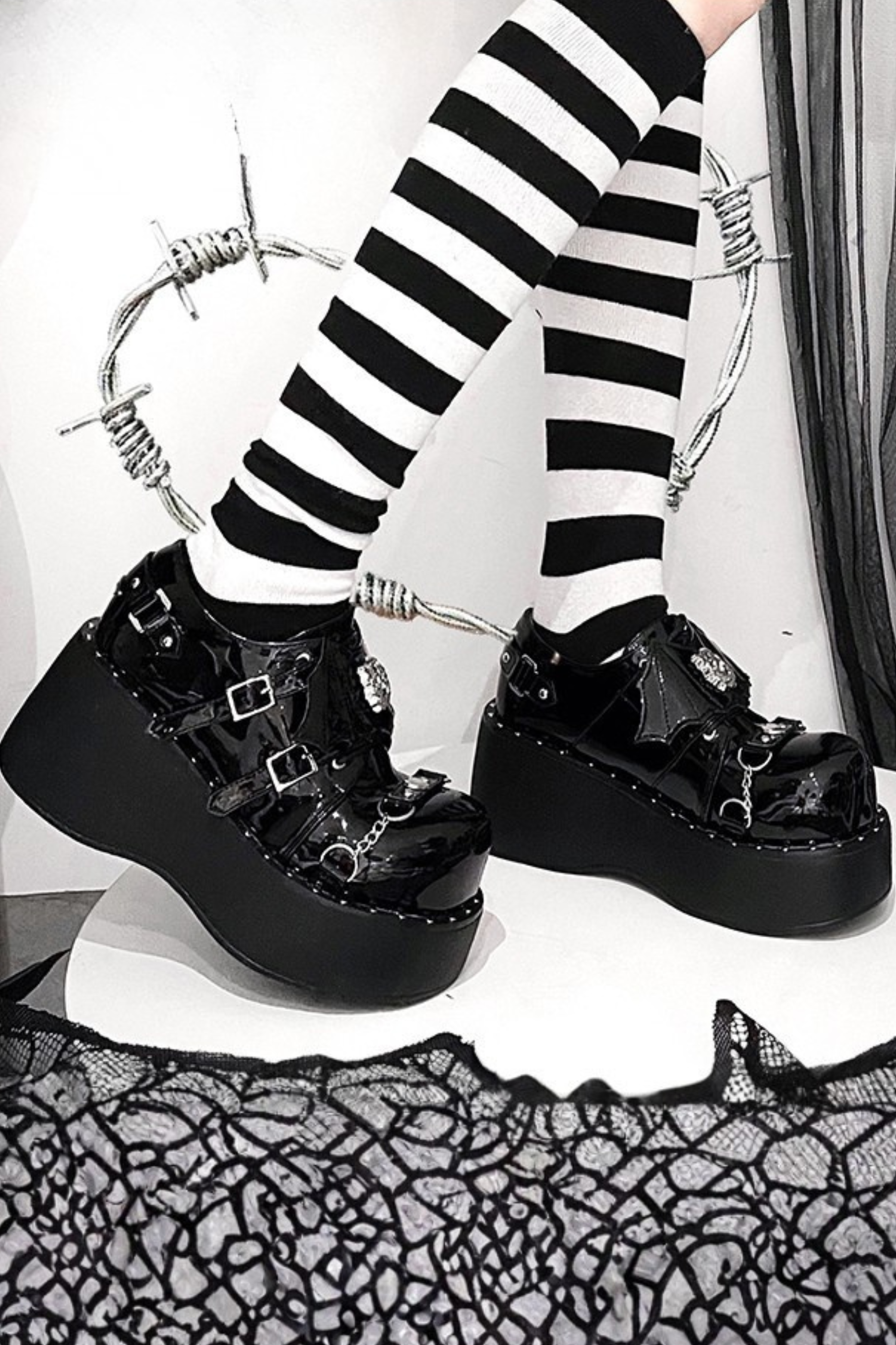 パンクプラットフォームダークシューズ