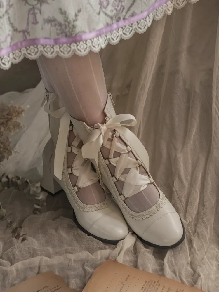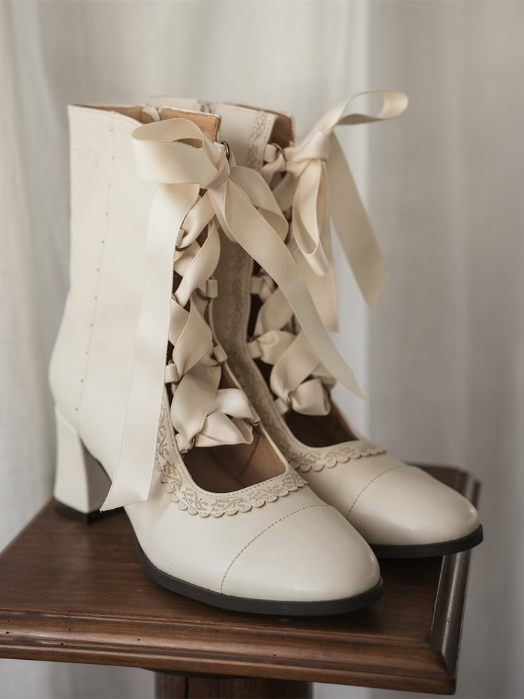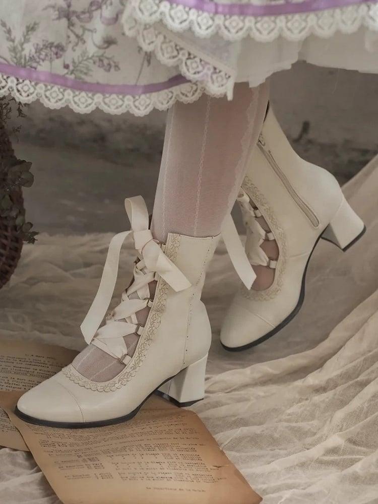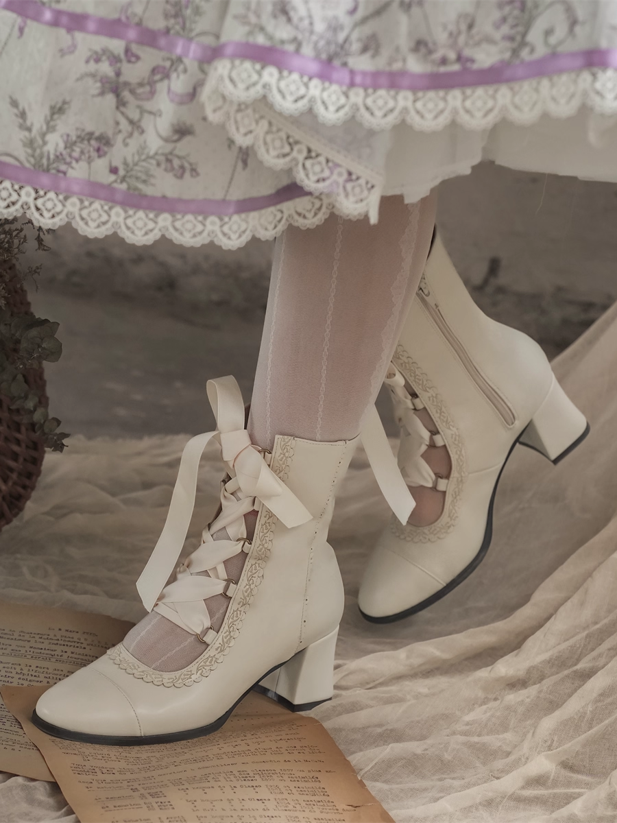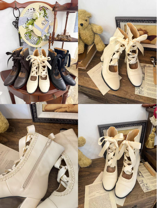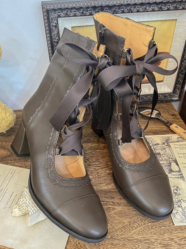 ❤︎【12月26日予約締切】エレガントアンティークロリータレースアップブーツ❤︎ ⚠️人気商品のためお届けに2-3ヶ月ほどかかってしまう場合がございます