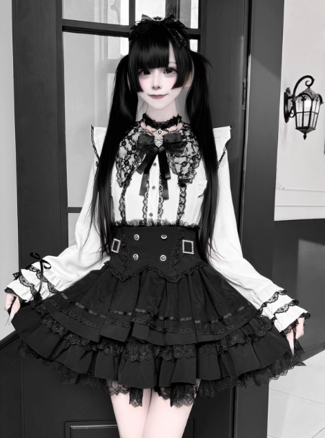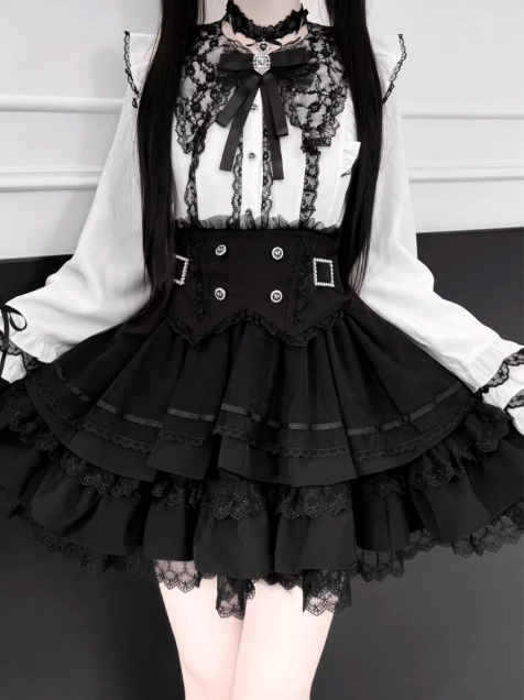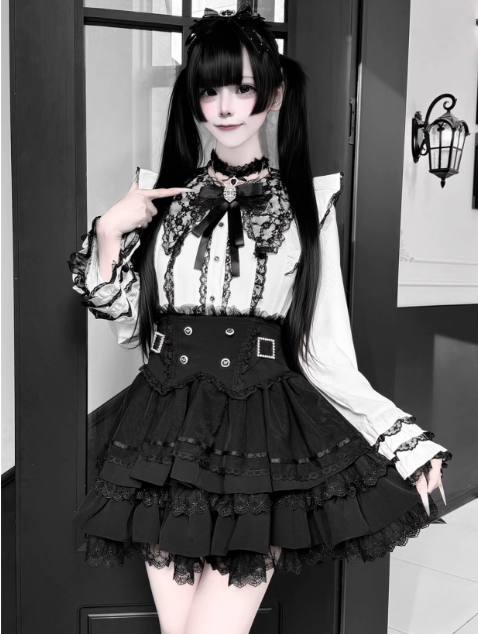 セットアップ内容【シャツ+スカート+胸元のジュエルリボンアクセサリー】