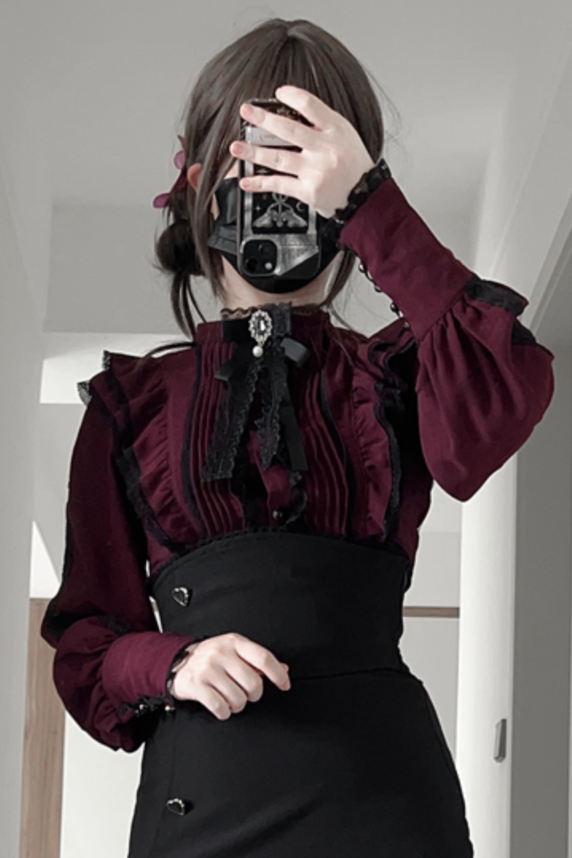 シャツにはジュエルブラックリボンが付いています