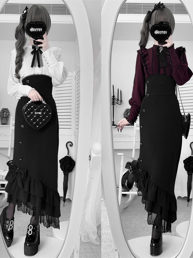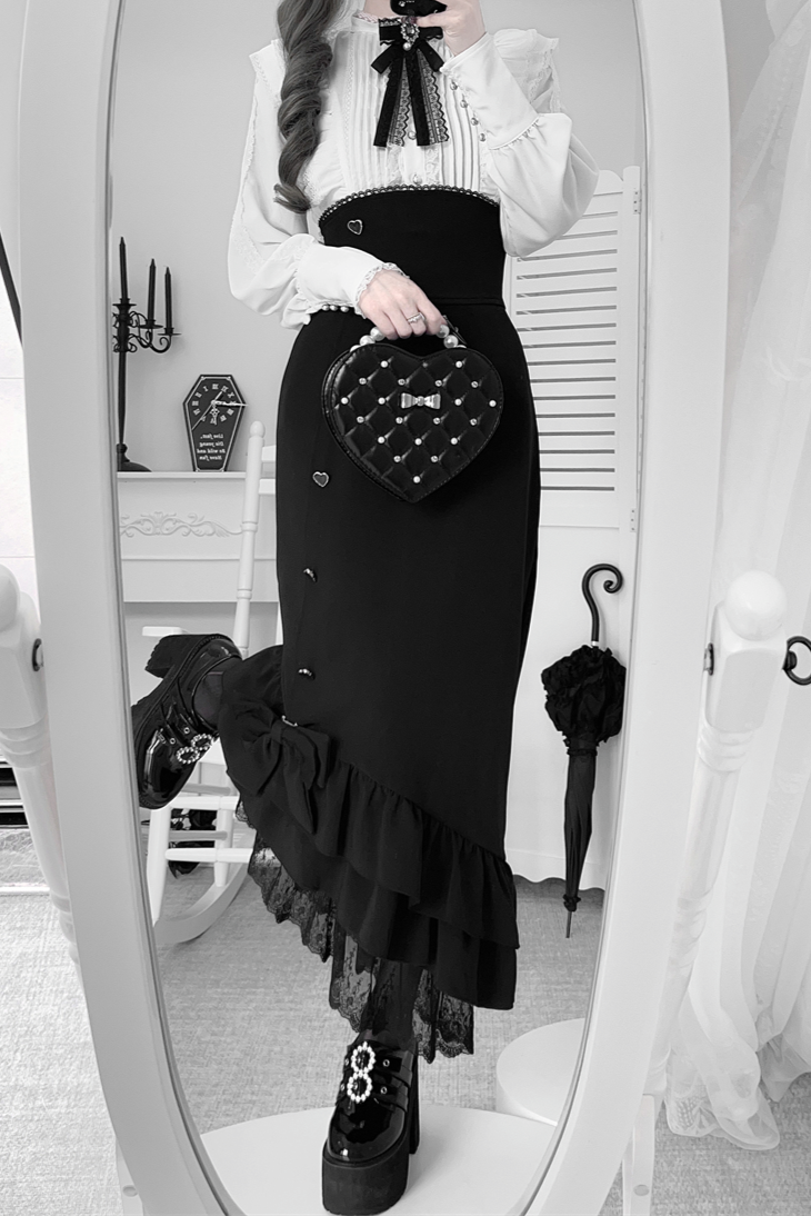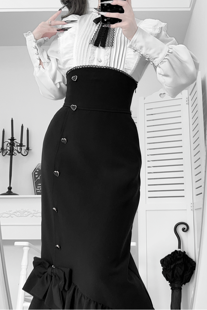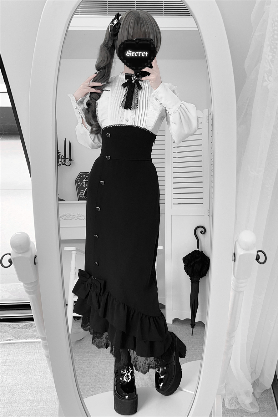 ❤︎【数量限定】Heartbeat Love Songクリアエレガントリボンシャツ+フィッシュテールスカートセット❤︎ ⚠️人気商品のためお届けに2-3ヶ月ほどかかってしまう場合がございます