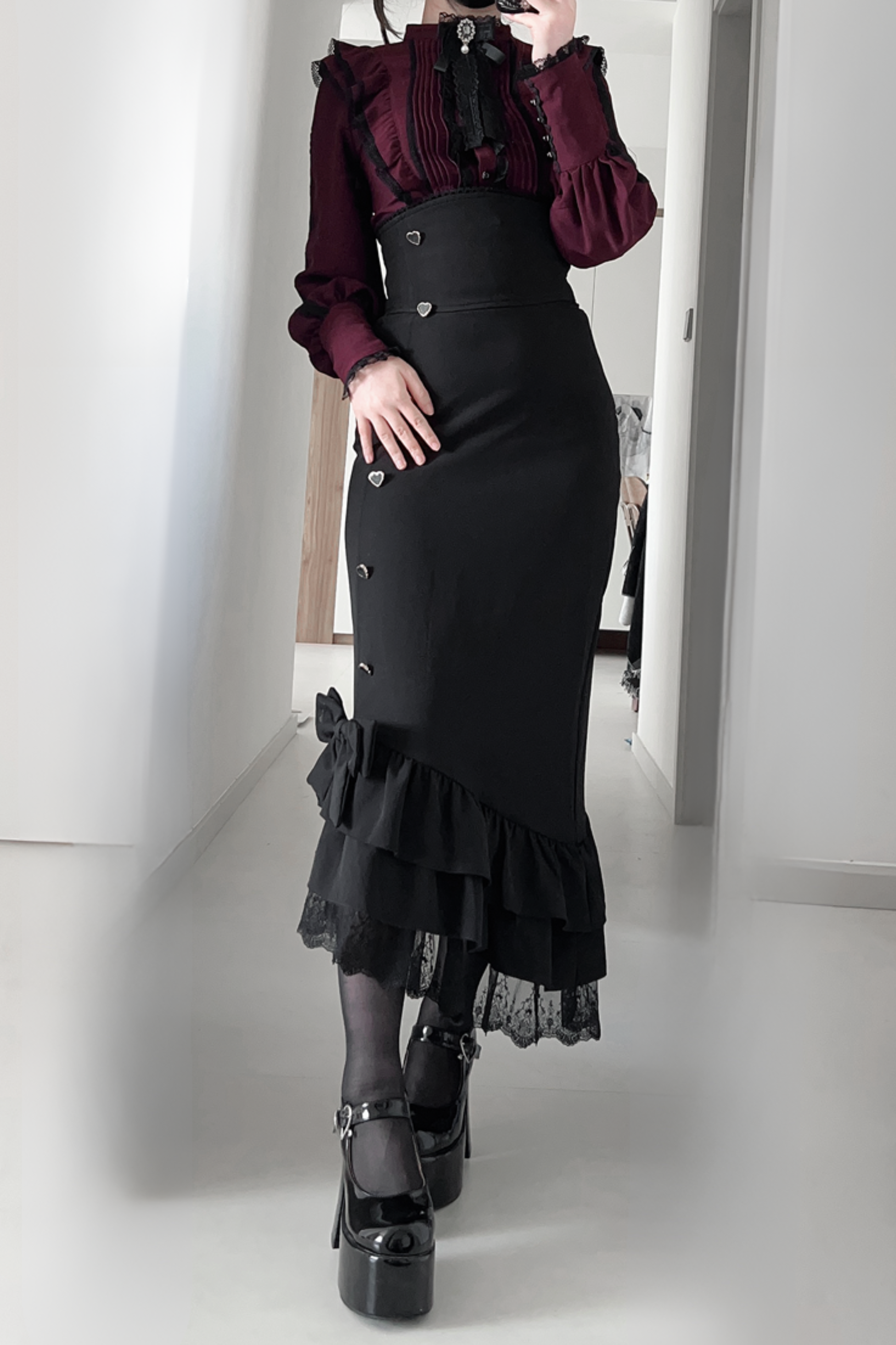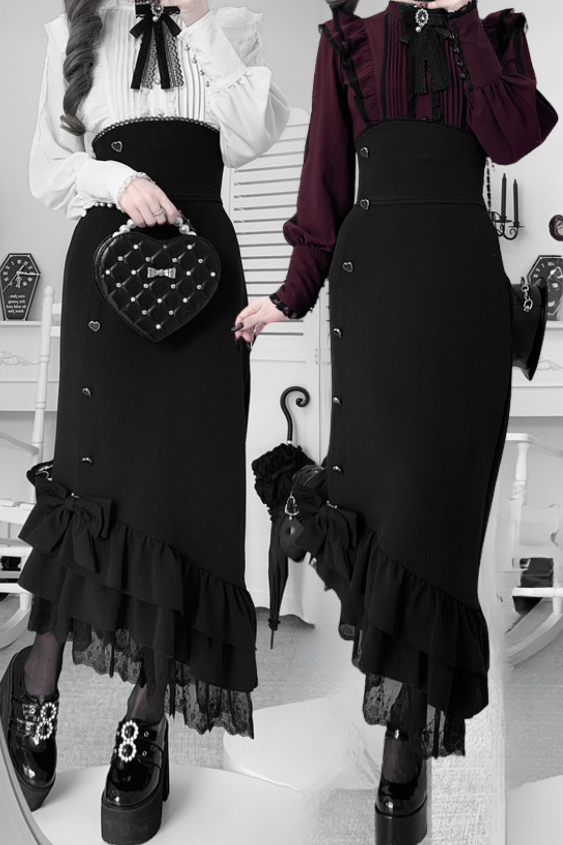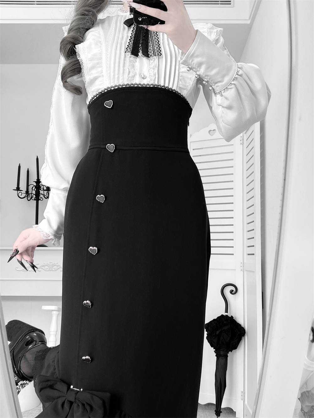 ❤︎【数量限定】Heartbeat Love Songクリアエレガントリボンシャツ+フィッシュテールスカートセット❤︎ ⚠️人気商品のためお届けに2-3ヶ月ほどかかってしまう場合がございます