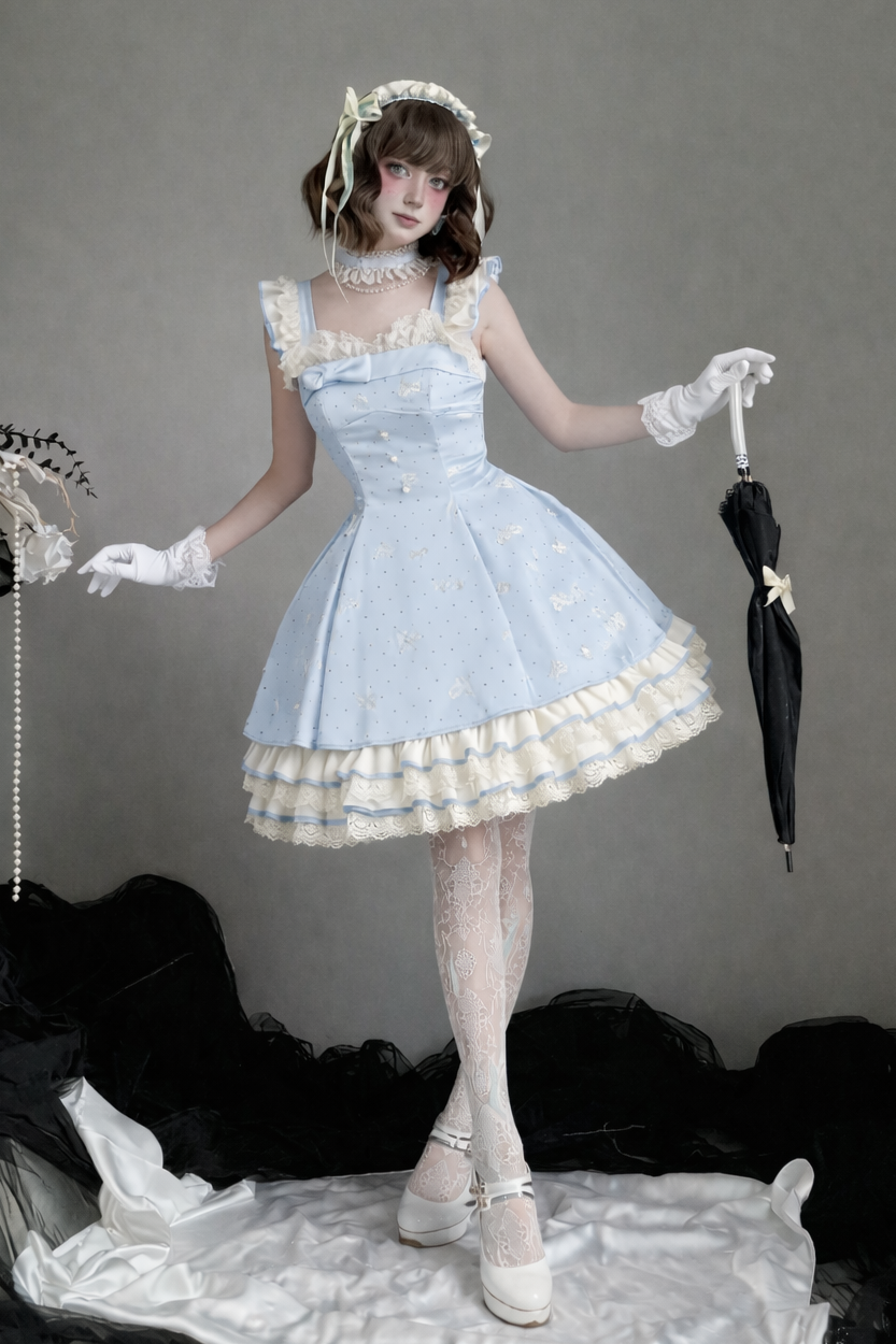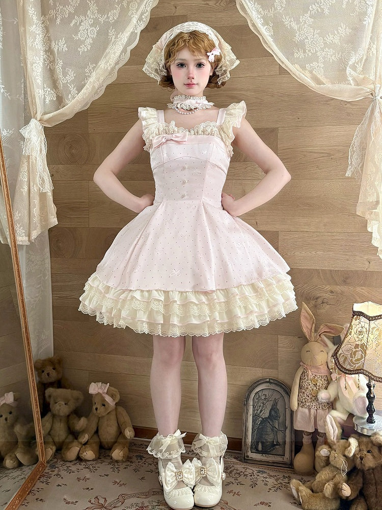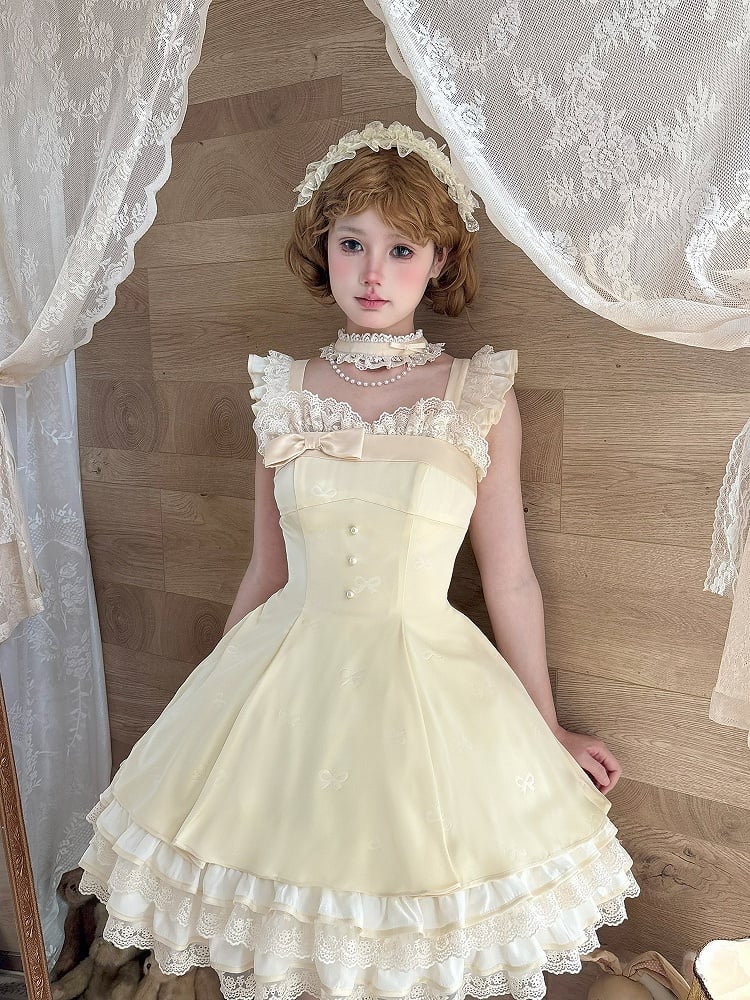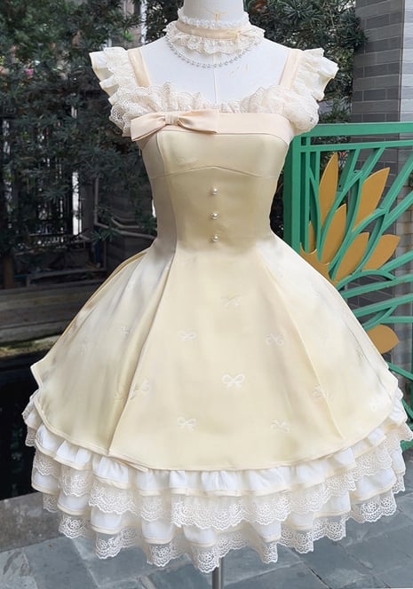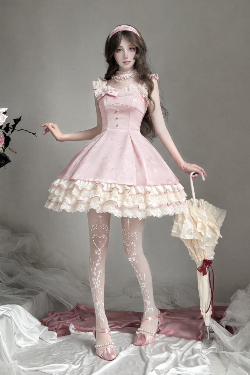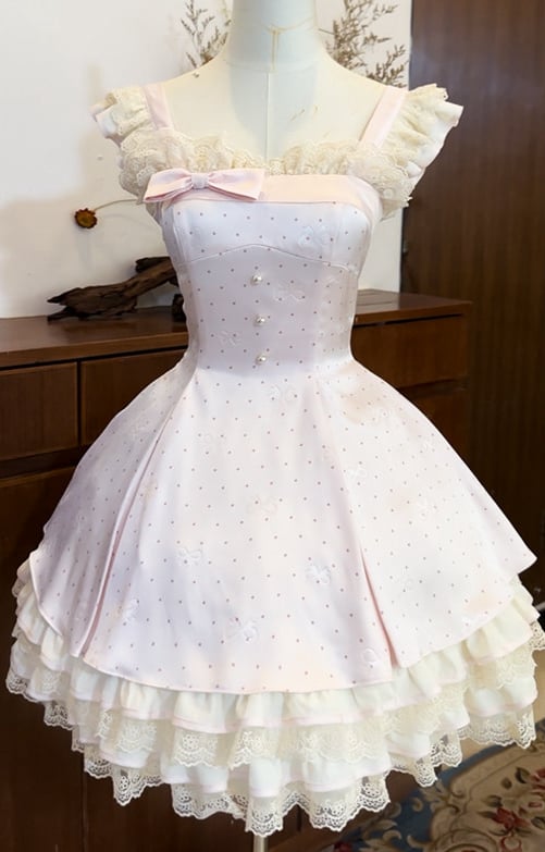 ❤︎【1月29日予約締切】エレガントスイートロリータフリルリボンサスドレス+チョーカー❤︎ ⚠️人気商品のためお届けに4ヶ月ほどかかってしまう場合がございます