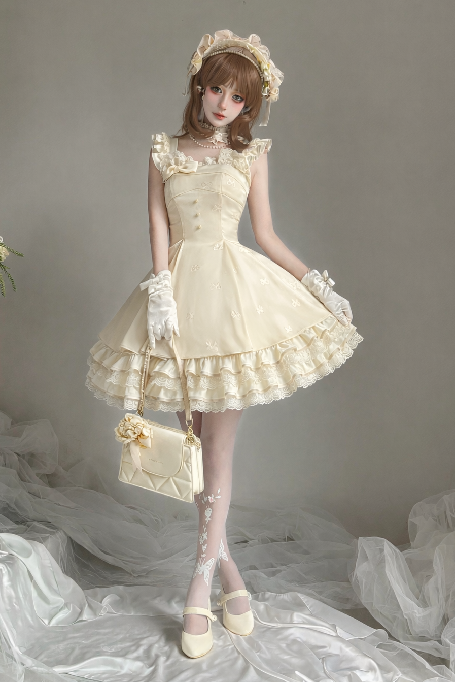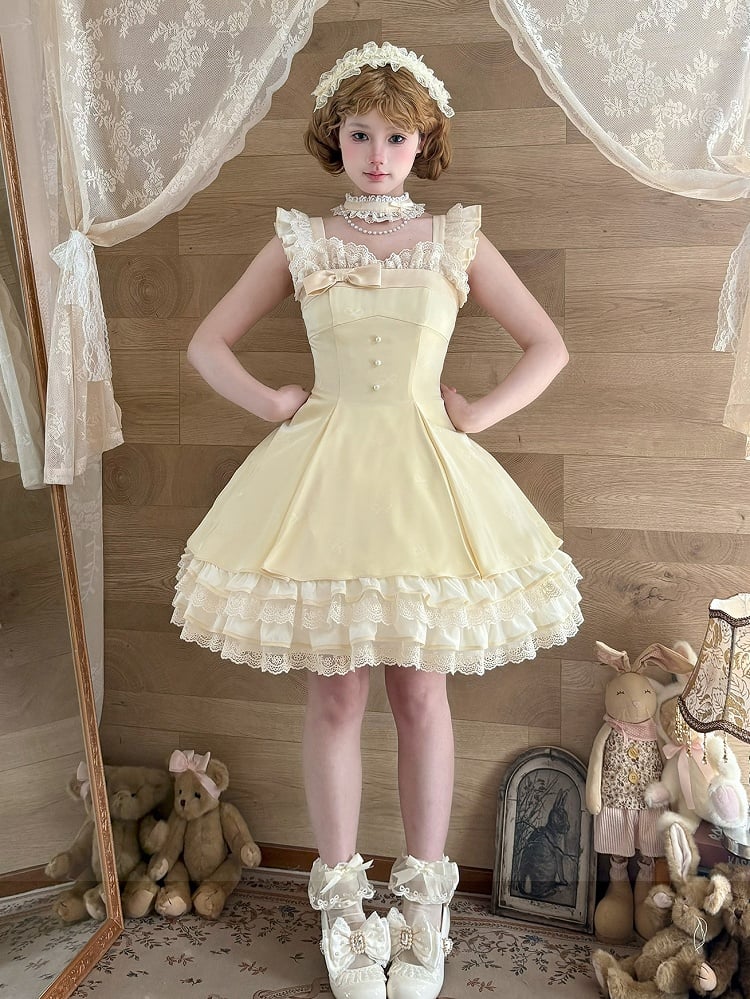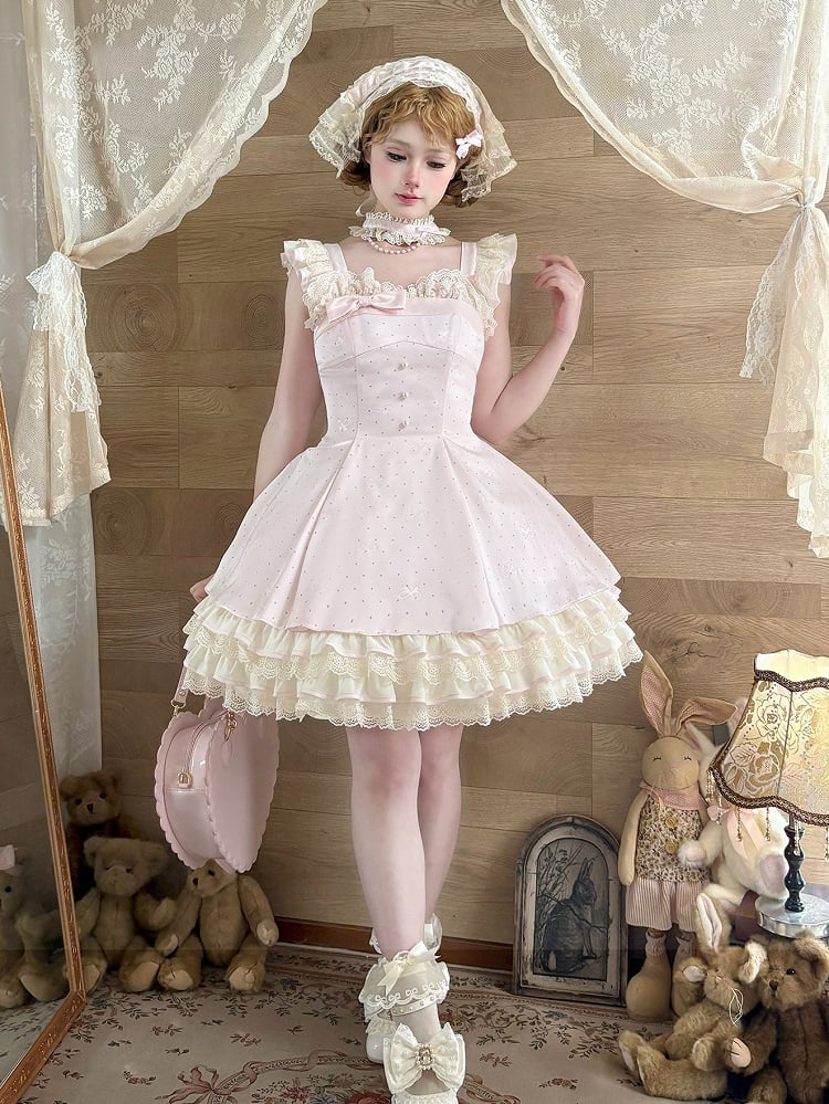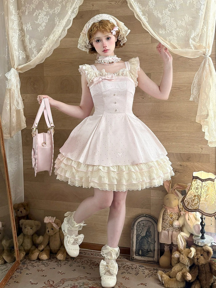 ❤︎【1月29日予約締切】エレガントスイートロリータフリルリボンサスドレス+チョーカー❤︎ ⚠️人気商品のためお届けに4ヶ月ほどかかってしまう場合がございます