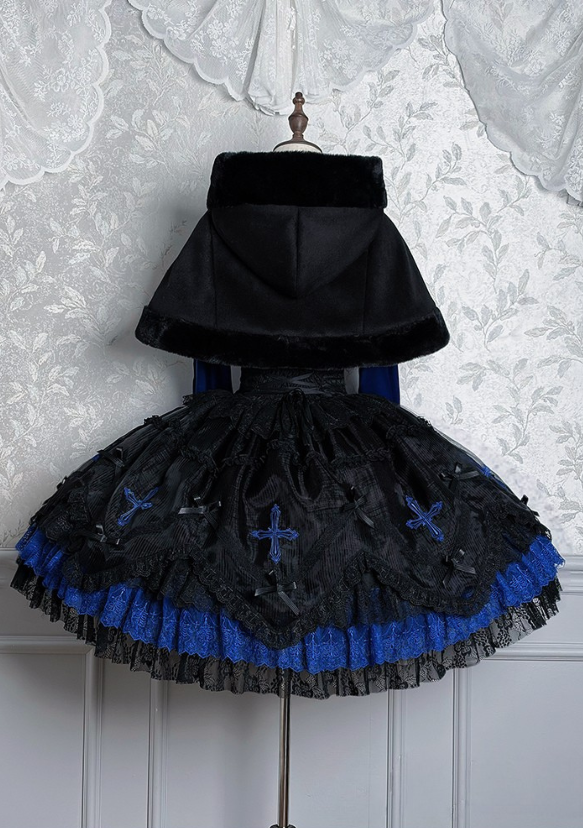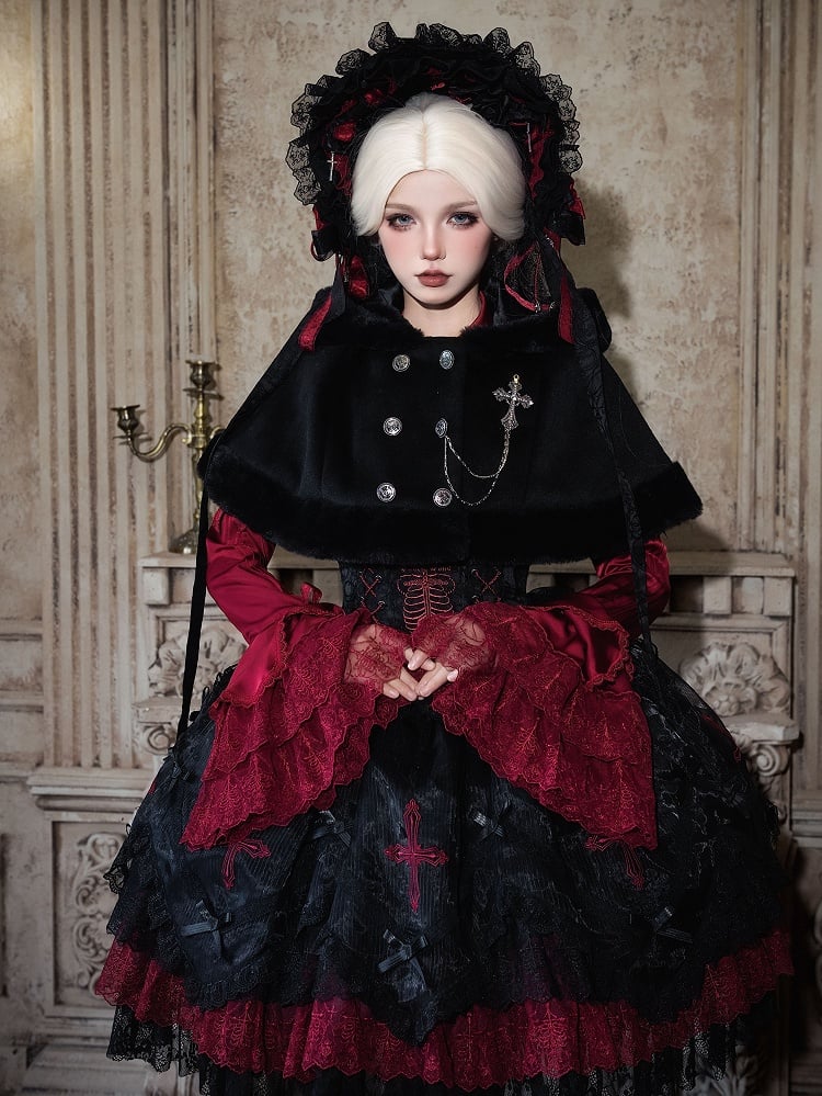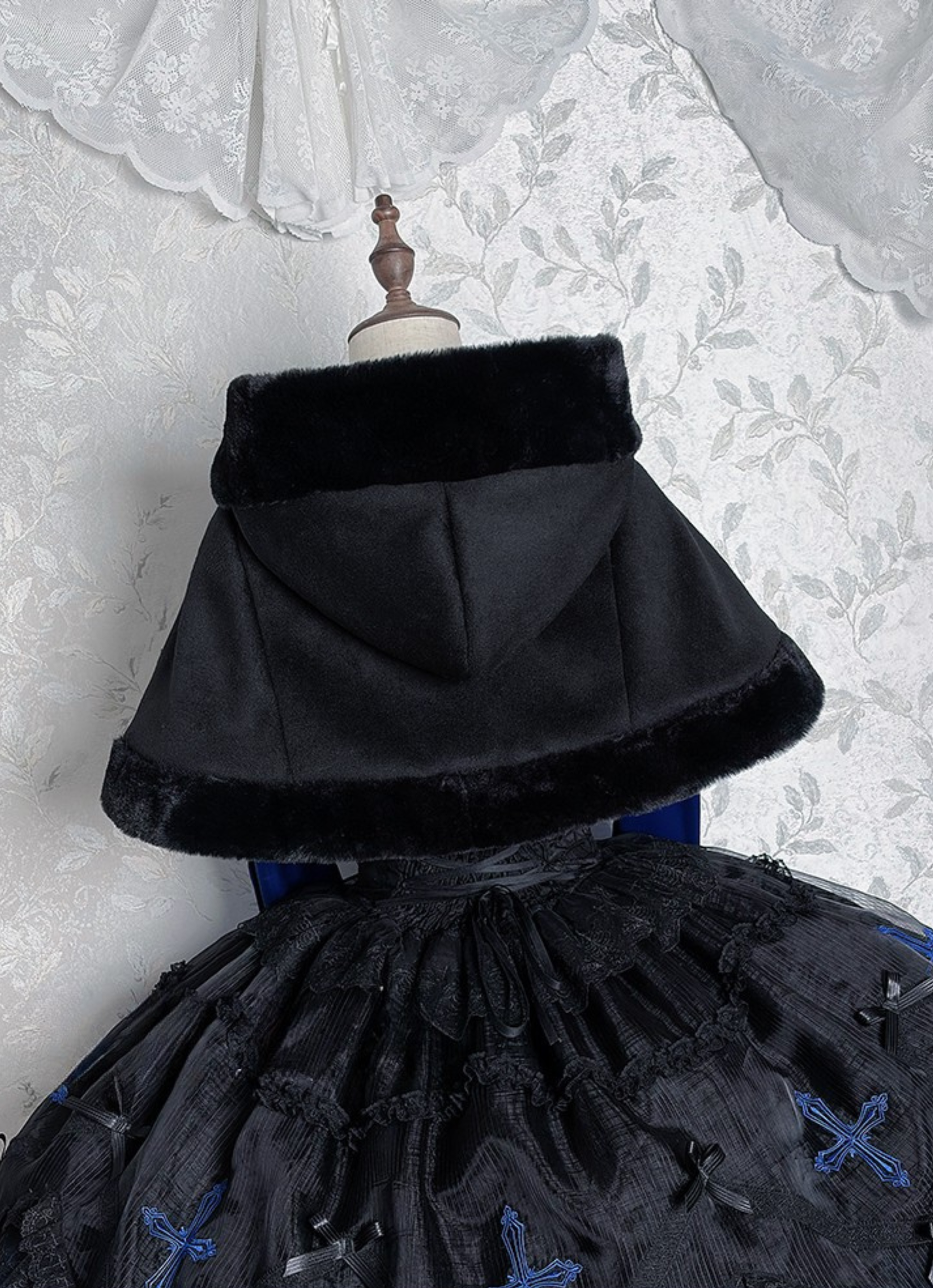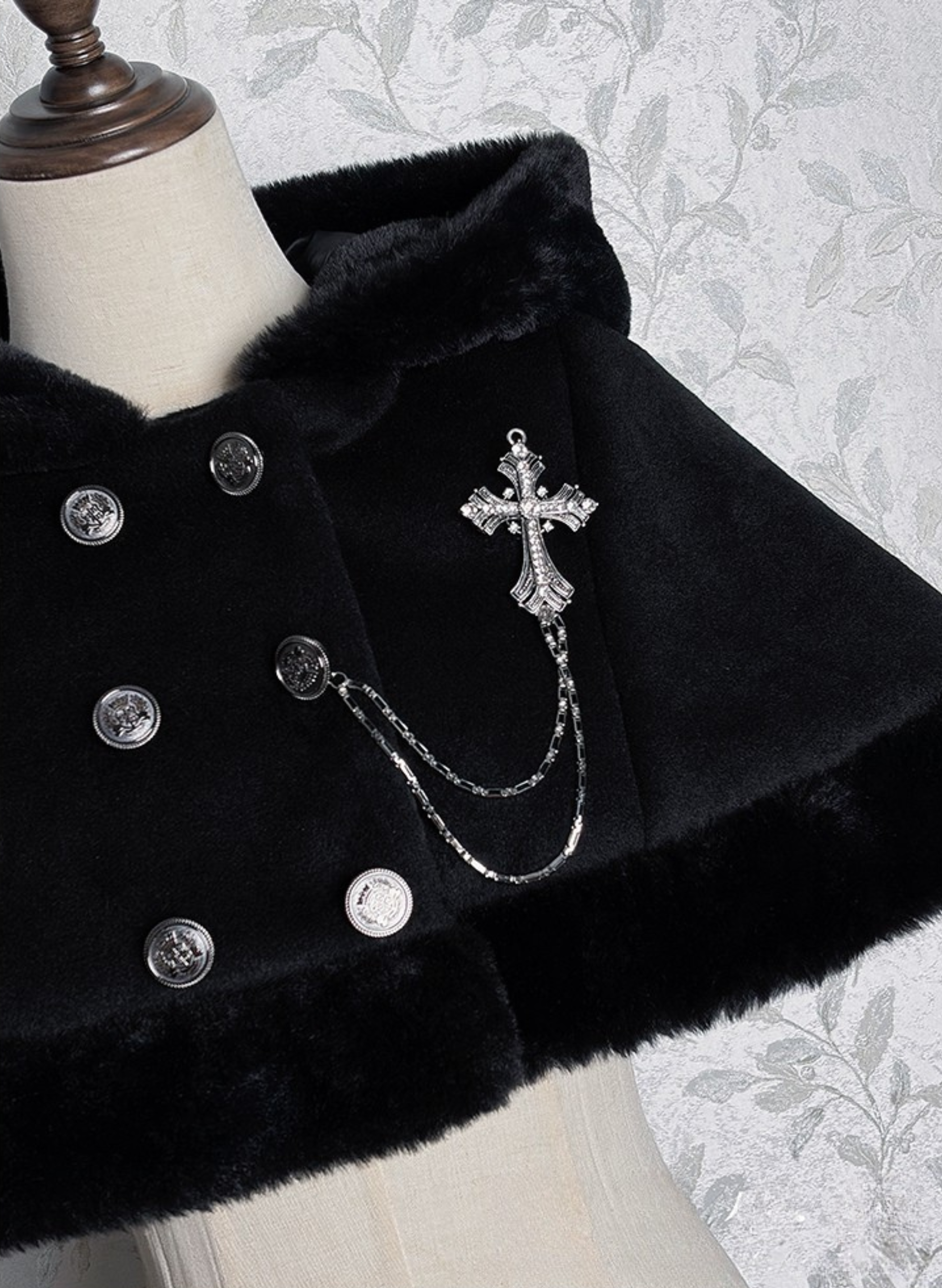 ❤︎【12月8日予約締切】Black Mist Banquet ゴシックフーディーファーケープコート+クロスチェーンブローチ❤︎ ⚠️人気商品のためお届けに4-5ヶ月ほどかかってしまう場合がございます