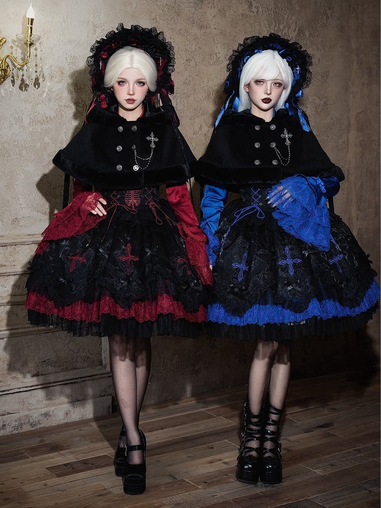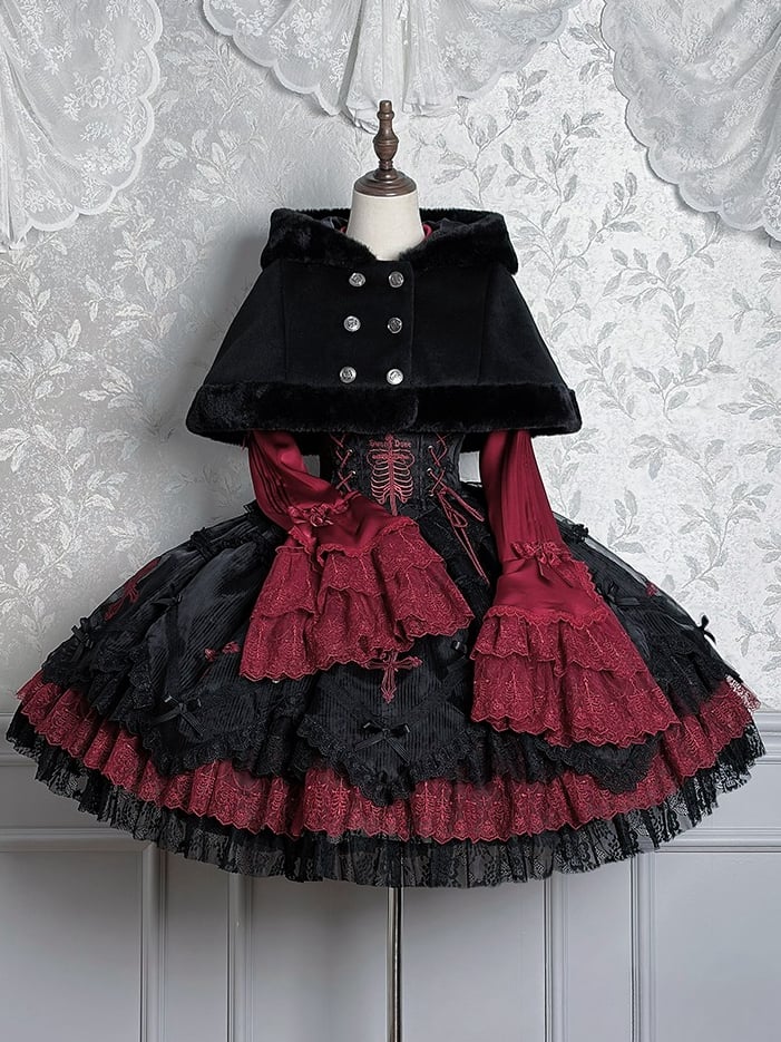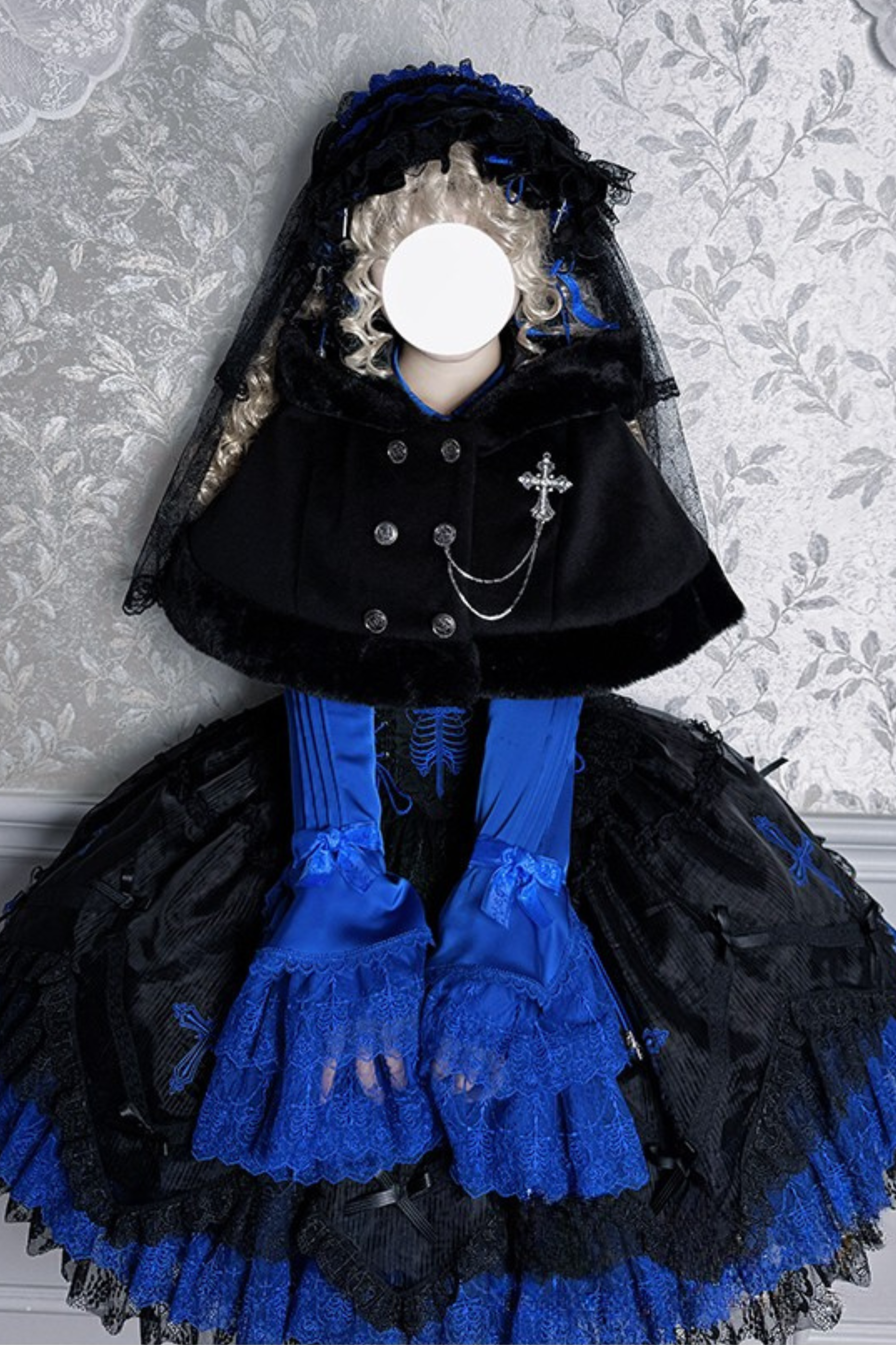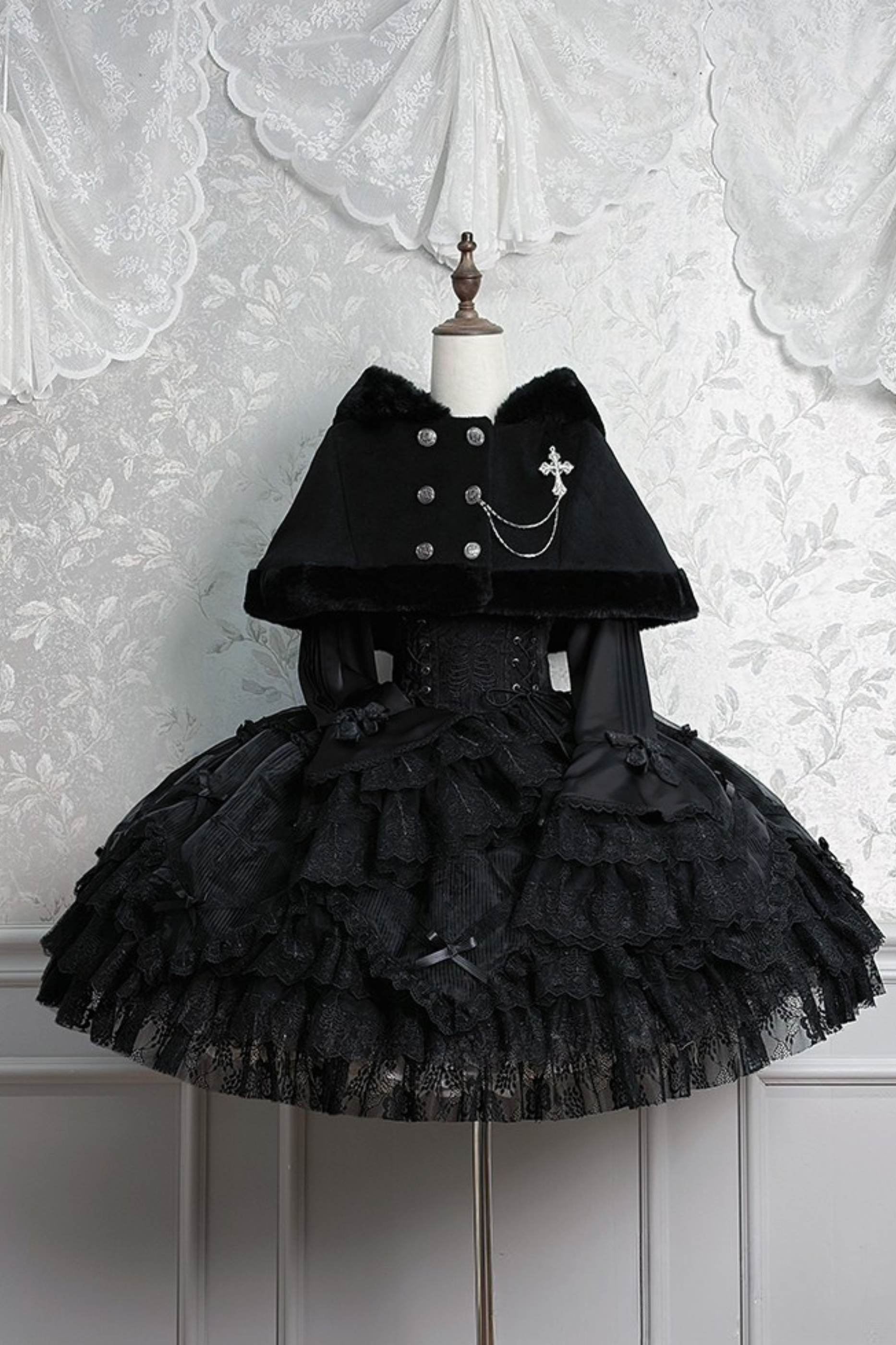 ❤︎【12月8日予約締切】Black Mist Banquet ゴシックフーディーファーケープコート+クロスチェーンブローチ❤︎ ⚠️人気商品のためお届けに4-5ヶ月ほどかかってしまう場合がございます
