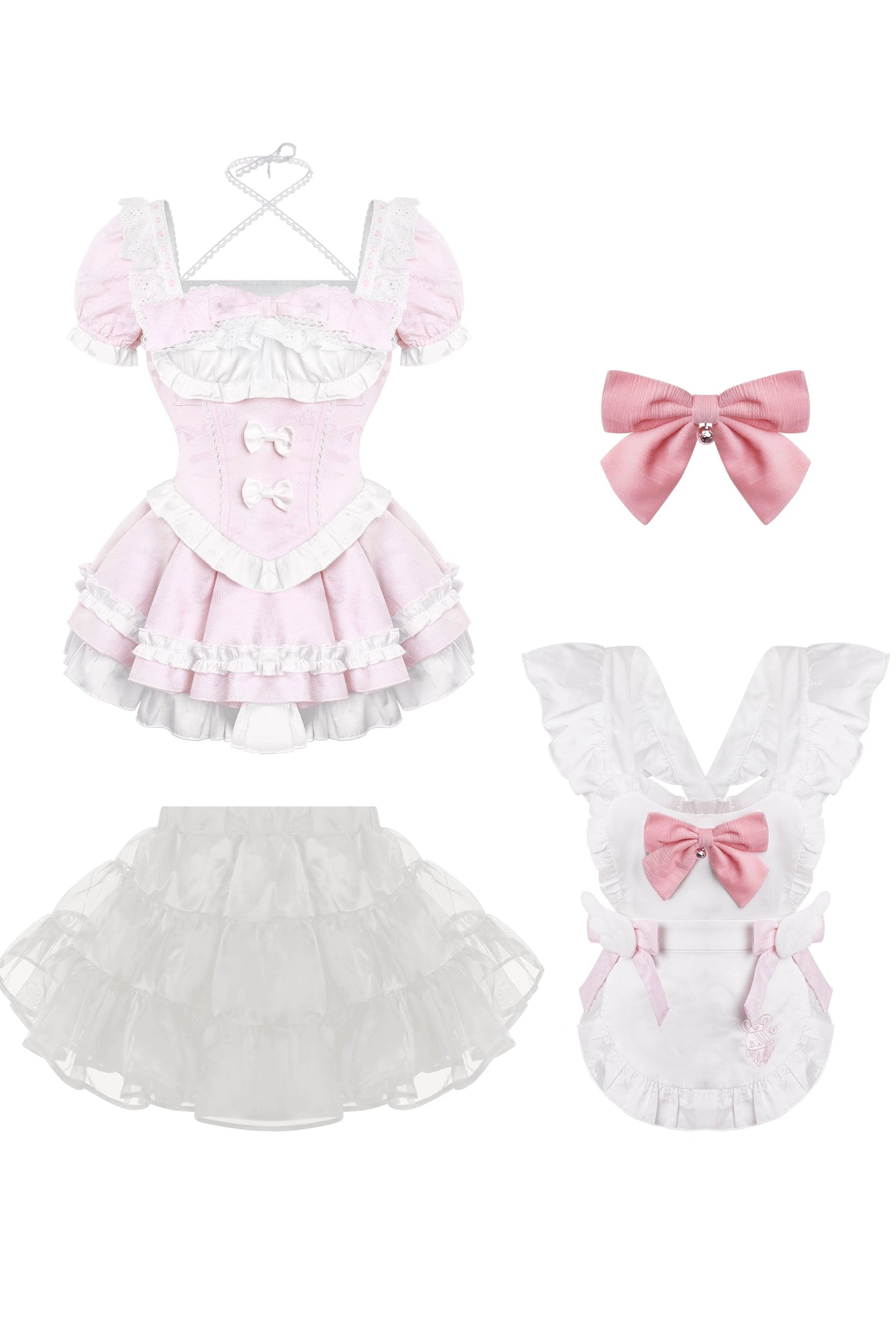❤スイートガーリードレス+リボンエプロン+インナースカート❤