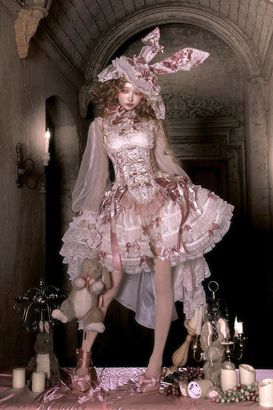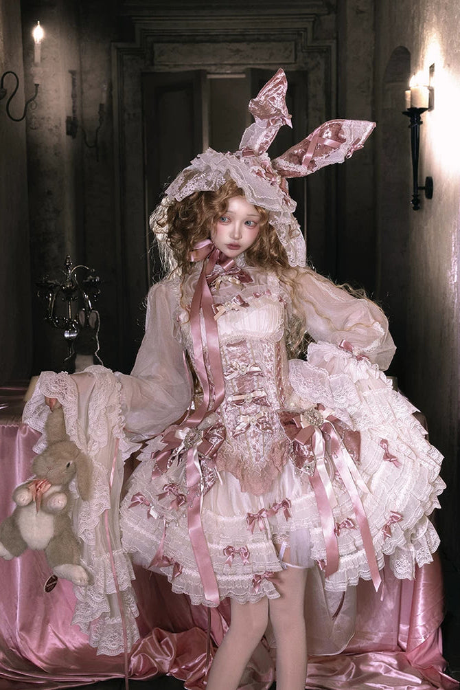 【4月8日予約締切】スウィートロリータバニーレースコルセットトップ+姫袖シャツ+スカート+バルーンパンツ