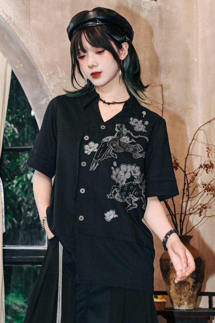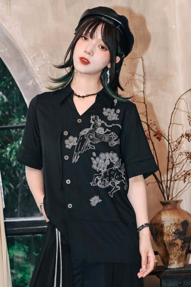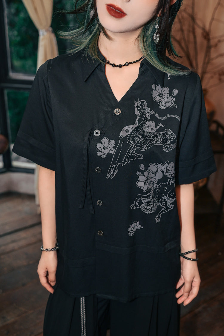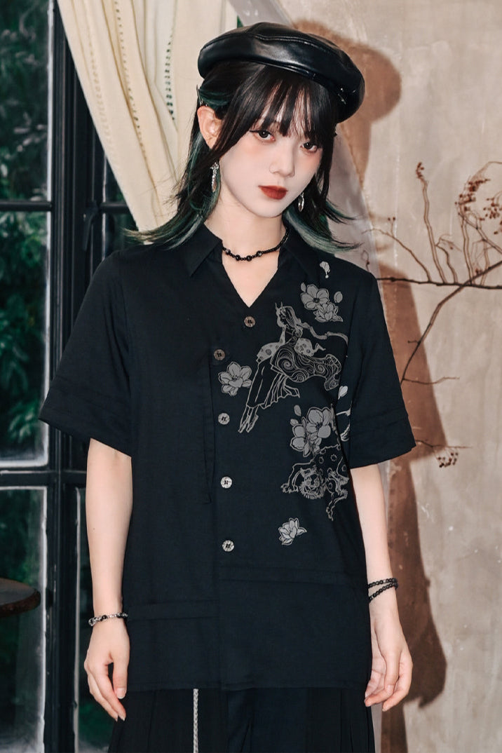 ❤ファントムワールドアシメデザインチャイナモードシャツ❤