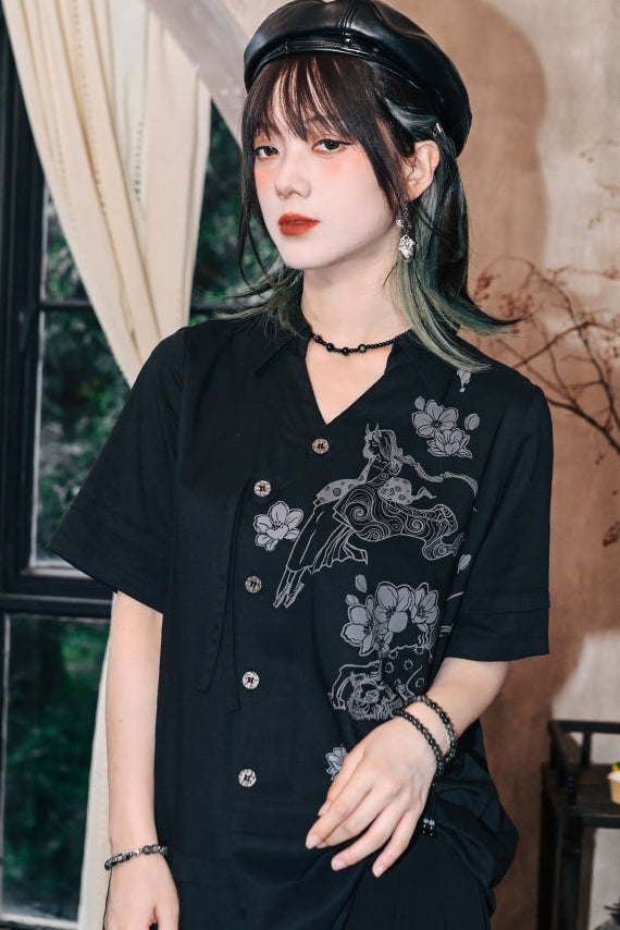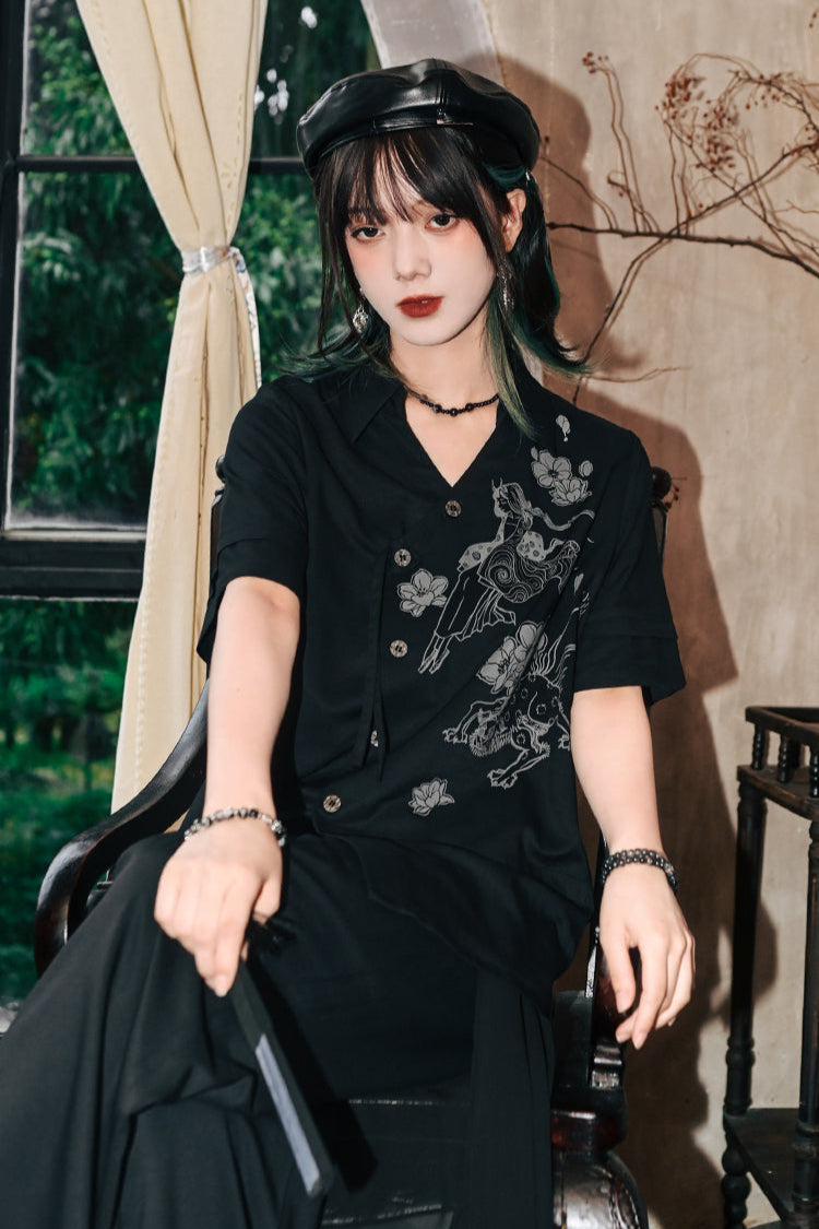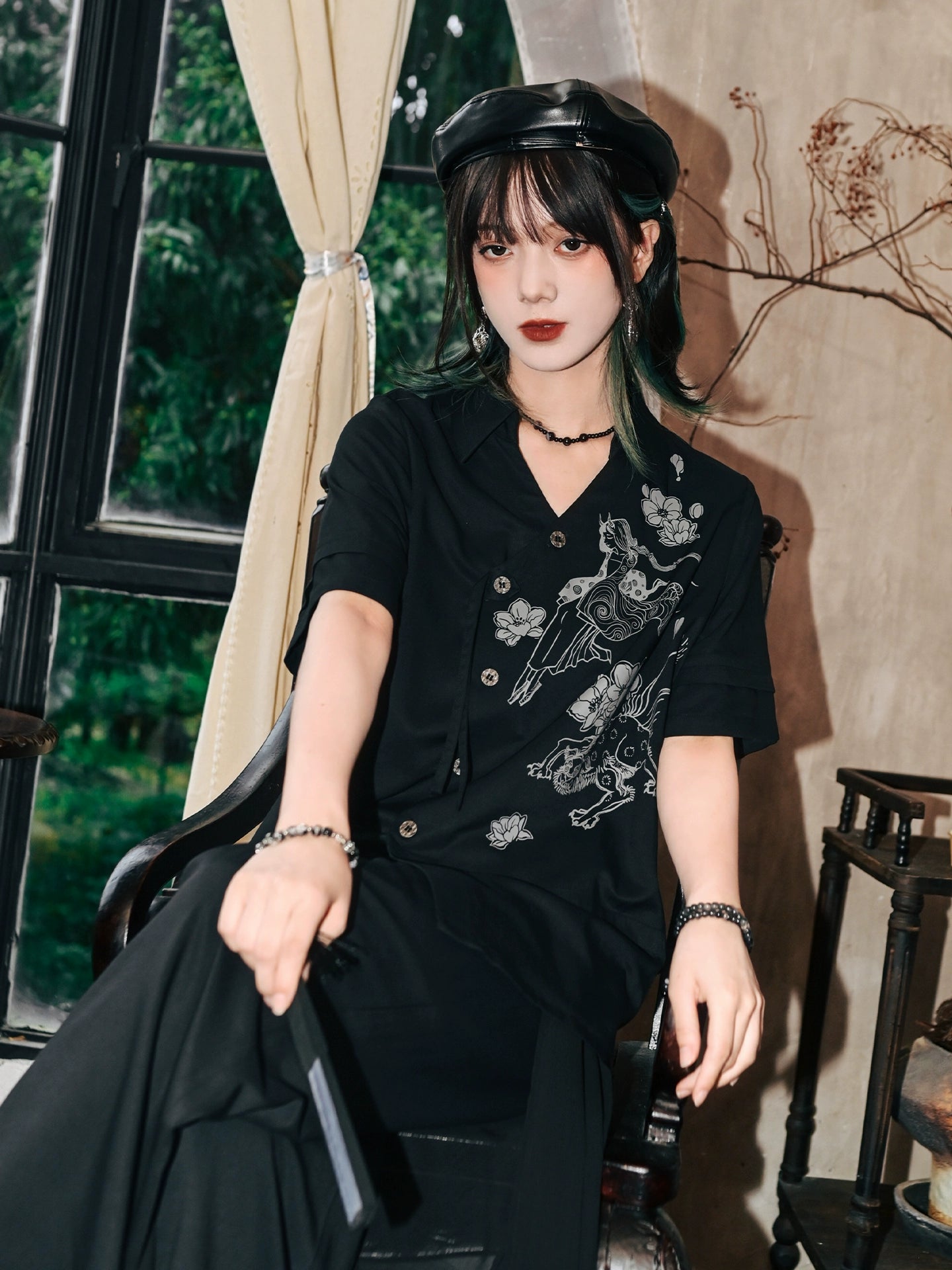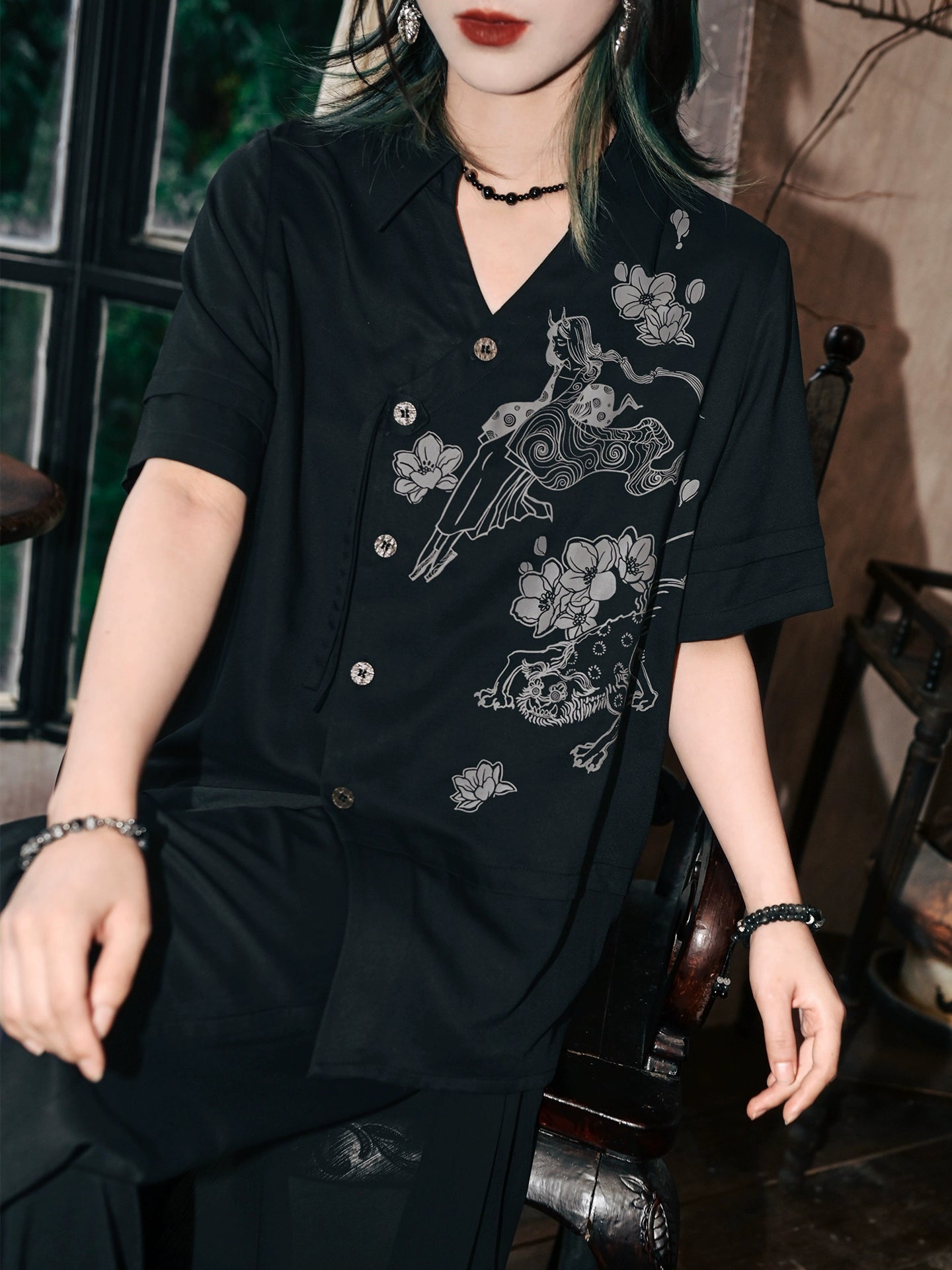 ❤ファントムワールドアシメデザインチャイナモードシャツ❤