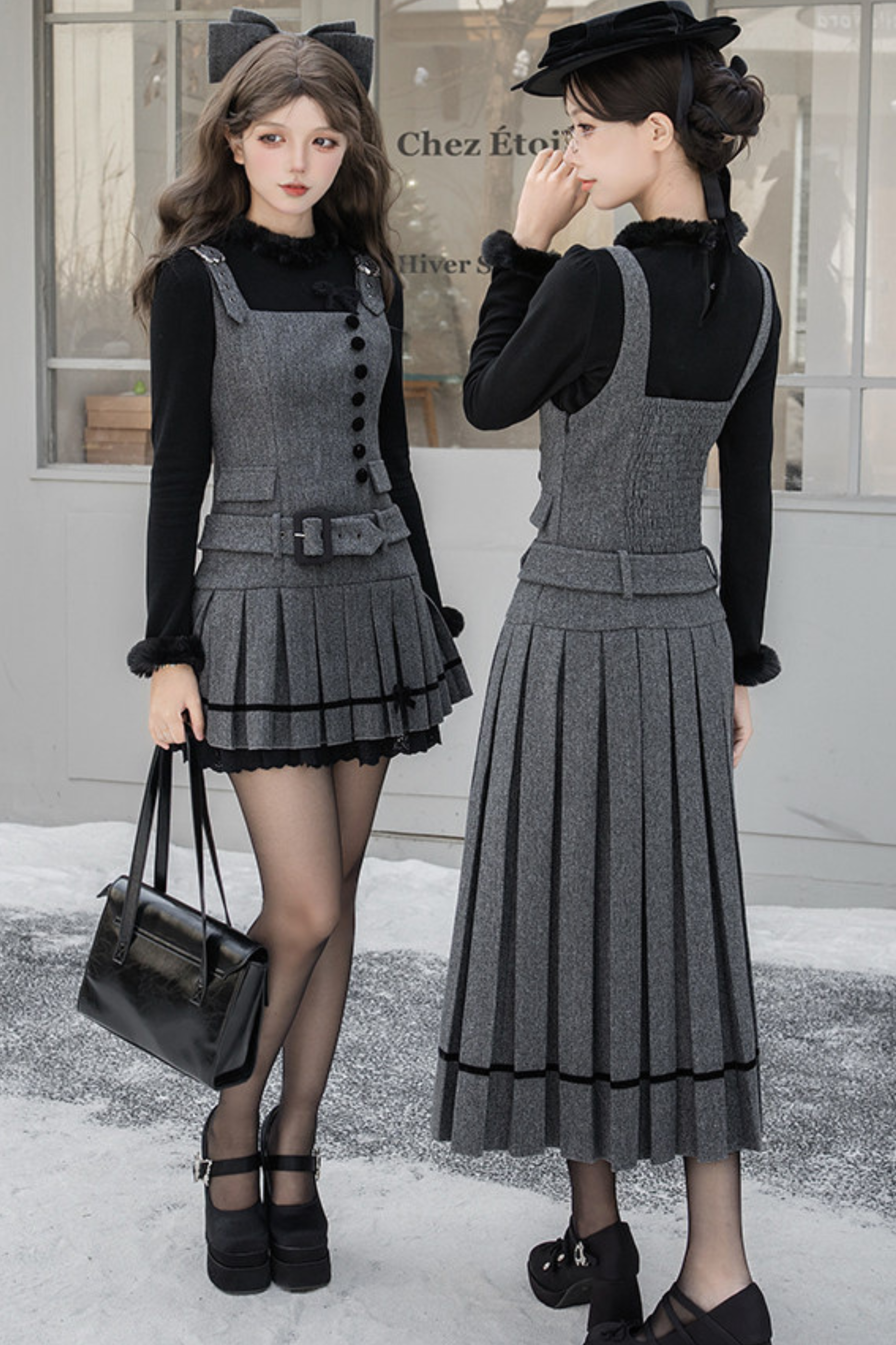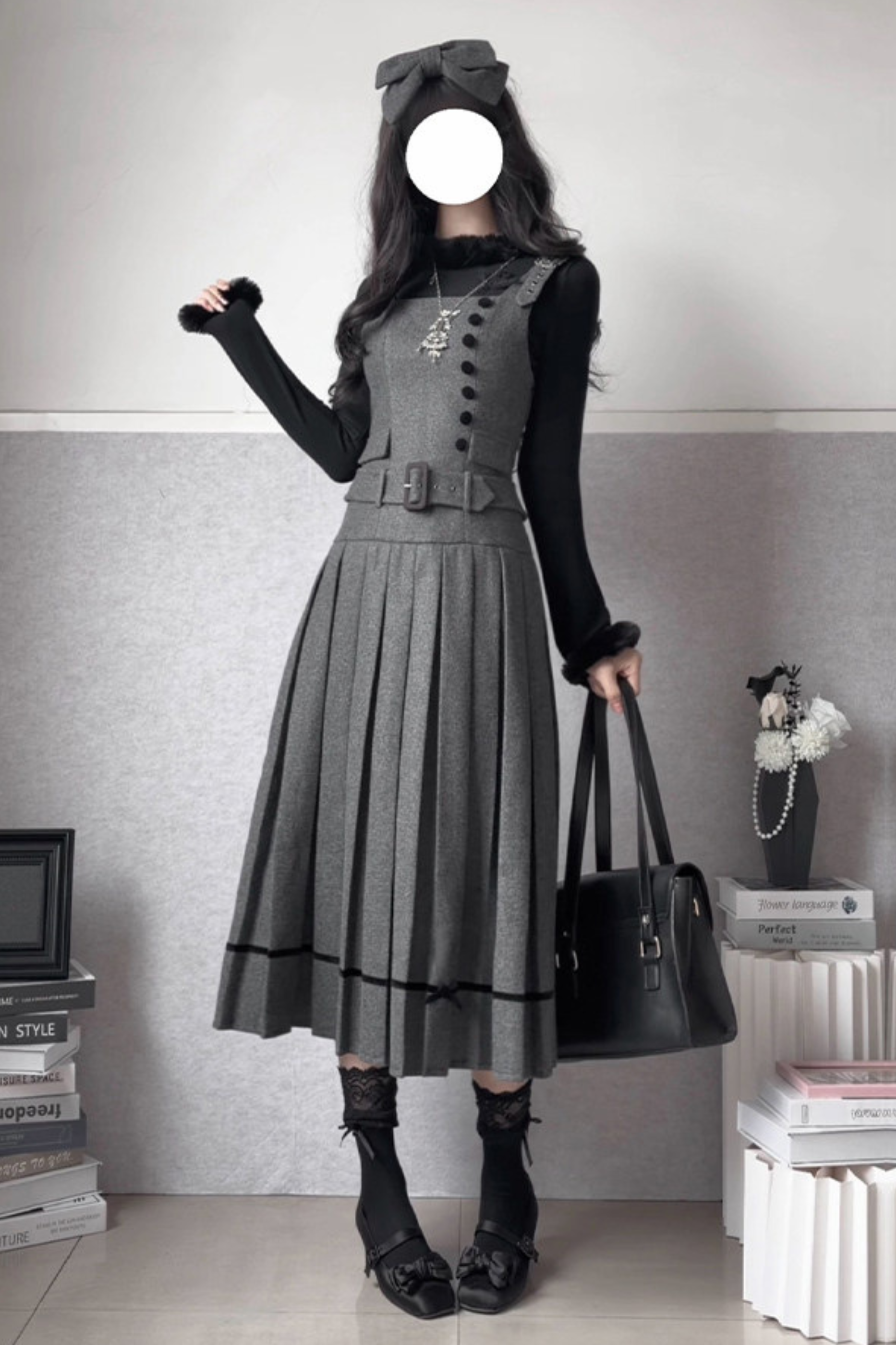 エレガントデイリーベストドレス+リボンヘアアクセサリー