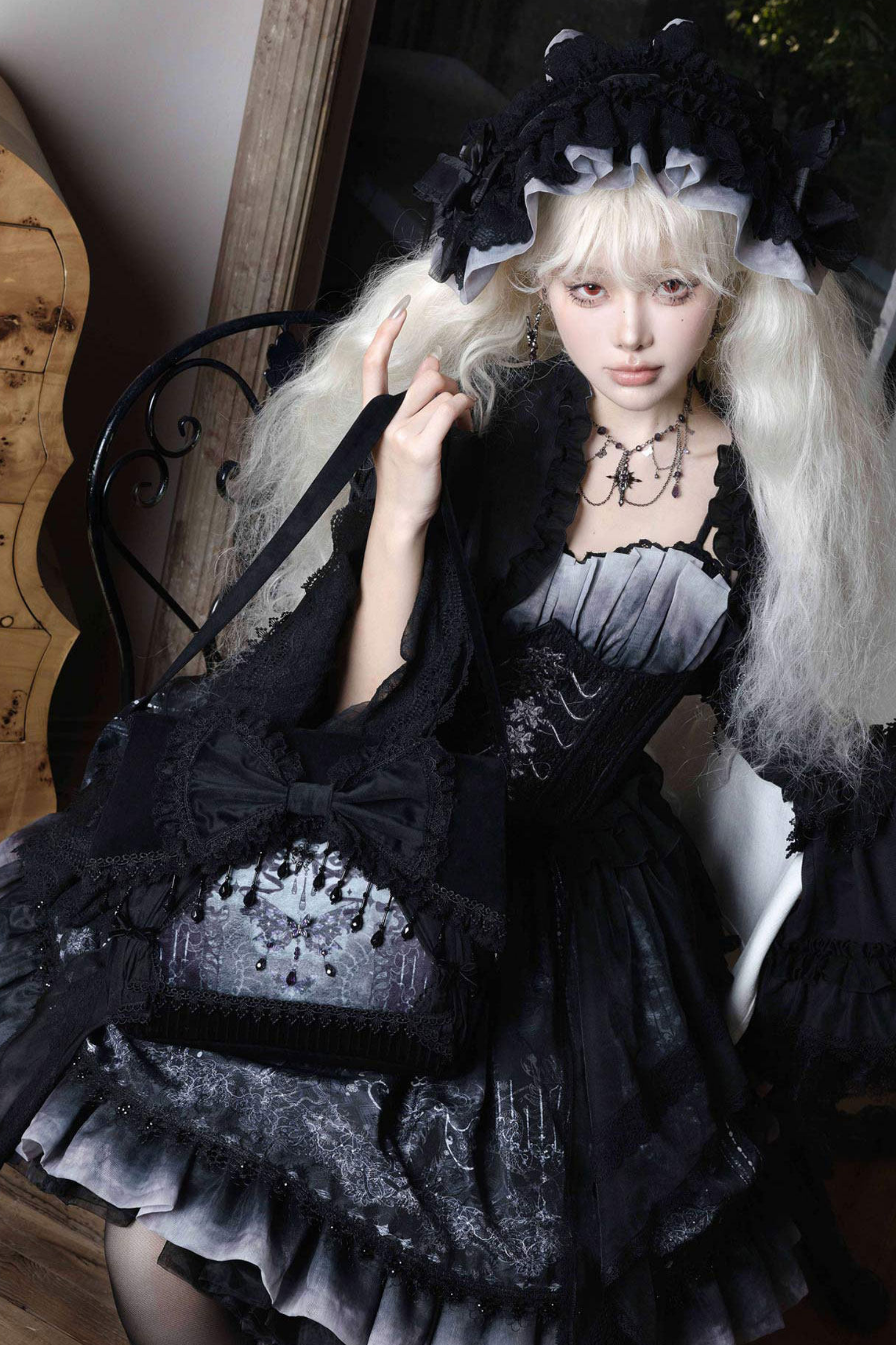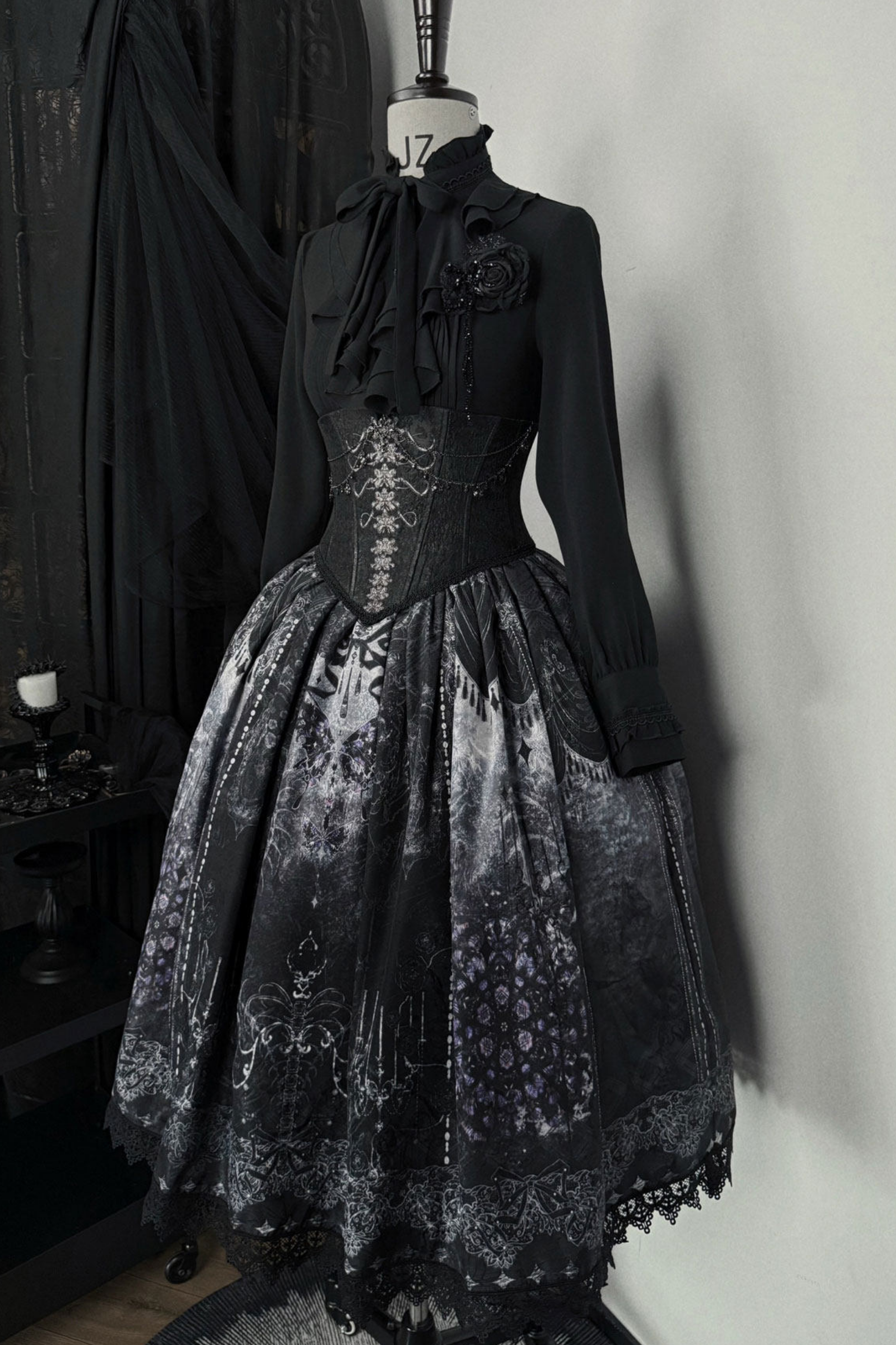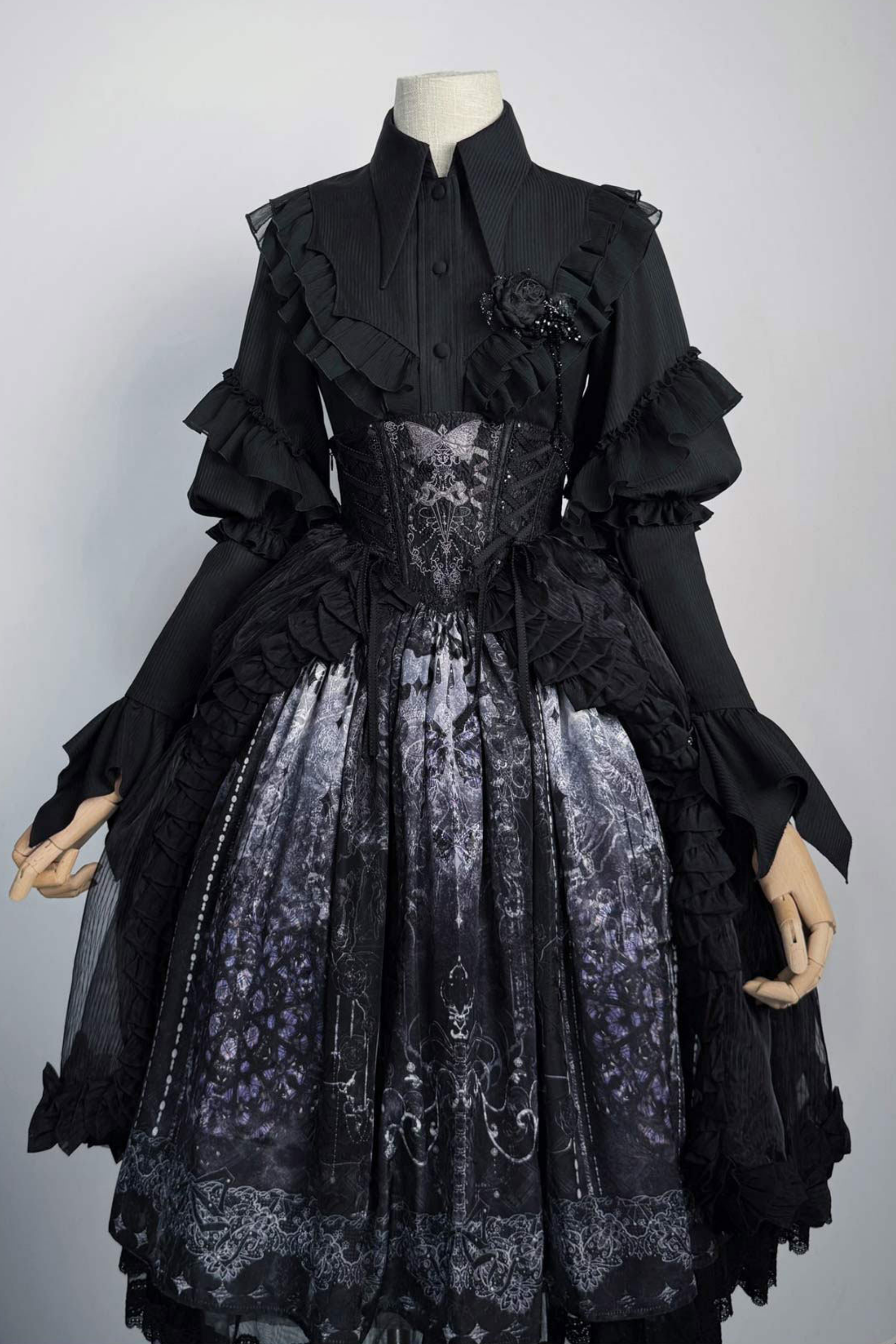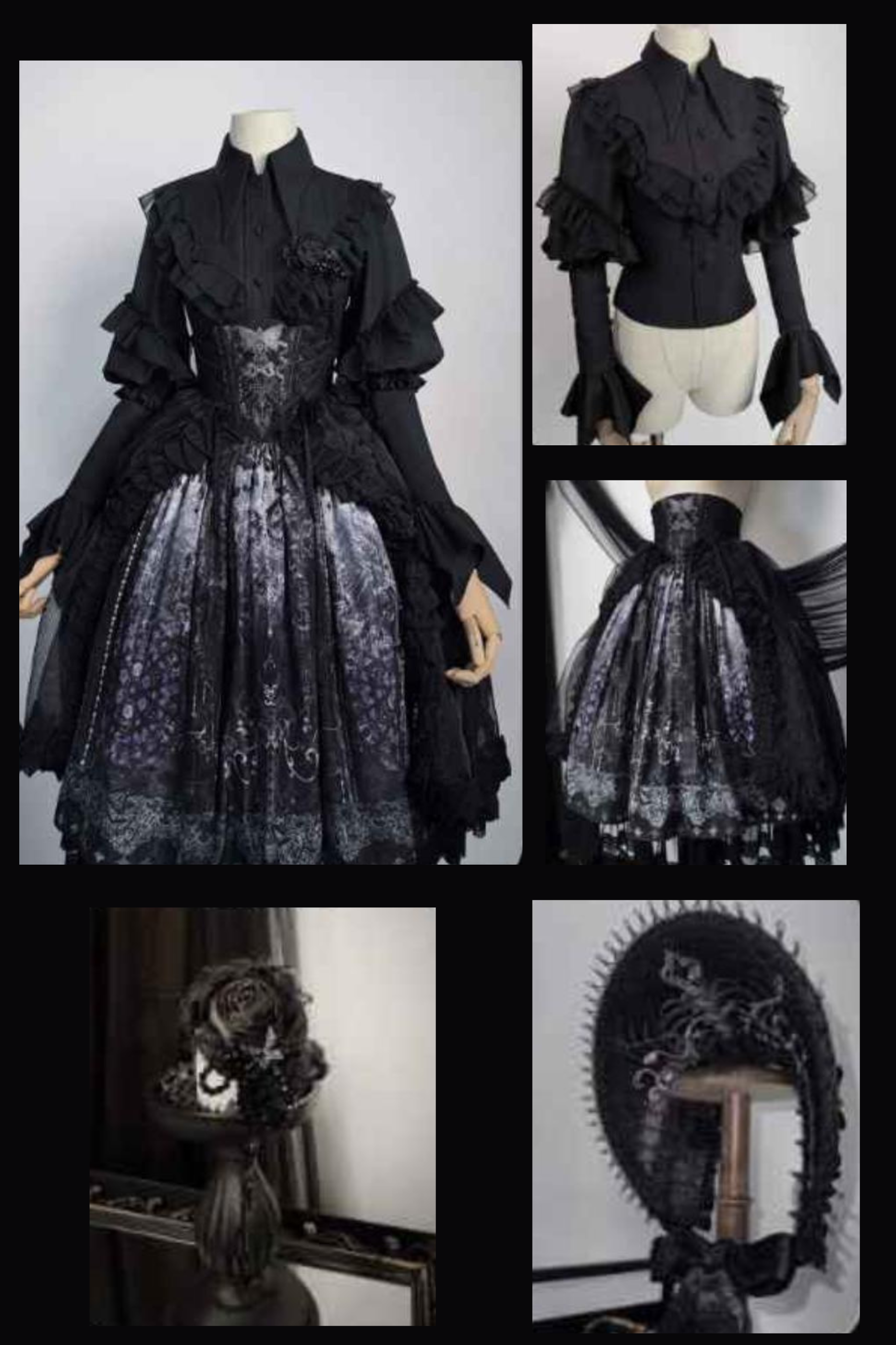 エレガントゴシックロリータジャンパースカート+ジャケット+スカート+シャツ+コルセット+アクセサリー