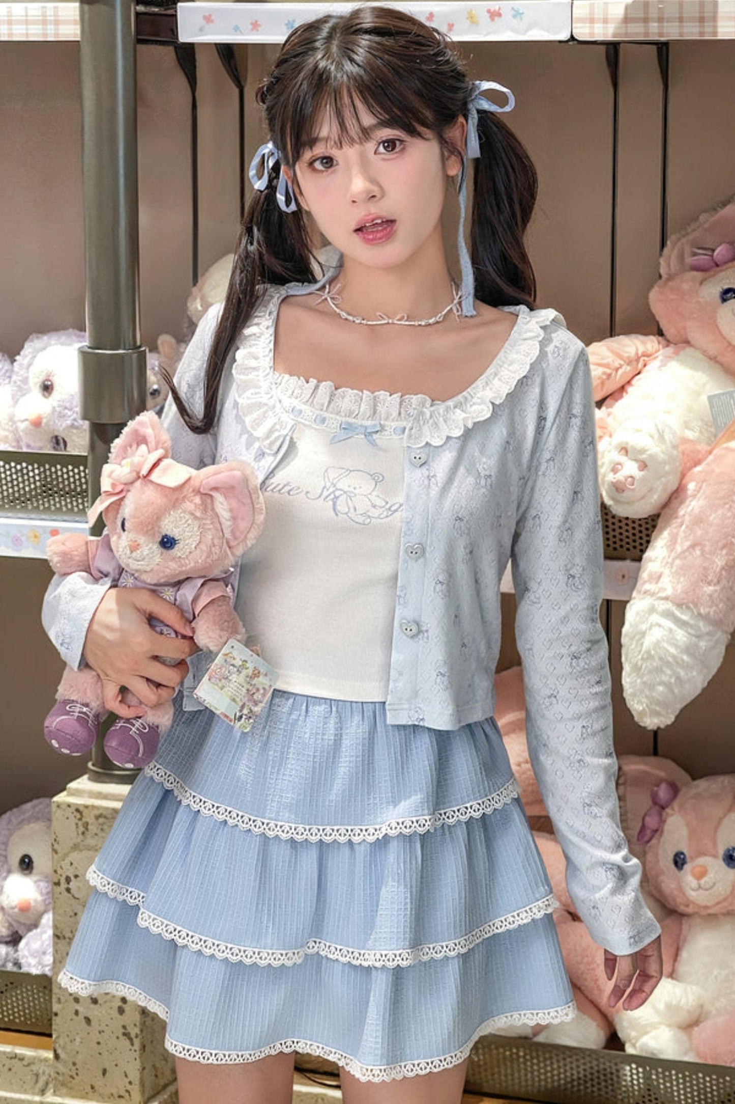 ❤︎レースシンカーディガンジャケット+ホワイトスリング+ショートスカート❤︎