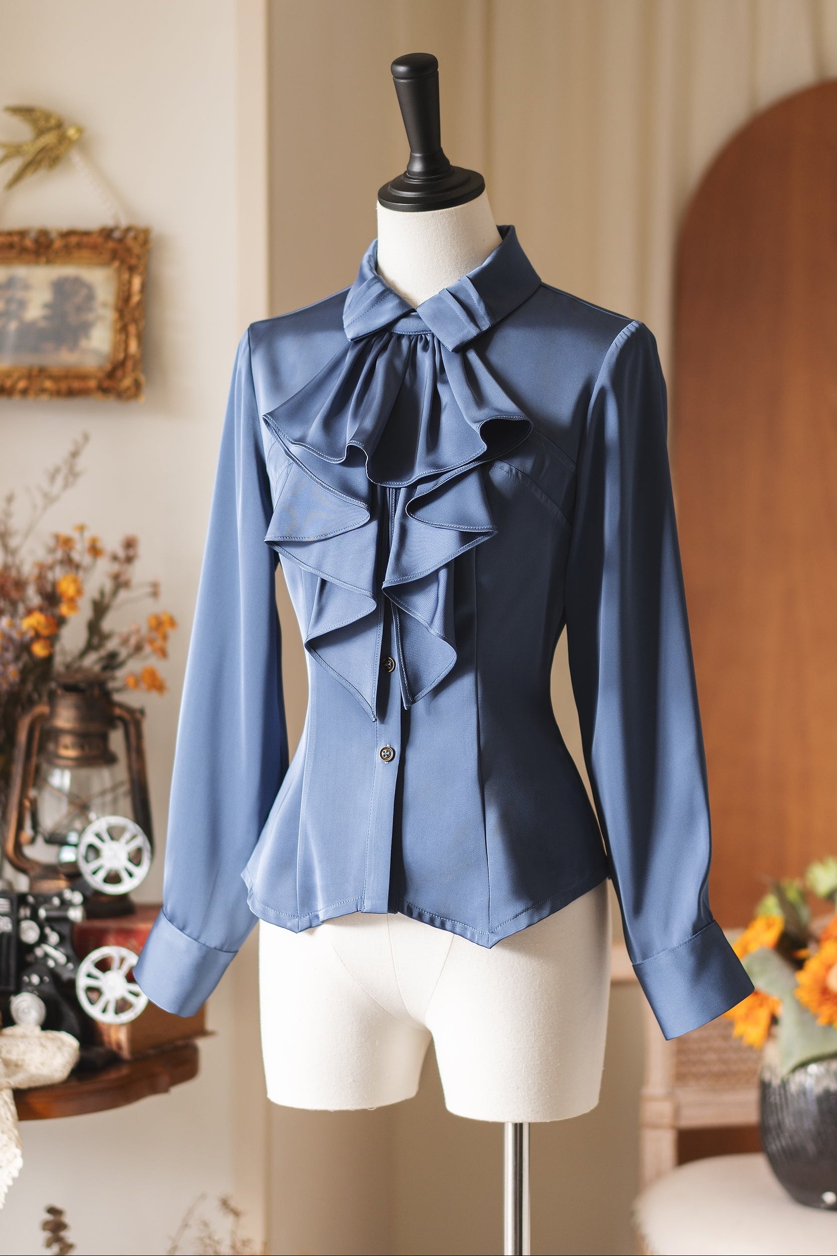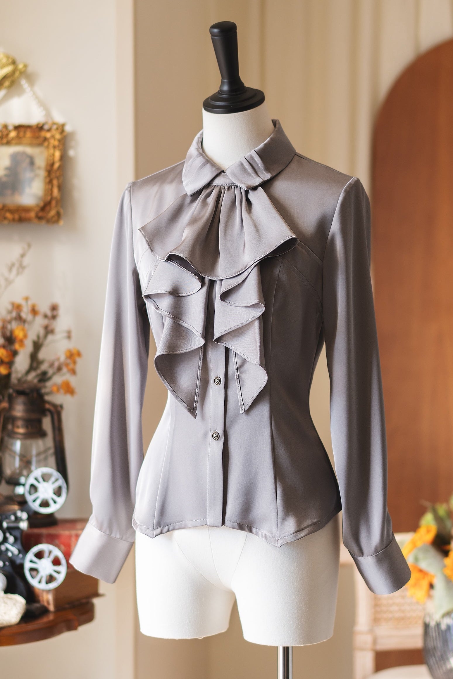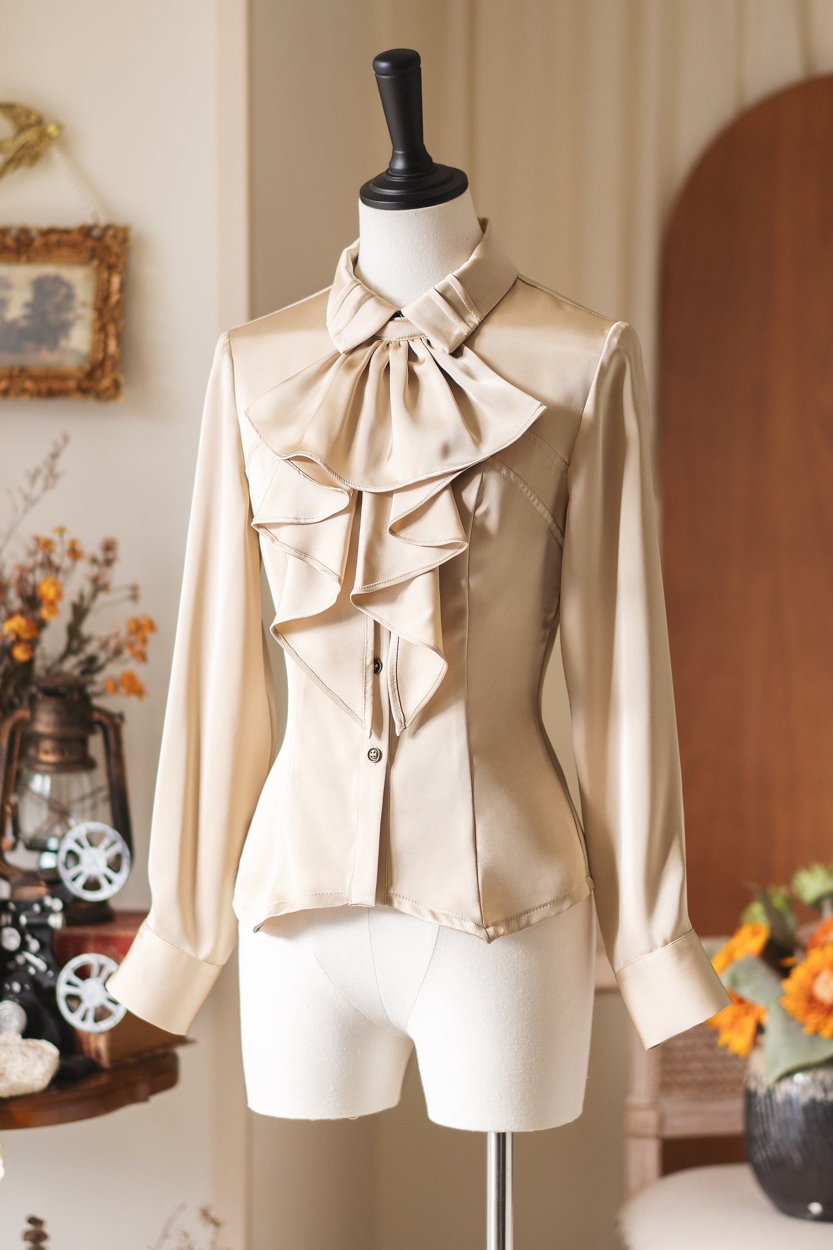 レトロエレガントサテンブラウス