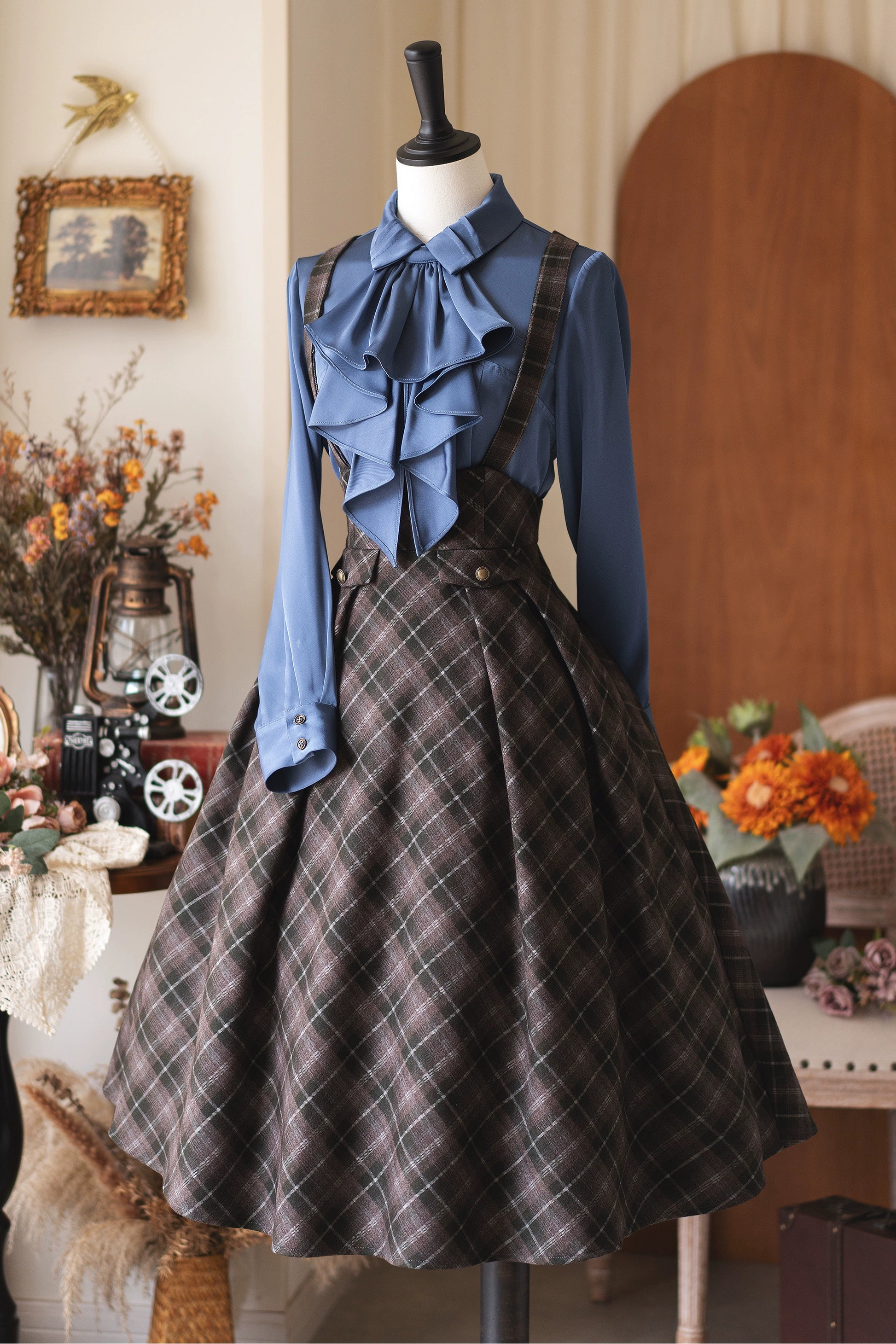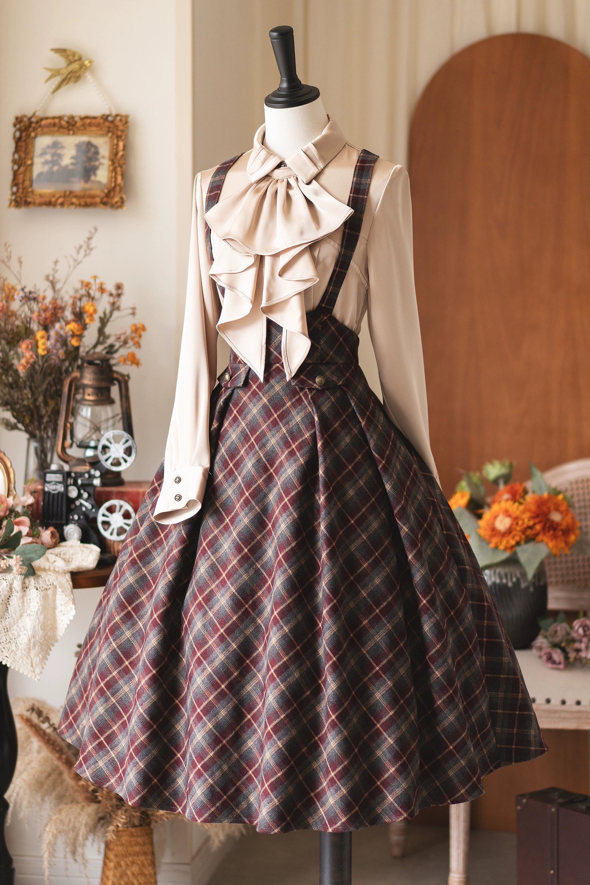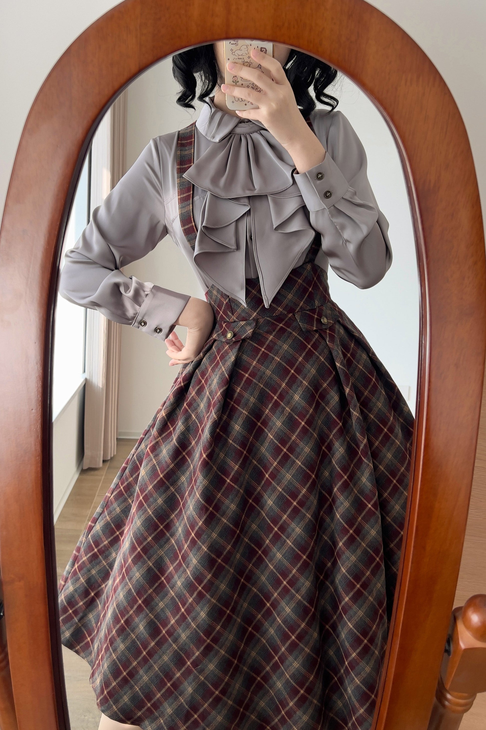 レトロエレガントサテンブラウス