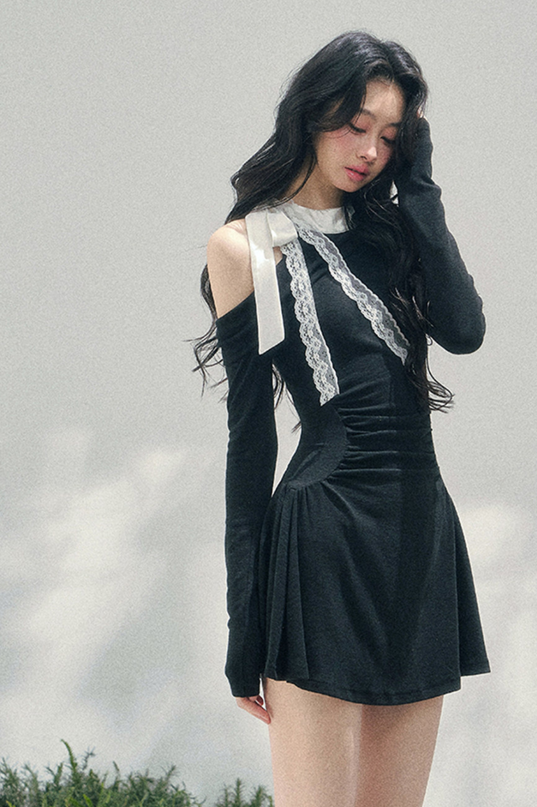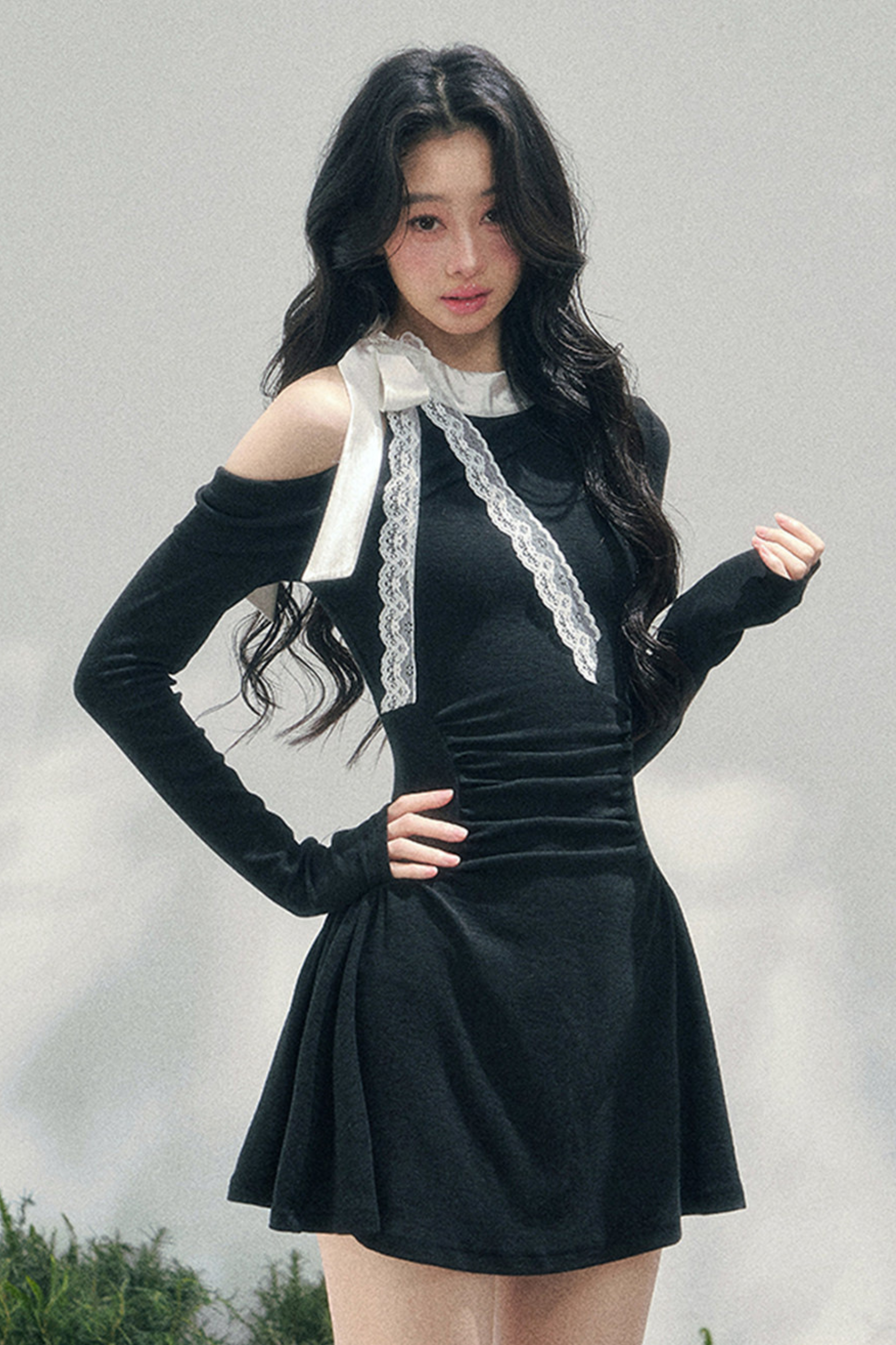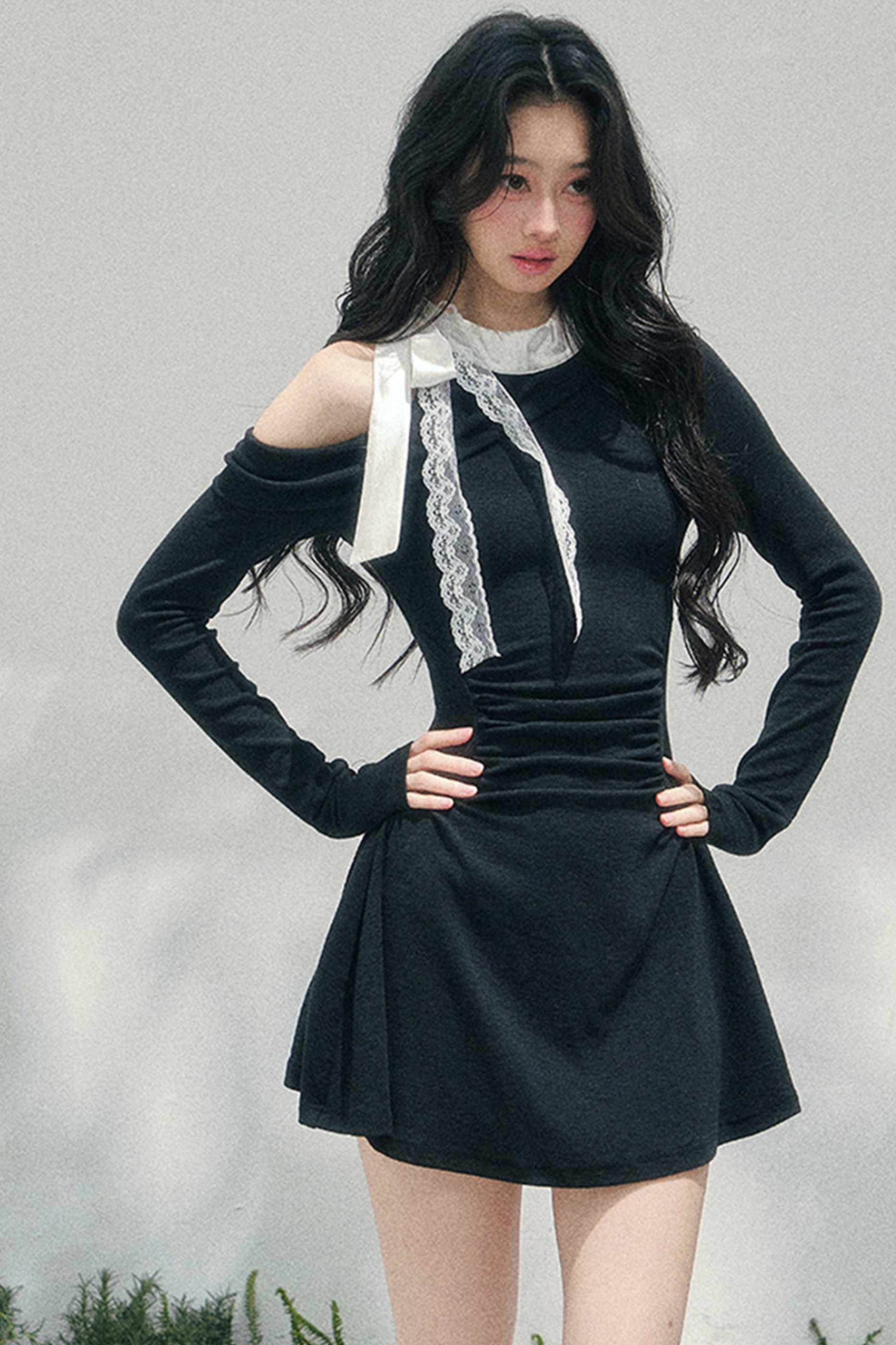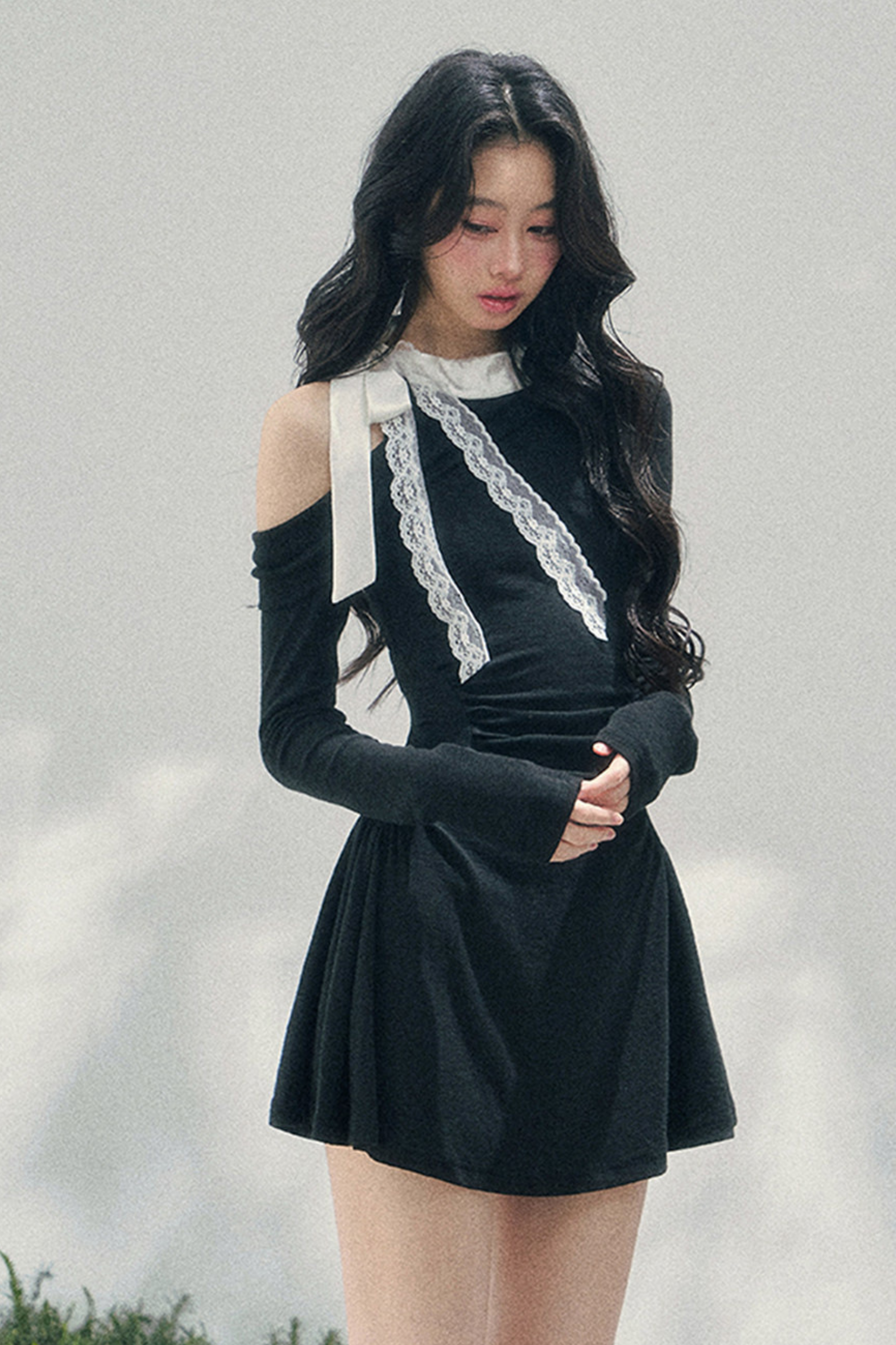 フレンチレースオフショルダードレス