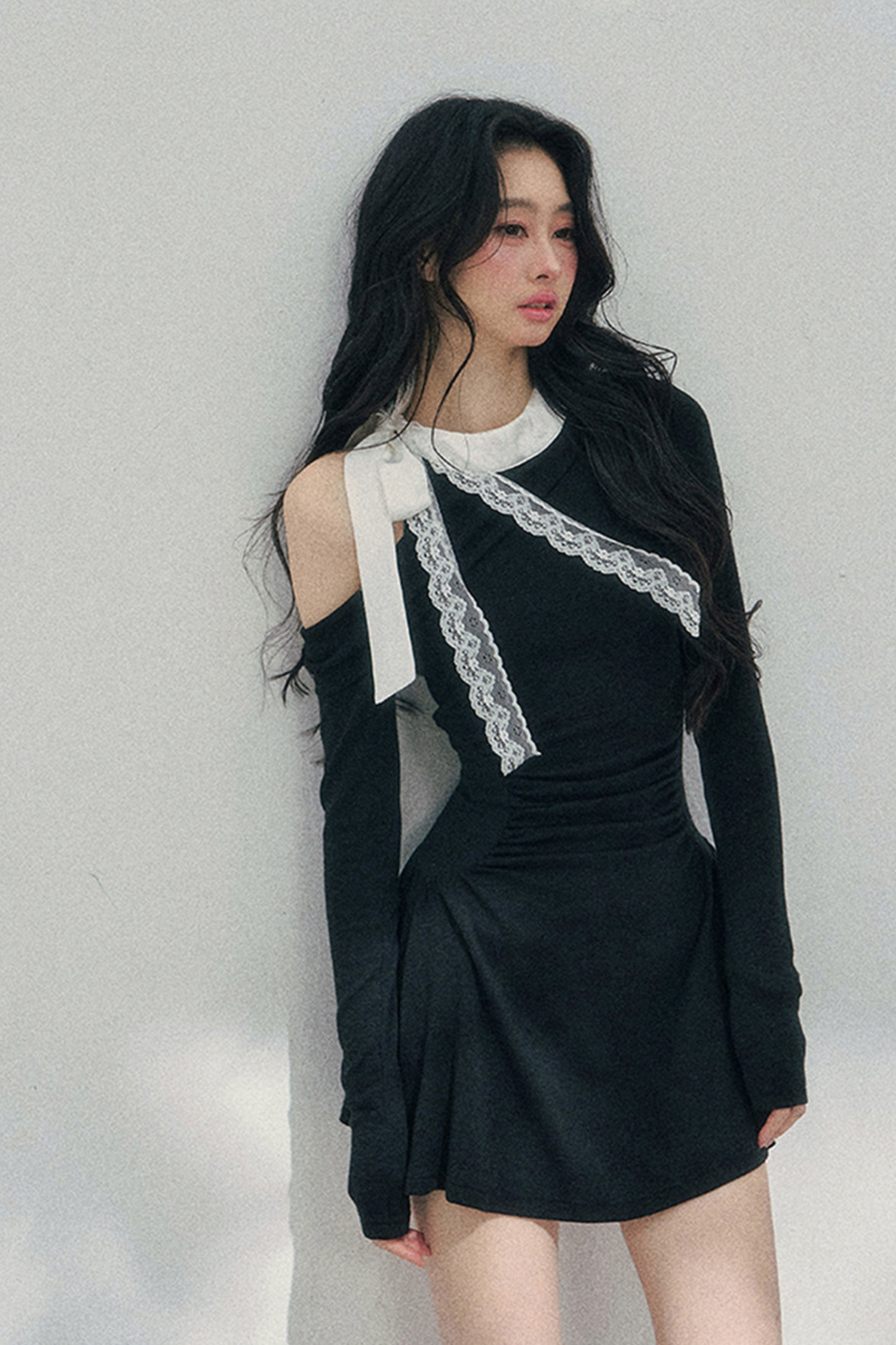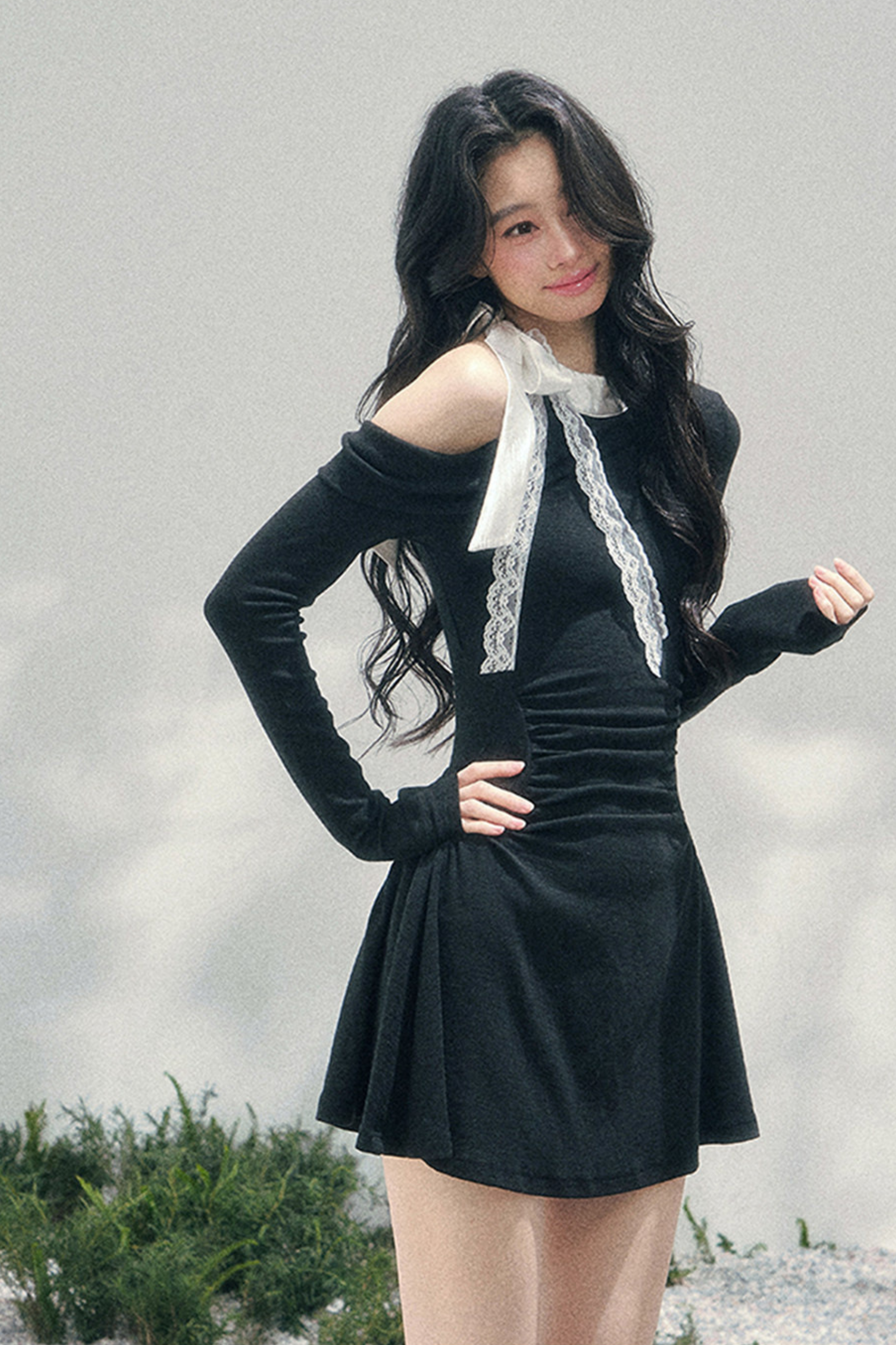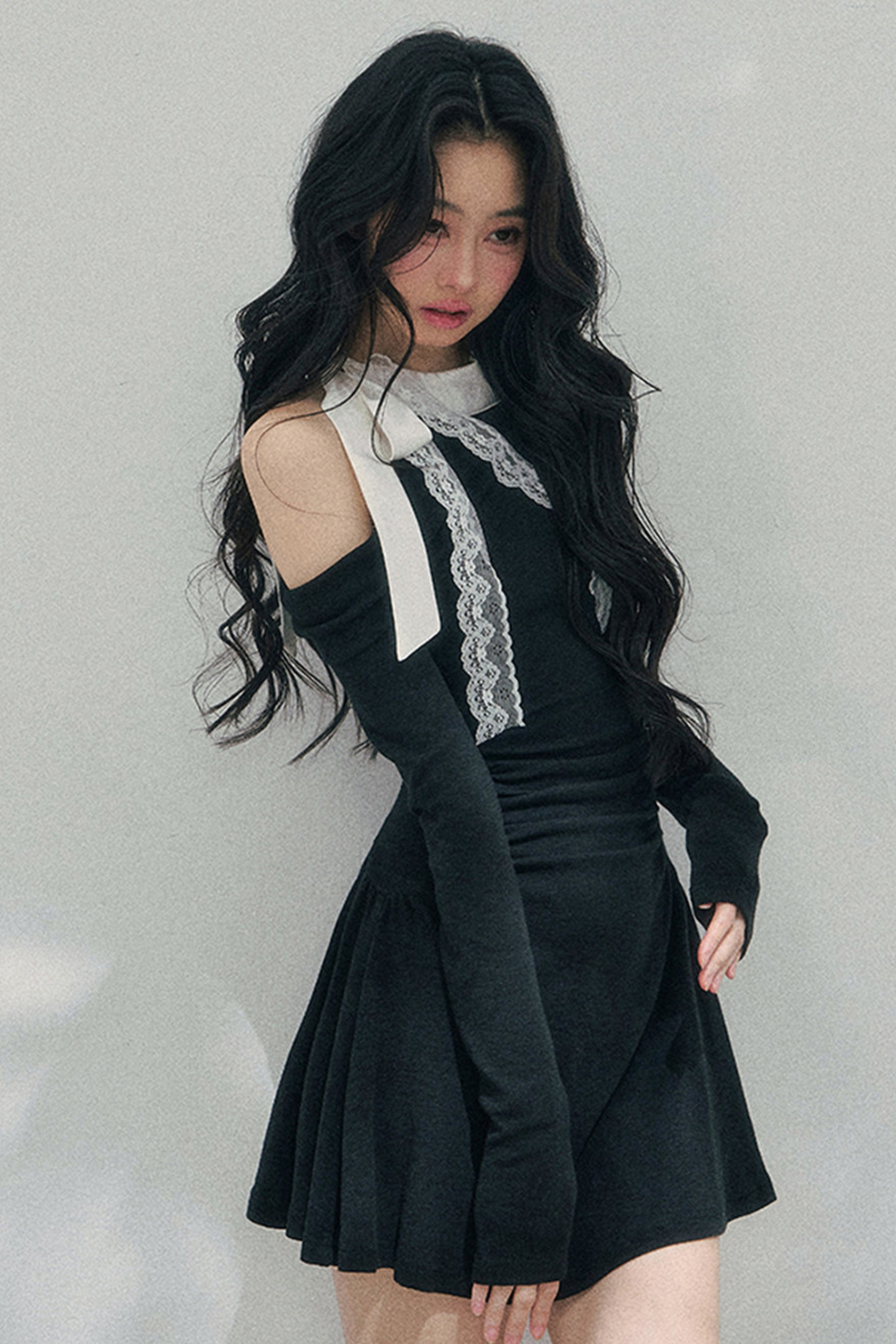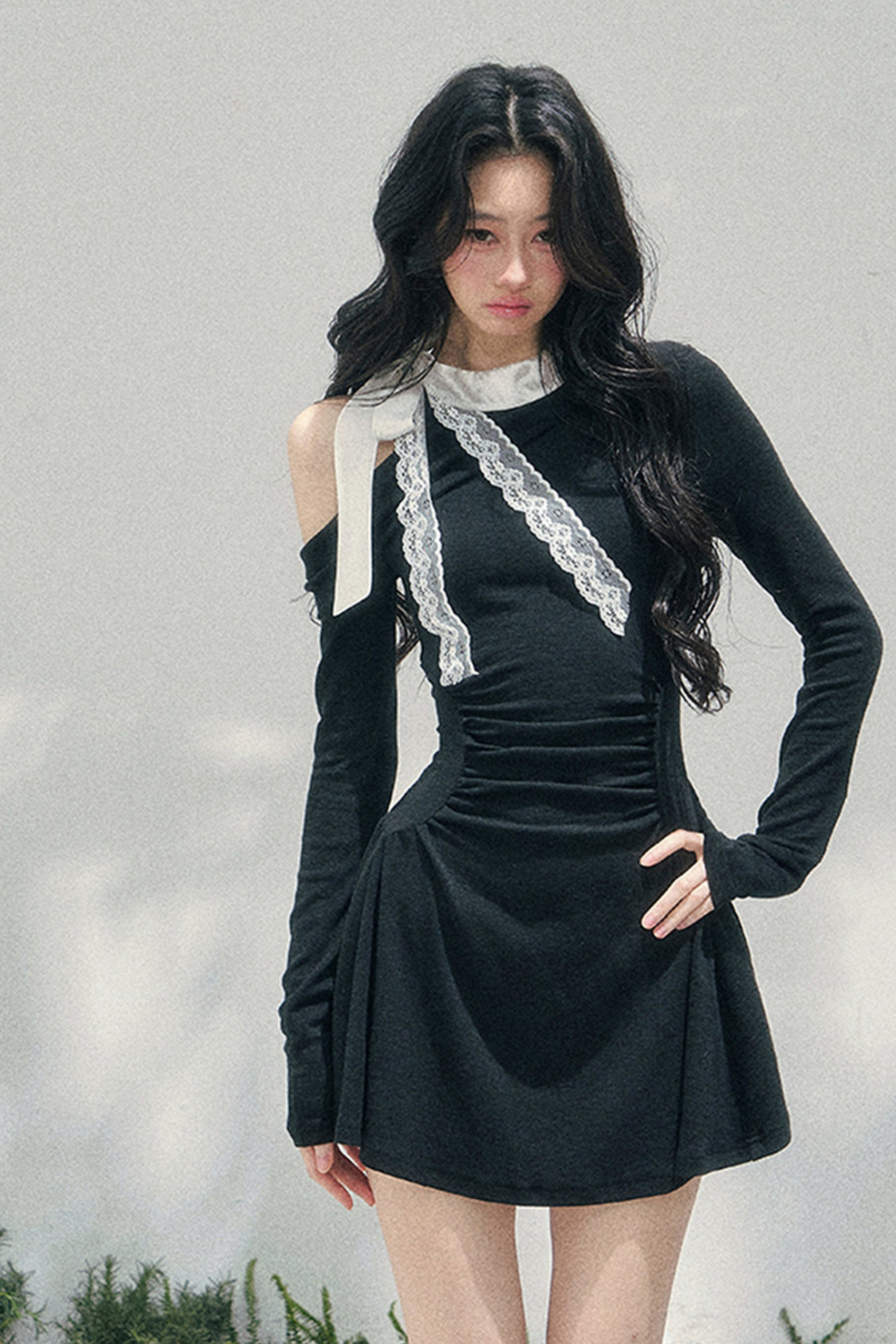 フレンチレースオフショルダードレス