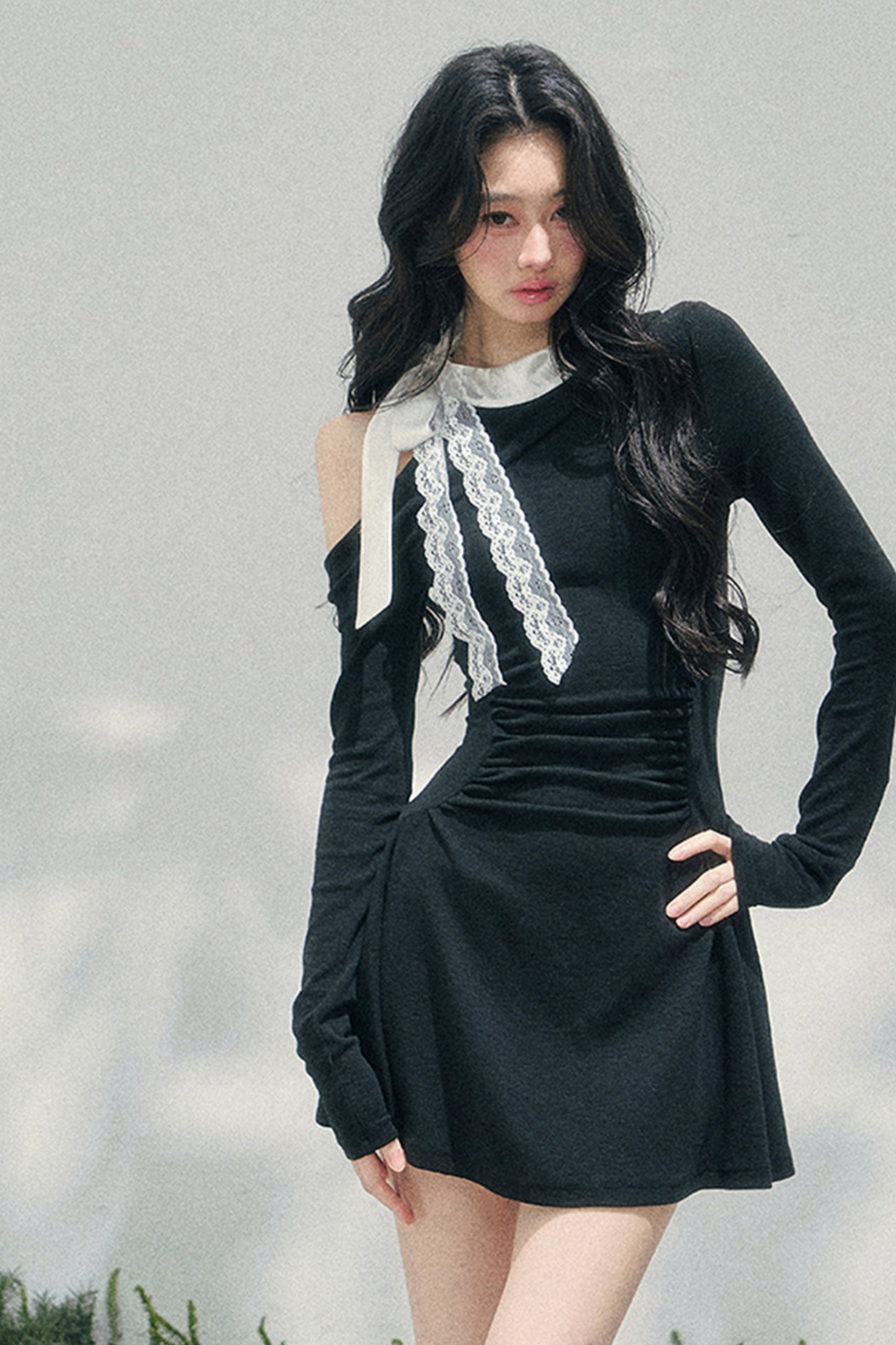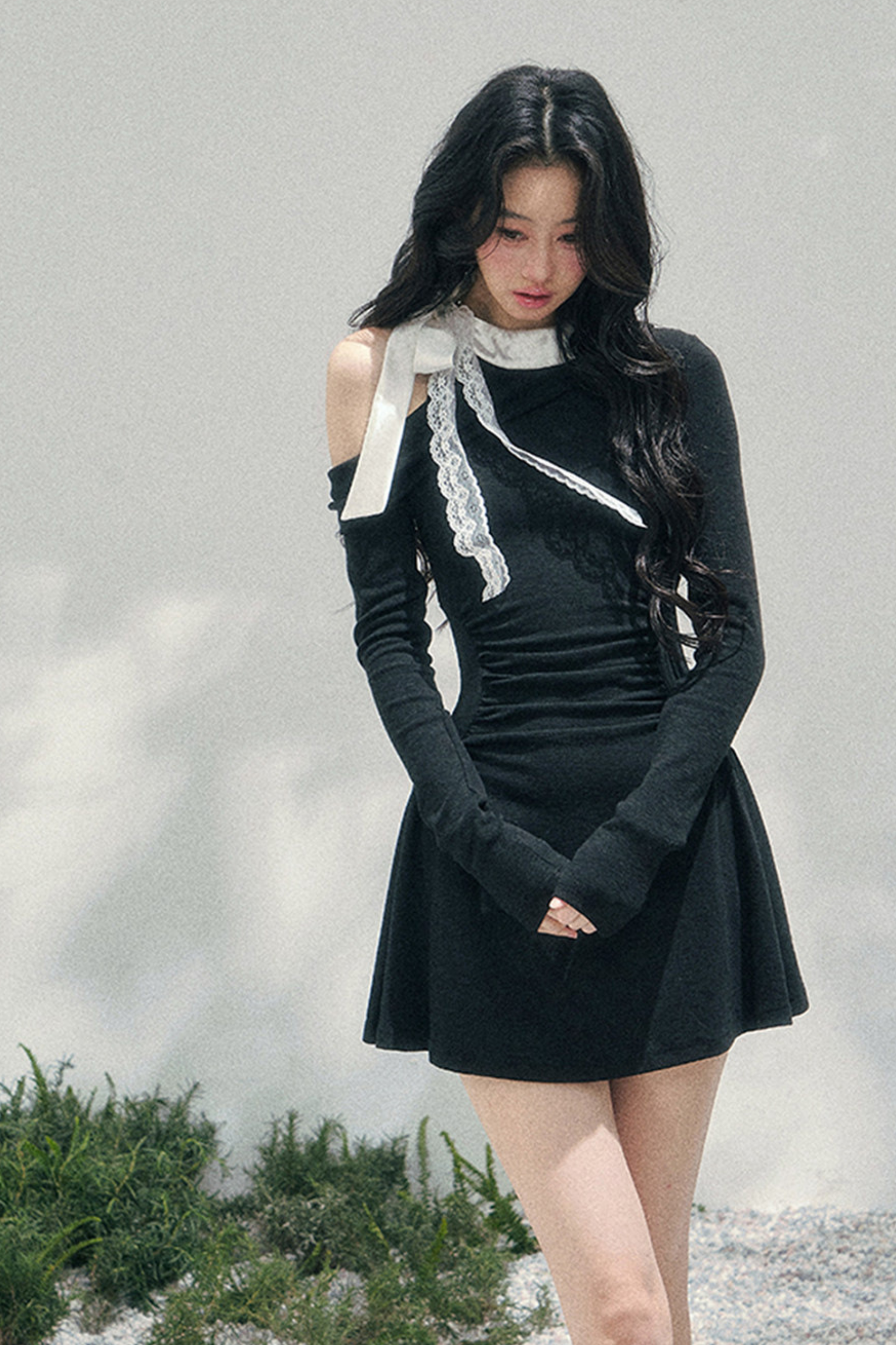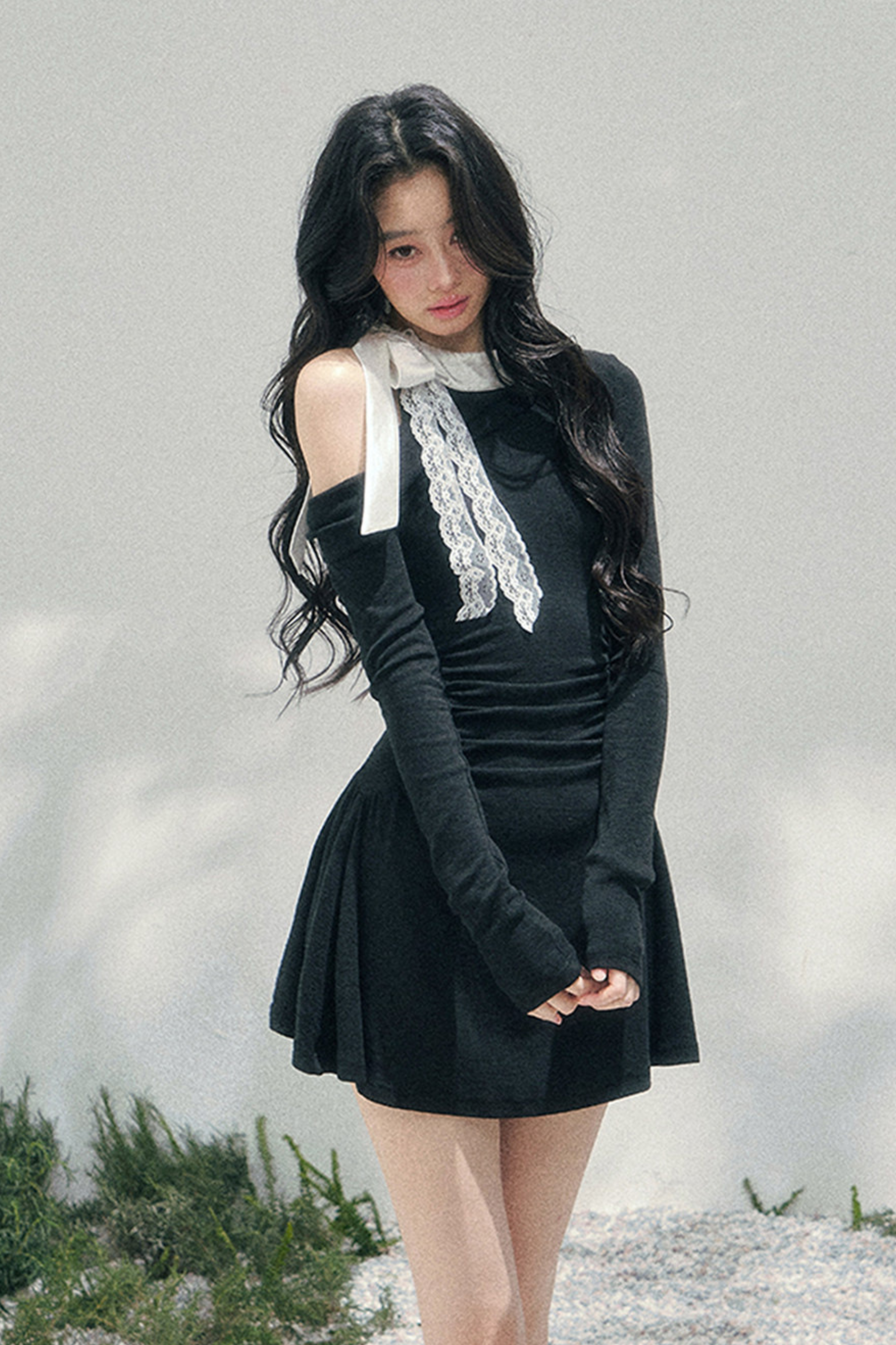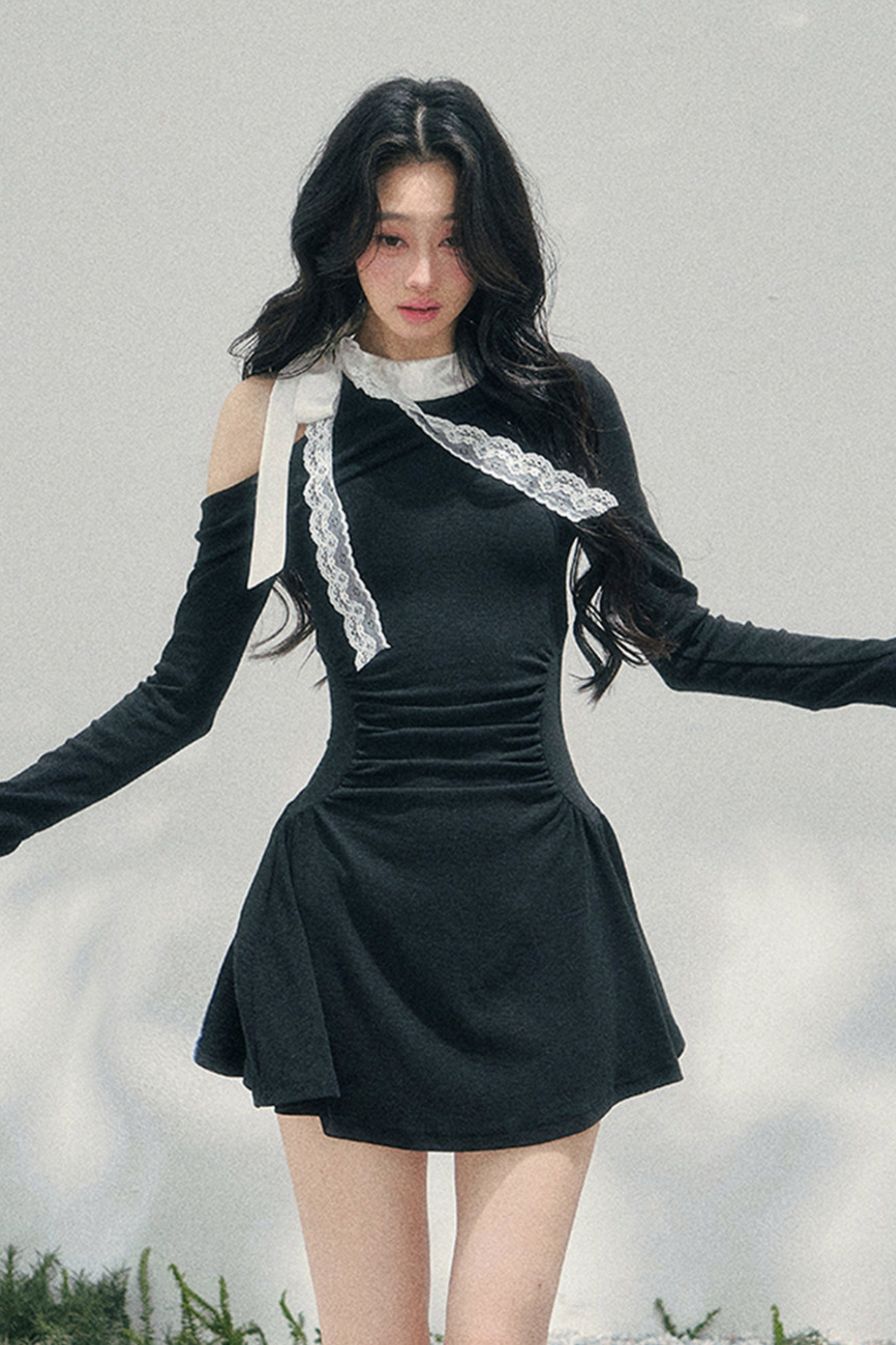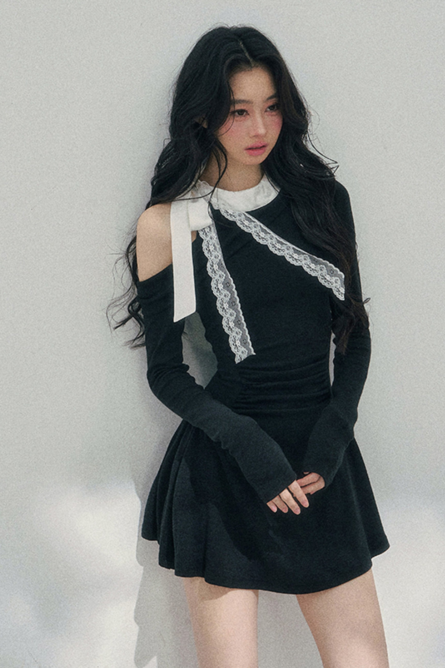 フレンチレースオフショルダードレス