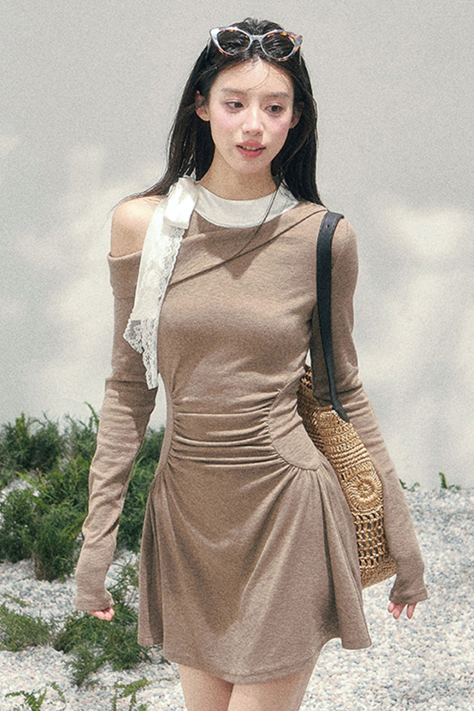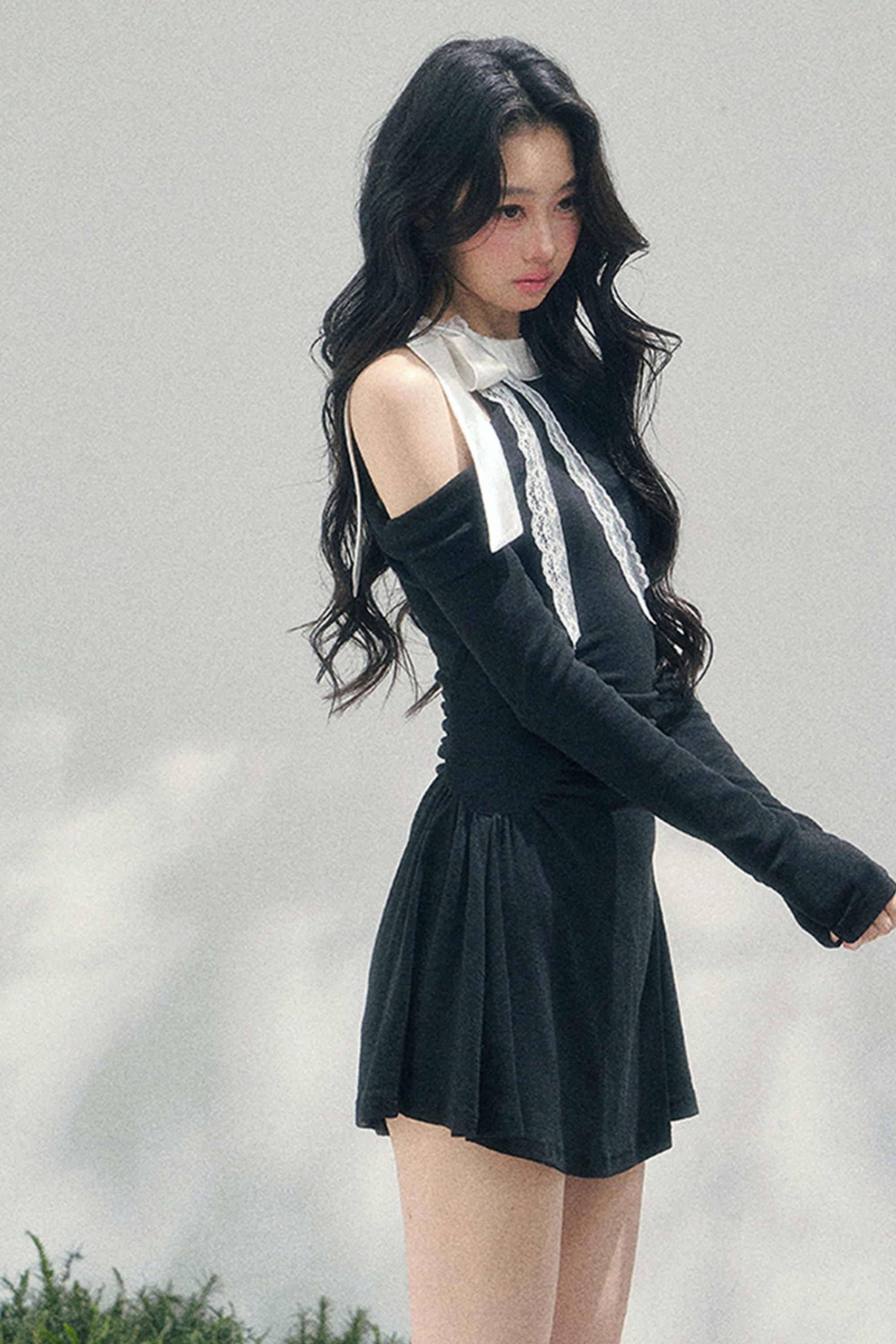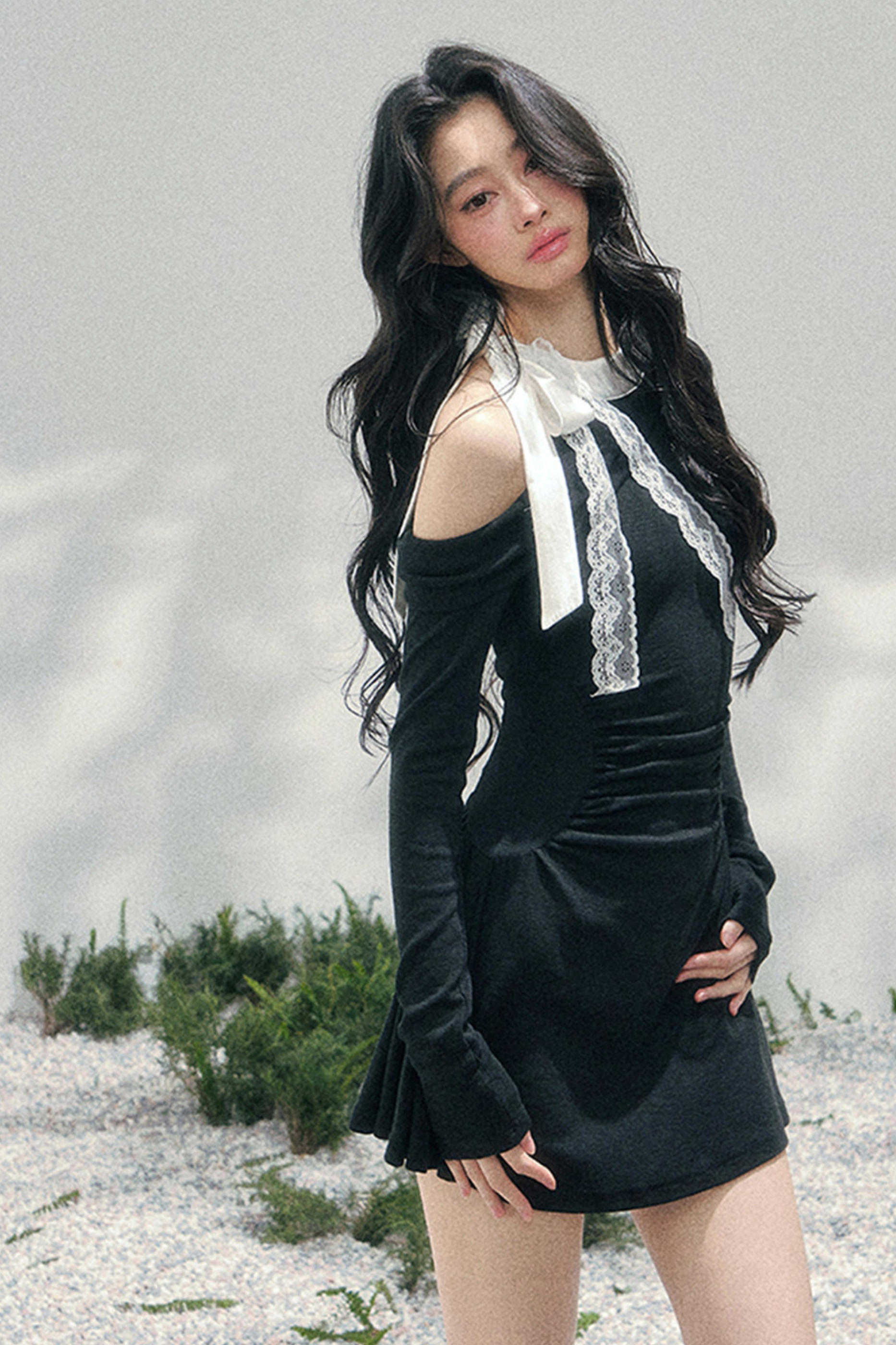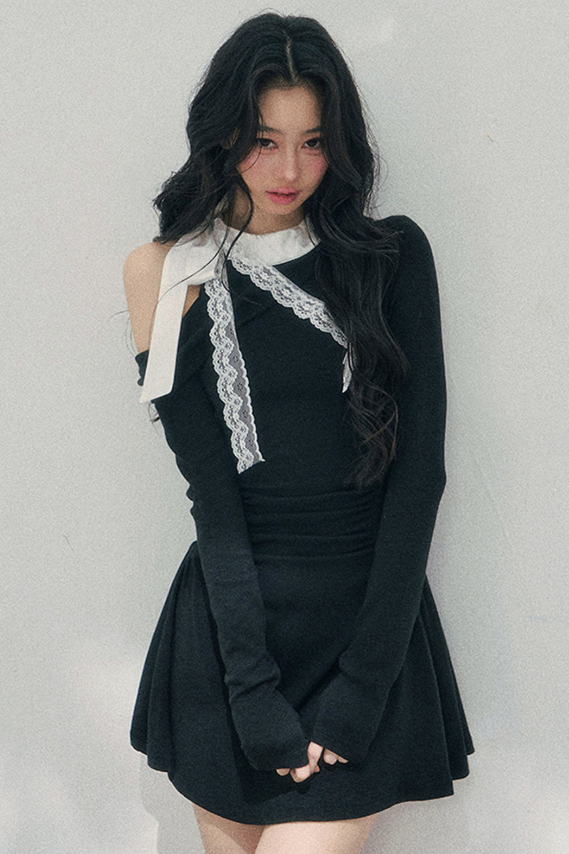 フレンチレースオフショルダードレス